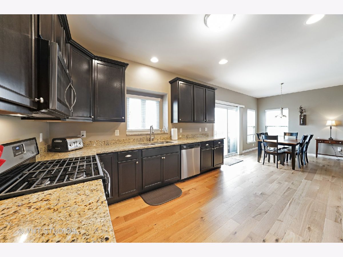 Charming new construction home located in Elburn Station. Convenient walking distance to Metra. This open concept home offers living room and formal dining area. Large eat in kitchen with stainless steel appliances, granite countertops, upgraded cabinetry with Aristokraft brushed nickel cabinet hardware. Gorgeous wide plank wood flooring throughout first floor. Enjoy the beautiful views of the pond and large fenced yard from your patio. Upstairs two spacious bedrooms and large master bedroom suite featuring trey ceiling. Master bath with oversized tub and separate shower plus double vanity sink. Convenient upstairs laundry room with front load washer and dryer. The fully finished basement, offers additional living space, fourth bedroom and full bath. Substantial amount of storage, with Radon mitigation system, and includes battery backup sump pump.