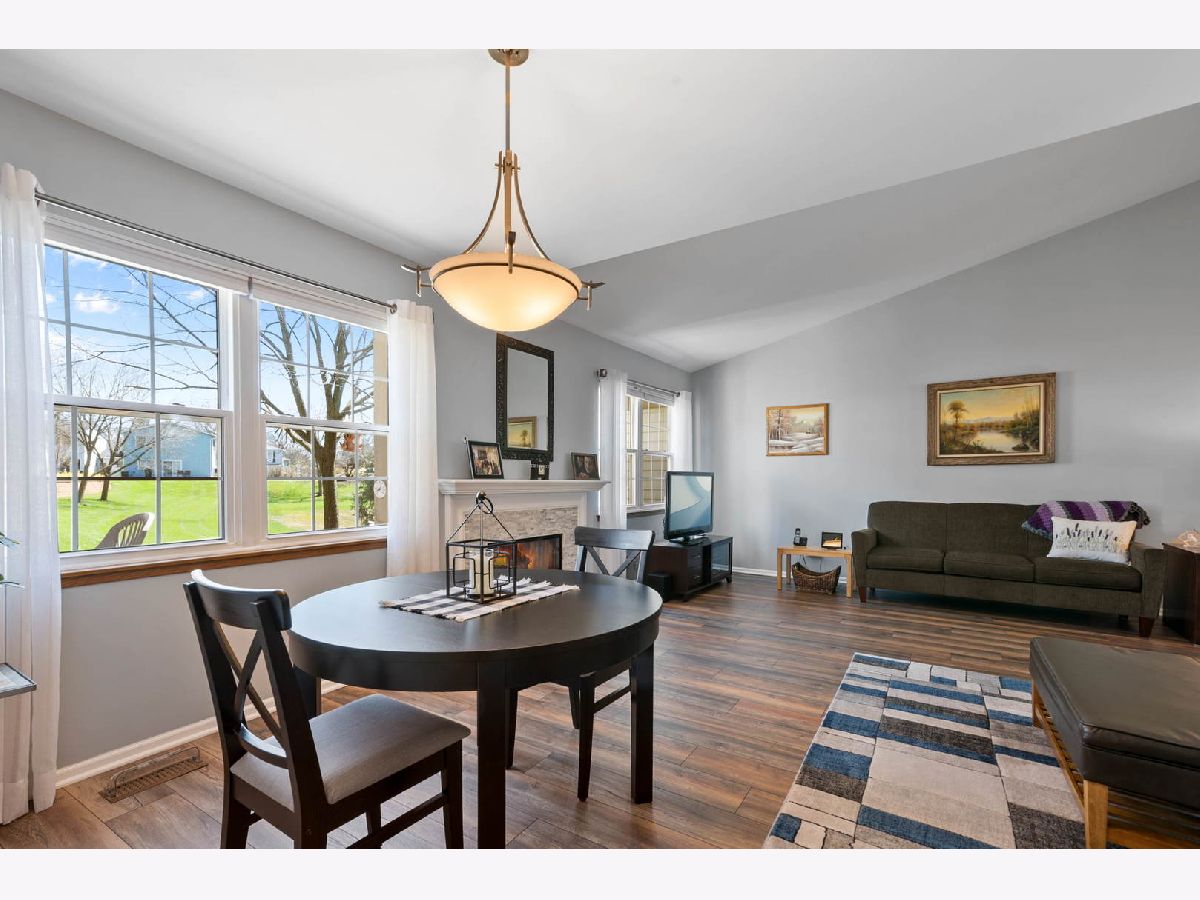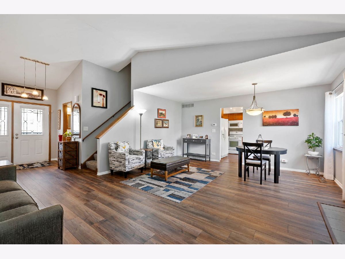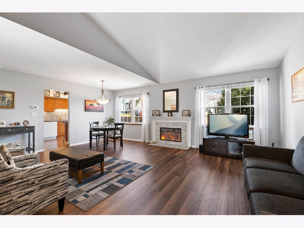 MULTIPLE OFFERS RECEIVED. Highest & Best due SATURDAY 10a.m. Fabulous, updated townhome with lovely views! Spacious living and dining areas with cathedral ceilings and newer laminate floors. Cozy gas fireplace with charming wood mantle! Sunny remodeled kitchen features Shaker-style cabinets with under cabinet lighting, Corian counters and tile backsplash! Custom built-in island too! Sliding glass doors lead to patio with lots of greenspace! Second floor features large primary bedroom with walk-in closet, linen closet and large primary bathroom. Two additional bedrooms too, all with lighted ceiling fans and updated carpeting! Home features updated windows, furnace 2011, hot water heater 2021, two and one-half baths, main level laundry room with washer and dryer, utility room with lots of space for storage plus two-car garage! You'll find current lighting, nice window treatments and blinds, plus painted in trendy colors throughout ... all you have to do is move in! Convenient Downers Grove location, close to shopping, expressways, restaurants and town. Check it out before it's gone!