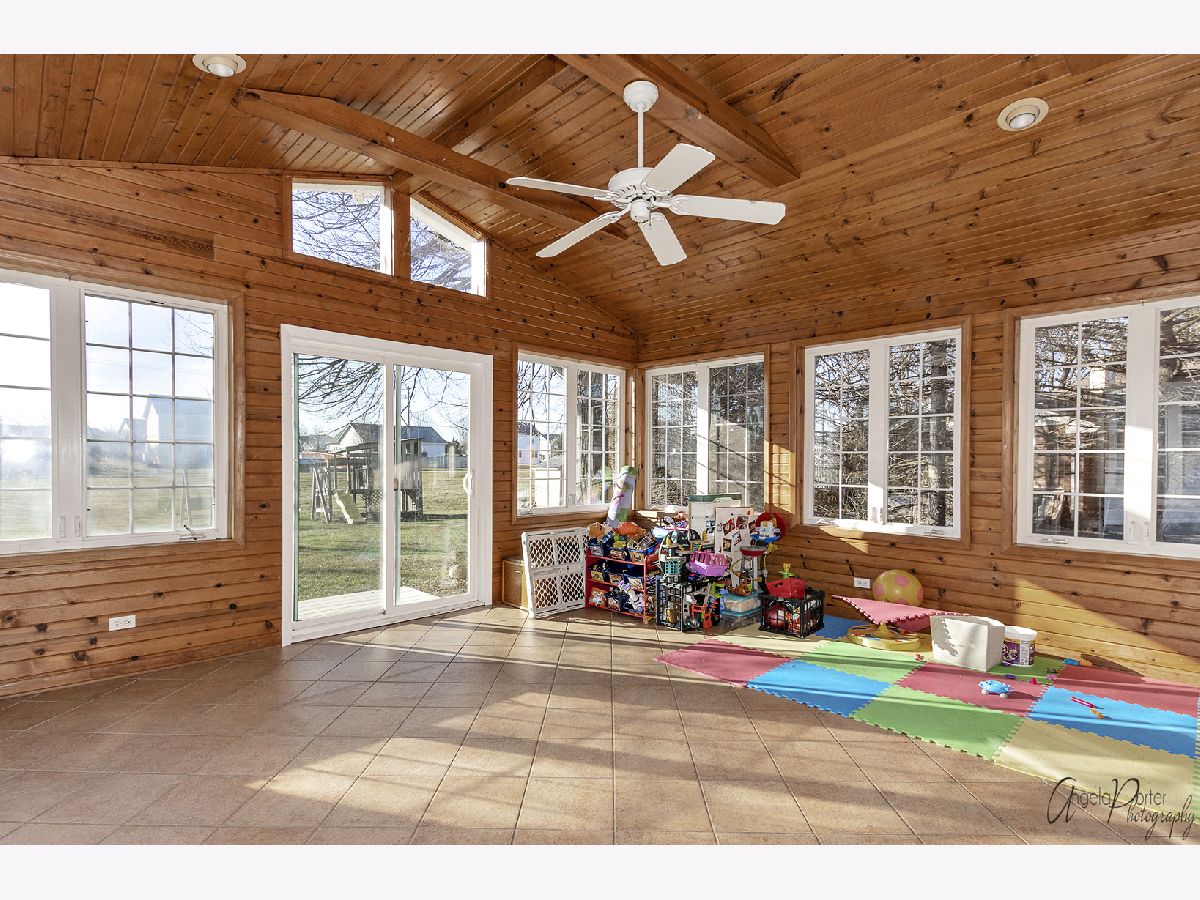 Spacious 4 bed, 2 1/2 Bath, Full Basement home on a 1/3 of an acre in Heritage Estates. Sunny 3-Season Room with Tons of Windows, Vaulted Ceiling and Ceramic Tile Floor. Eat-in Kitchen with Hardwood Flooring, Center Island and new Backsplash. Family Room with Cozy Fireplace and Built-ins. Formal Dining & Living Room w/French Doors. Partially Finished Basement w/Bonus Room,Office Space, Workshop and Laundry. Large Master Suite W/Private Bath & Walk-In Closet. Ceiling Fans in all the Bedrooms. New Furnace, Humidifier, and A/C in 2019. New Water Heater in 2016. Brick Paver Walkway. Backyard has large Deck w/built in Bench looks out to large Open Space near Bike/Walking Path. Outdoor Playset for the youngsters. Prairie Ridge High School. Close to Veterans Acres Park. Property Sold As-Is