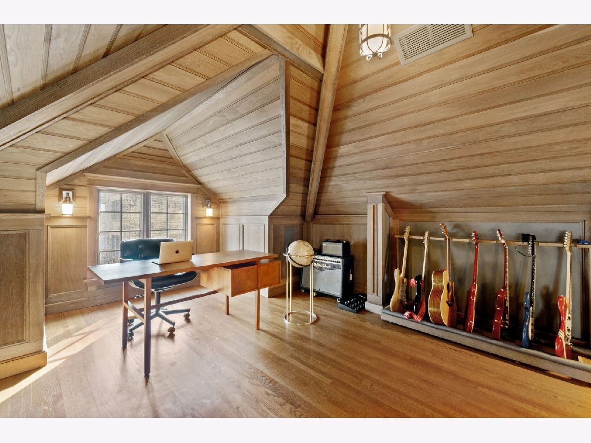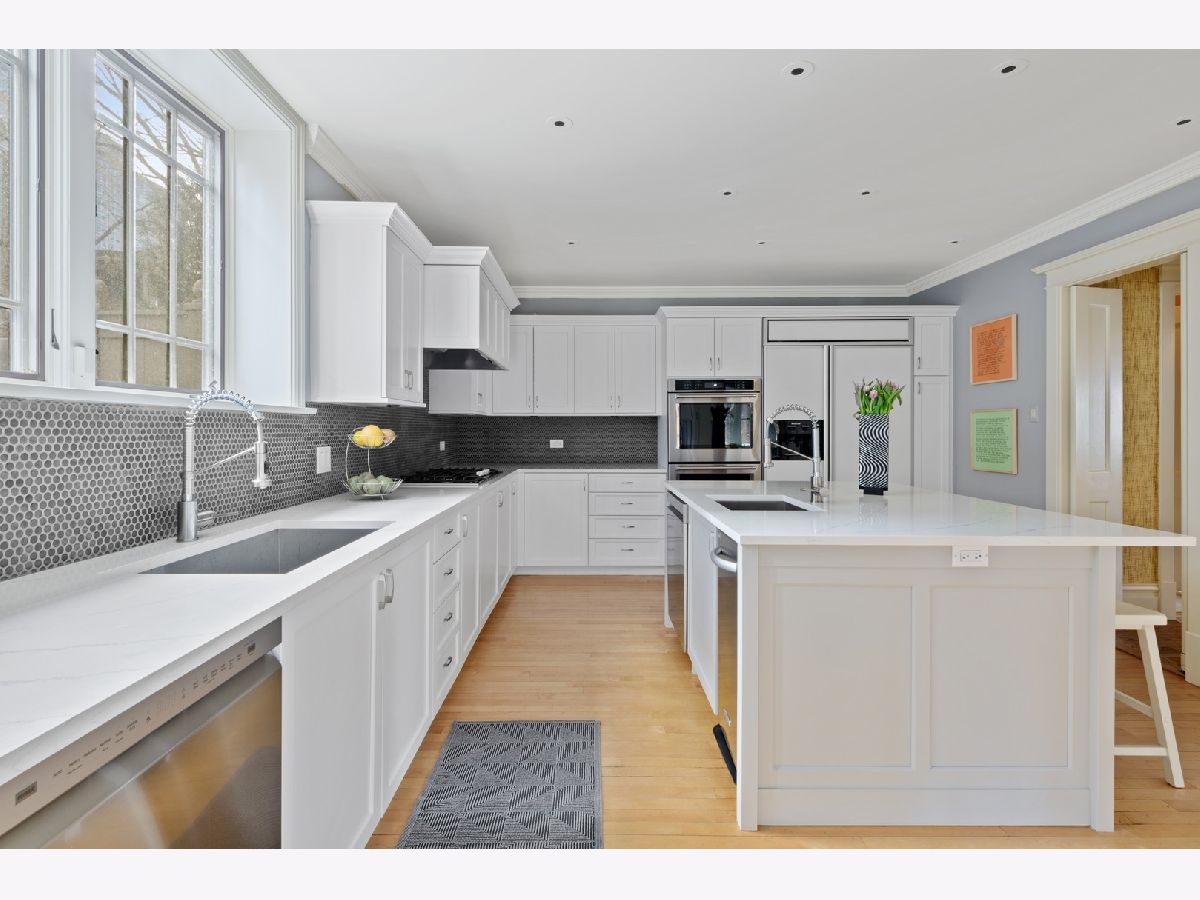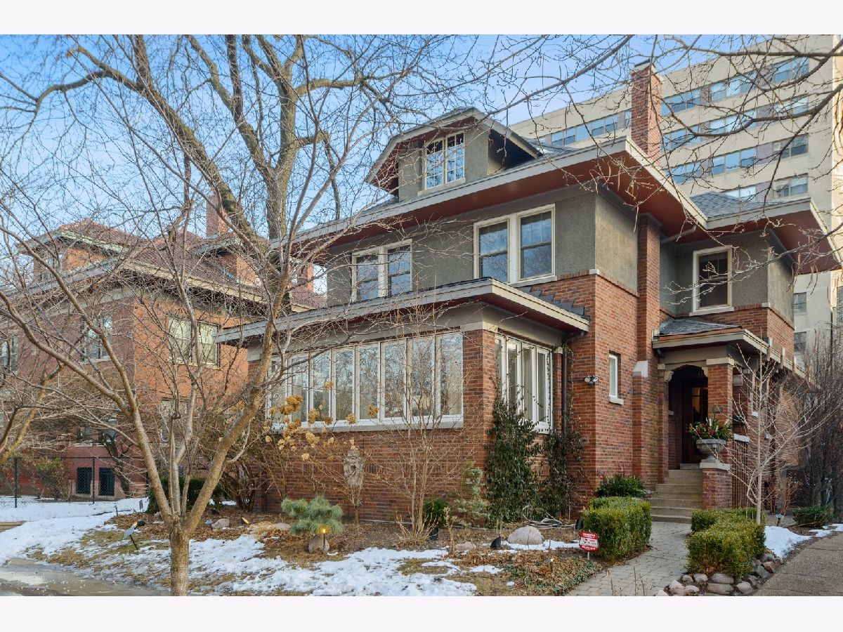 Set on a lushly landscaped lot and filled with ornamental stained-glass windows, coffered ceilings and other handcrafted finishes, this lovingly renovated three-story 4 bed, 3 1/2 bath turn-key house maintains the integrity of Chicago's original "Prairie School" style, while offering all the conveniences of a 21st century home. Amenities include a newly renovated kitchen w/ quartz countertops; breakfast bar, wine fridge and high-end appliances (2022); a spacious mudroom w/ access to backyard and deck; a dining room wet bar; custom sunroom w/ heated floors and a spacious living room w/ fireplace. The elegant 2nd floor primary suite w/ wood burning fireplace, custom walk-in closet and sumptuous bath w/ double vanity & marble countertops opens onto a dramatic central hall with additional bedrooms; a 2nd floor washer/dryer (cleverly hidden behind a secret door) and another full bathroom. The stunning third floor office with great room provides the perfect hideaway for quiet concentration - and family fun. With a private gated garage and backyard, new deck (2021), new roof (2021); professional gym, dog shower, a 160-bottle wine cellar and smart home technology to control lights, security and sound from an app on your cell, this uniquely private residence seamlessly melds old world tradition with high tech amenities, creating the ultimate urban-suburban retreat. Located in the leafy, quiet Hutchinson Street Historic District of Buena Park, with easy access to the lakefront and Chicago's downtown, 651 Hutchinson offers timeless, sophisticated, luxury; and the perfect urban equivalent of suburban living - without the commute!