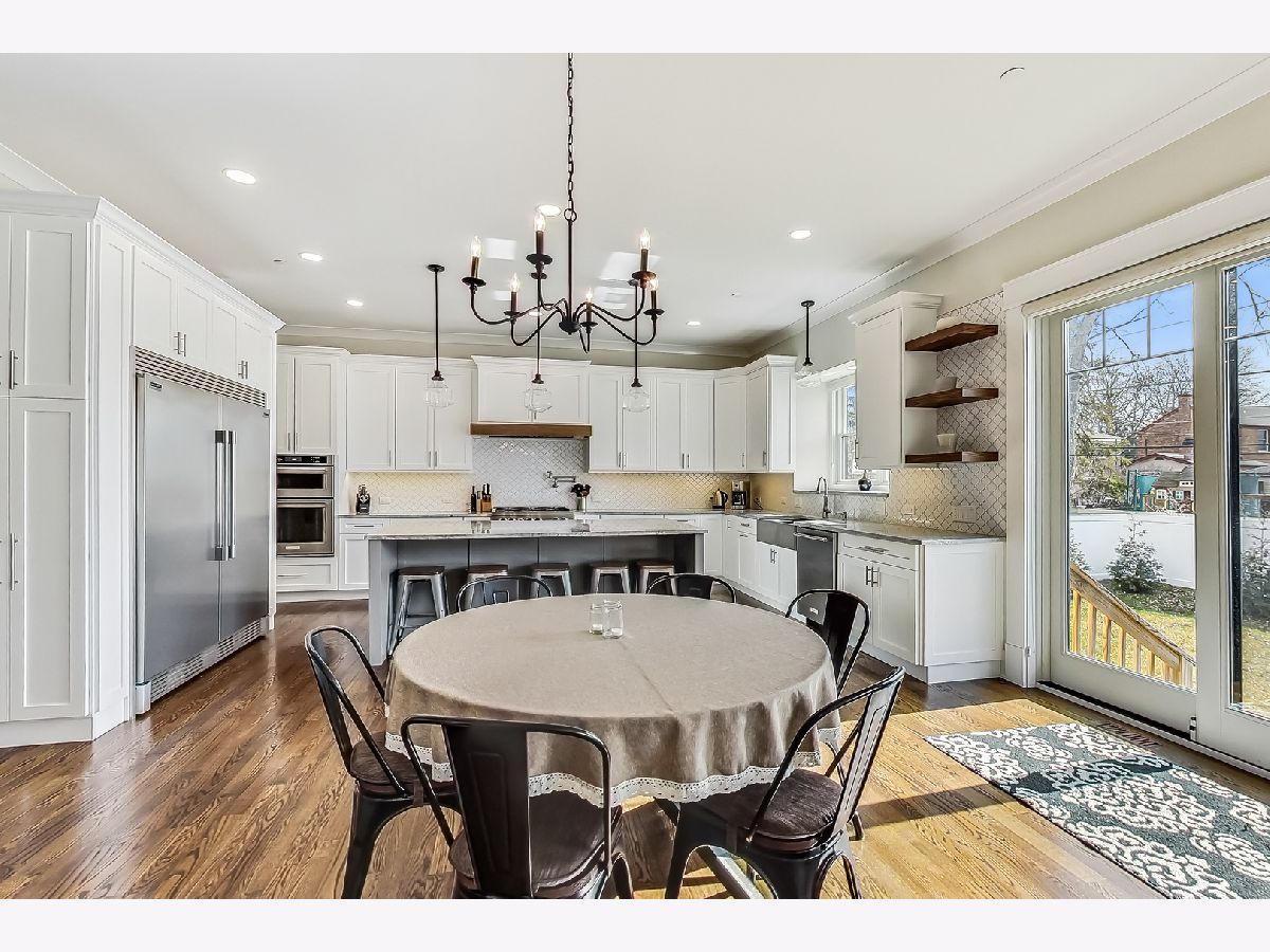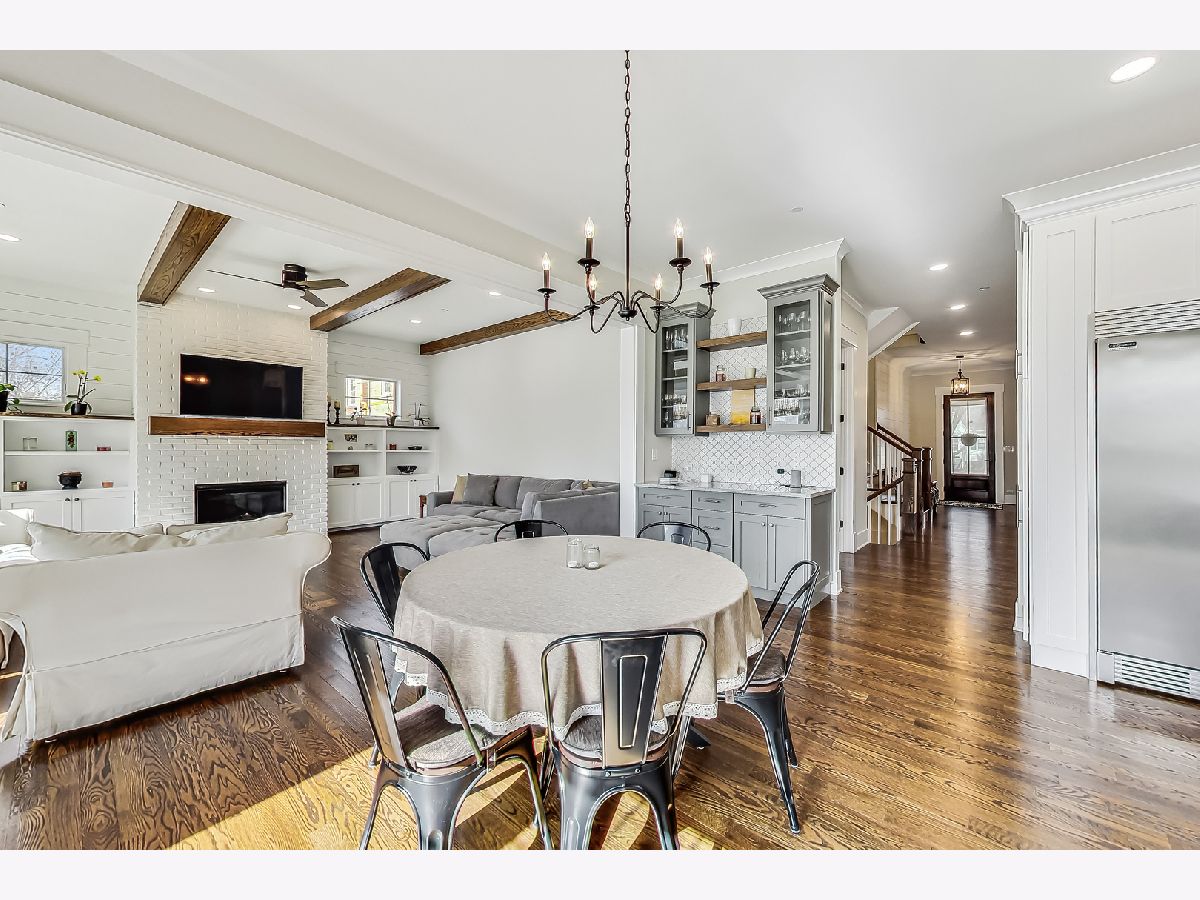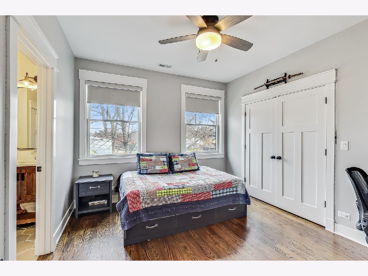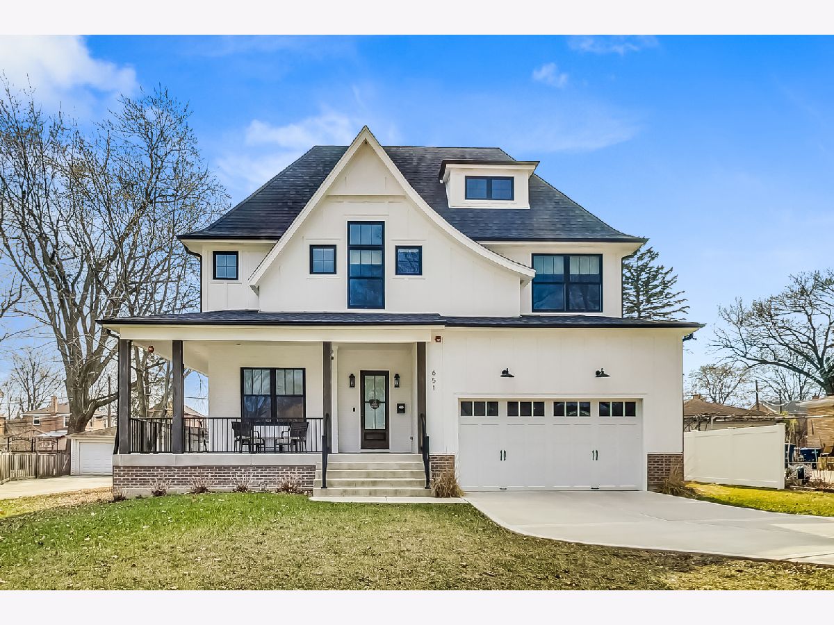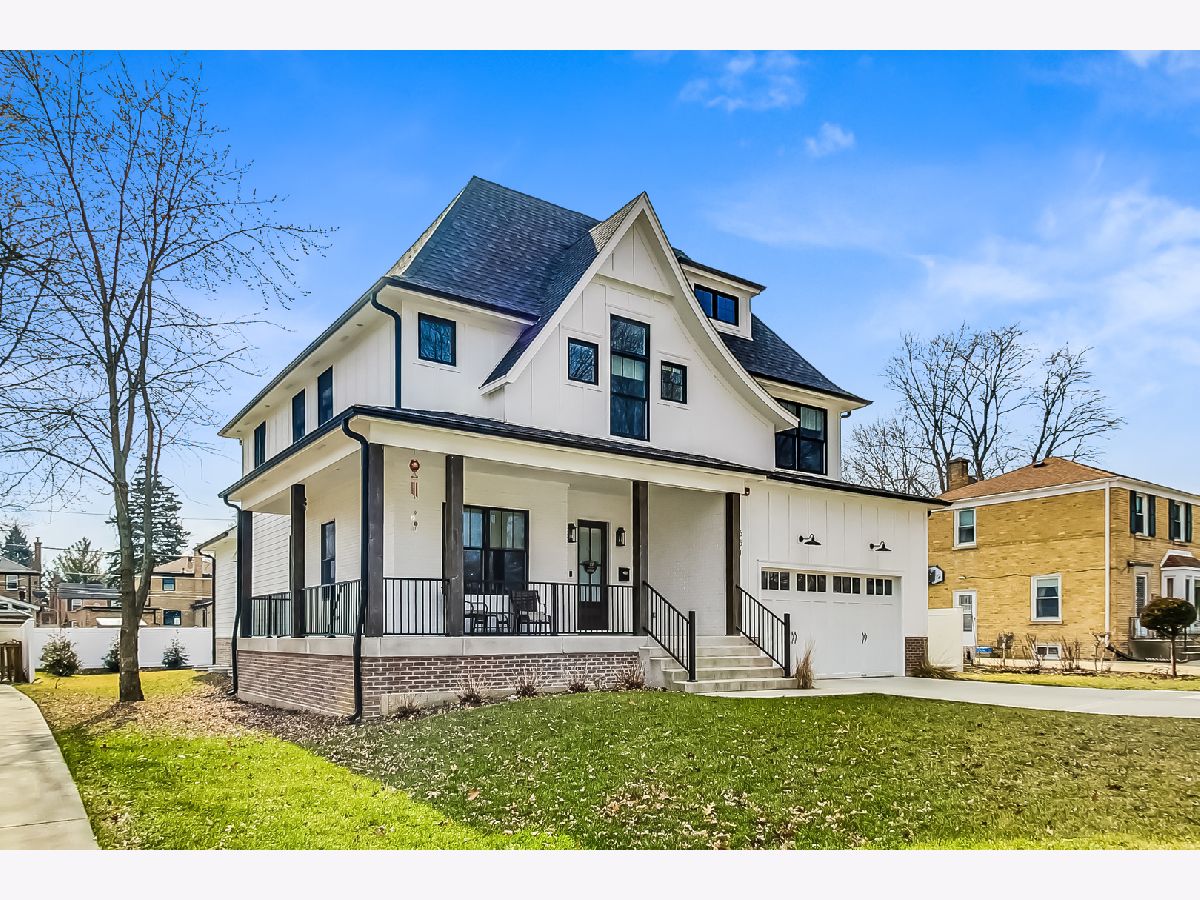 Welcome home to this stunning modern farmhouse nestled in a picturesque setting, offering the perfect blend of contemporary luxury and timeless charm. Boasting an open floor plan, this residence is thoughtfully designed to maximize space and functionality. Step inside the welcoming foyer where you are greeted by the warmth of hardwood floors flowing throughout and natural light that floods the interior creating an airy ambiance. Well laid-out main level of the home provides a fully enclosed office/den, perfect for study or work-from-home, customized with a built-in desk, shelving and storage; with a full bath conveniently located nearby, this space doubles as a guest bedroom. The inviting mudroom is well equipped with cubbies, hooks and benches for outdoor gear, bookbags and shoes; plus a full sink, cabinet storage, additional w/d hook-up and enclosed closet situated off of your attached, 2.5 car garage. Warmth exudes from the combined living, dining and kitchen area of the home. Expansive living and dining area are abound with windows and natural light; the living room boasts a gorgeous wood-beam ceiling design, cozy gas fireplace with custom surround built-ins and custom window treatments, perfect for relaxing at home or entertaining. Gorgeous kitchen is a chef's delight boasting a plethora of counter space, including a spacious island, ample cabinetry, custom wood shelving that blends design and style, quartz countertops, high-end Frigidaire professional-quality fridge, Kitchen-Aid Oven and microwave, 6-burner Blue Star range and butler pantry equipped with a beverage fridge and separate walk-in pantry; as well as a pot-filler, range hood and contemporary pendant lighting to create a gourmet experience. Upstairs you'll find four generously sized bedrooms, each offering comfort and privacy. Three full baths ensure convenience on busy mornings, while the laundry room on this level adds to the homes practicality, fully equipped with cabinetry and countertop makes a great folding area. The private and expansive primary suite provides a sanctuary with the luxurious spa-like bath boasting a separate soaking tub, large shower, dual-vanity with built-in storage and enclosed water closet; plus a massive walk-in closet. Secondary bedrooms each have access to full bath and offer ample closet space. Full, unfinished basement presents endless possibilities offering 12+ ft ceilings, whether you envision a home gym, recreation area or additional living, this flexible space can be customized to suite your lifestyle. Plus, it already has roughed in plumbing for a bathroom and wet bar. This home has many high-tech features; including zoned heating/cooling, whole-house sprinkler system, wired fire alarms, MyQ garage remote, Ecobee thermostat, LED can lights, dimmers throughout and buried wires direct to the home for cable and electric. Enjoy the outdoors with a fully-fenced, huge yard ready to be transformed to your outdoor oasis ideas! Fantastic school district and location, walking distance within 15 minutes to downtown Des Plaines.
