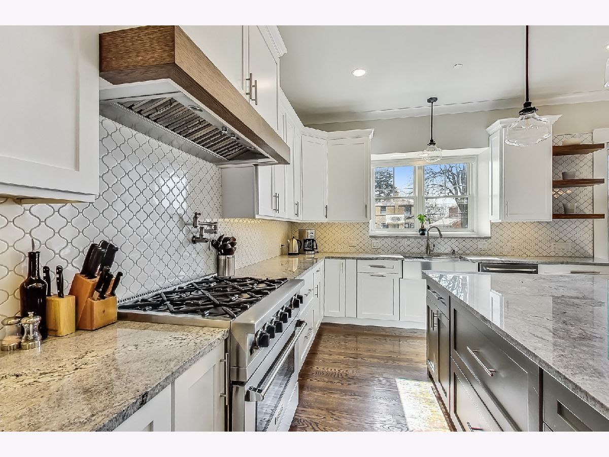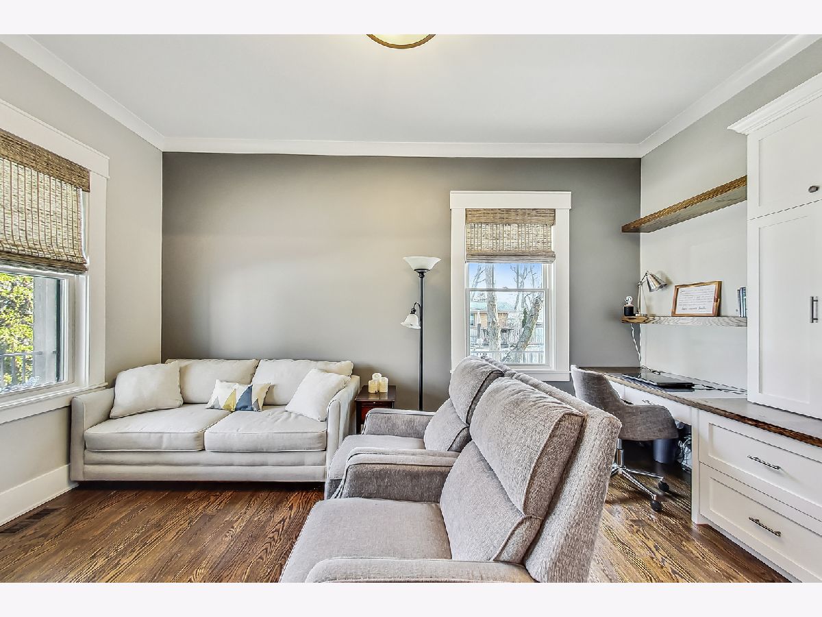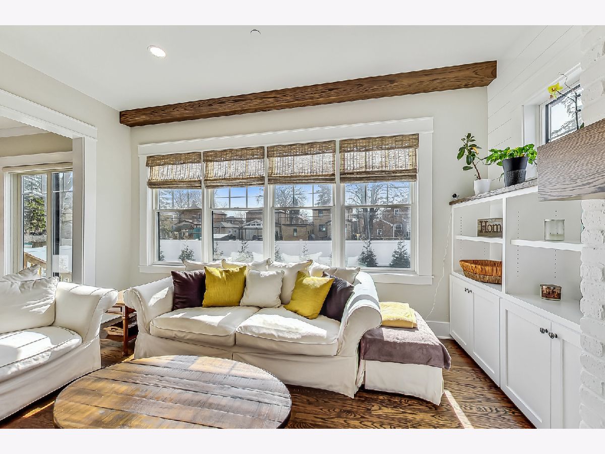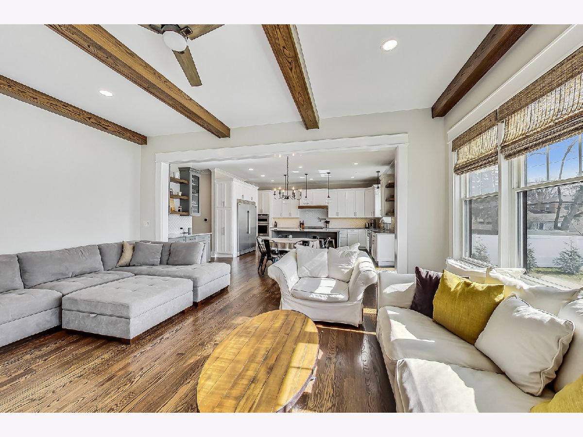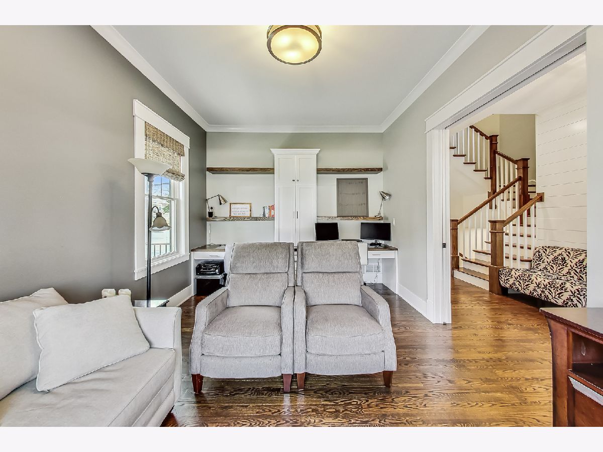 Welcome home to this stunning modern farmhouse nestled in a picturesque setting, offering the perfect blend of contemporary luxury and timeless charm. Boasting an open floor plan, this residence is thoughtfully designed to maximize space and functionality. Step inside the welcoming foyer where you are greeted by the warmth of hardwood floors flowing throughout and natural light that floods the interior creating an airy ambiance. Well laid-out main level of the home provides a fully enclosed office/den, perfect for study or work-from-home, customized with a built-in desk, shelving and storage; with a full bath conveniently located nearby, this space doubles as a guest bedroom. The inviting mudroom is well equipped with cubbies, hooks and benches for outdoor gear, bookbags and shoes; plus a full sink, cabinet storage, additional w/d hook-up and enclosed closet situated off of your attached, 2.5 car garage. Warmth exudes from the combined living, dining and kitchen area of the home. Expansive living and dining area are abound with windows and natural light; the living room boasts a gorgeous wood-beam ceiling design, cozy gas fireplace with custom surround built-ins and custom window treatments, perfect for relaxing at home or entertaining. Gorgeous kitchen is a chef's delight boasting a plethora of counter space, including a spacious island, ample cabinetry, custom wood shelving that blends design and style, quartz countertops, high-end Frigidaire professional-quality fridge, Kitchen-Aid Oven and microwave, 6-burner Blue Star range and butler pantry equipped with a beverage fridge and separate walk-in pantry; as well as a pot-filler, range hood and contemporary pendant lighting to create a gourmet experience. Upstairs you'll find four generously sized bedrooms, each offering comfort and privacy. Three full baths ensure convenience on busy mornings, while the laundry room on this level adds to the homes practicality, fully equipped with cabinetry and countertop makes a great folding area. The private and expansive primary suite provides a sanctuary with the luxurious spa-like bath boasting a separate soaking tub, large shower, dual-vanity with built-in storage and enclosed water closet; plus a massive walk-in closet. Secondary bedrooms each have access to full bath and offer ample closet space. Full, unfinished basement presents endless possibilities offering 12+ ft ceilings, whether you envision a home gym, recreation area or additional living, this flexible space can be customized to suite your lifestyle. Plus, it already has roughed in plumbing for a bathroom and wet bar. This home has many high-tech features; including zoned heating/cooling, whole-house sprinkler system, wired fire alarms, MyQ garage remote, Ecobee thermostat, LED can lights, dimmers throughout and buried wires direct to the home for cable and electric. Enjoy the outdoors with a fully-fenced, huge yard ready to be transformed to your outdoor oasis ideas! Fantastic school district and location, walking distance within 15 minutes to downtown Des Plaines.