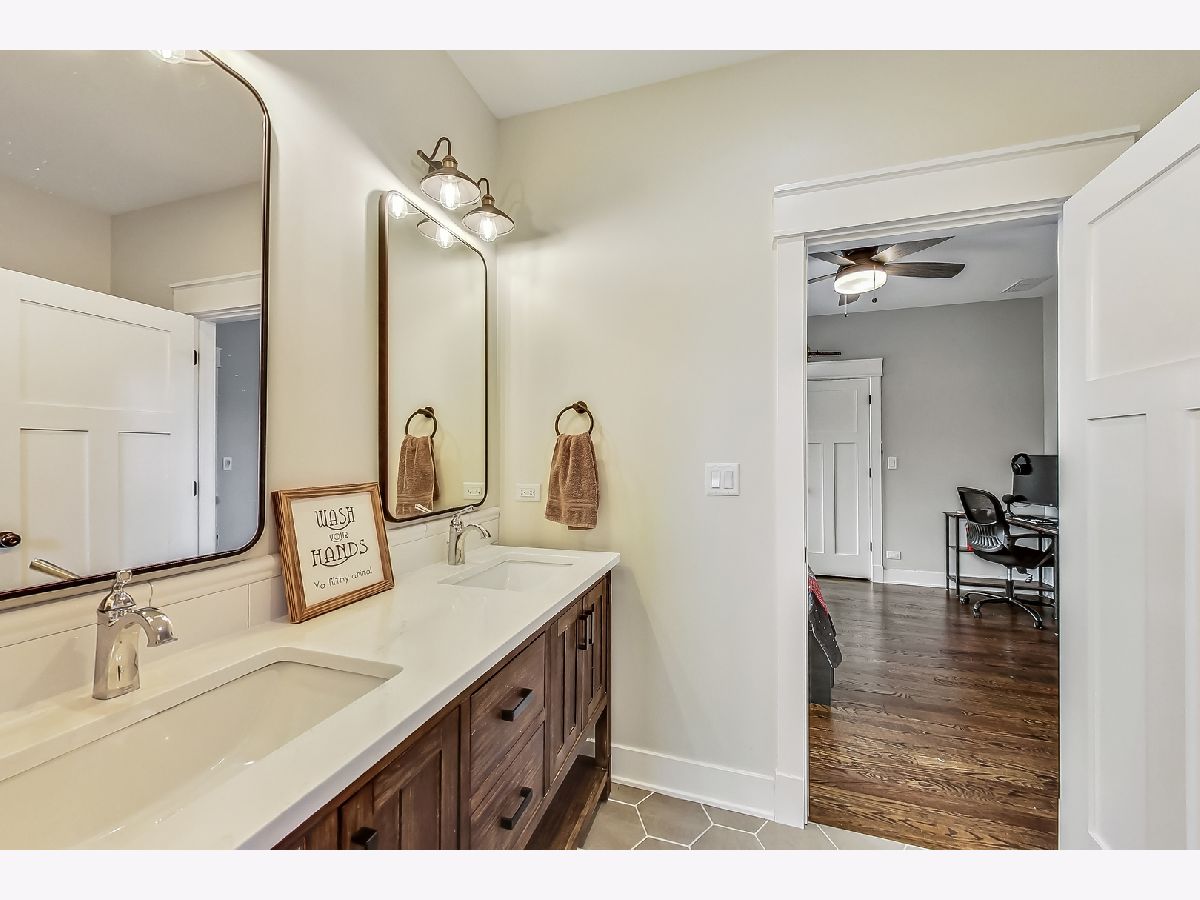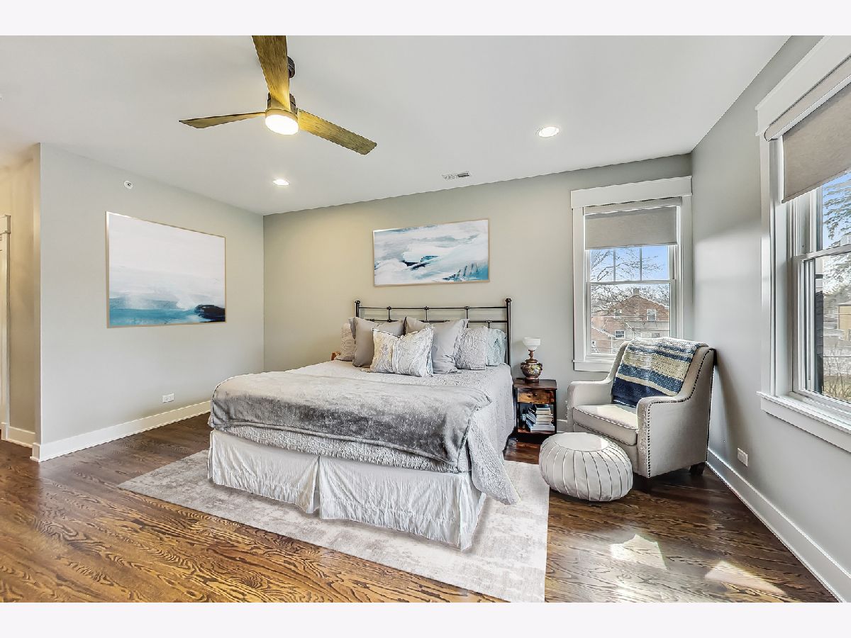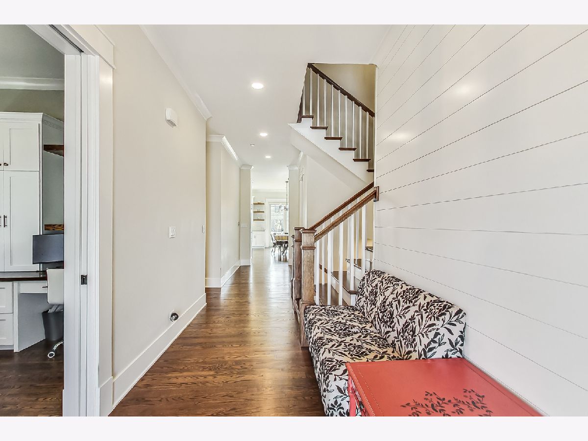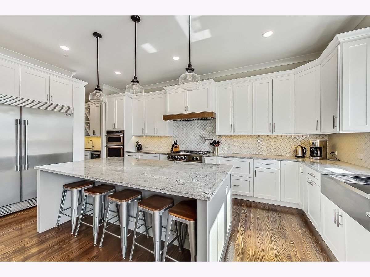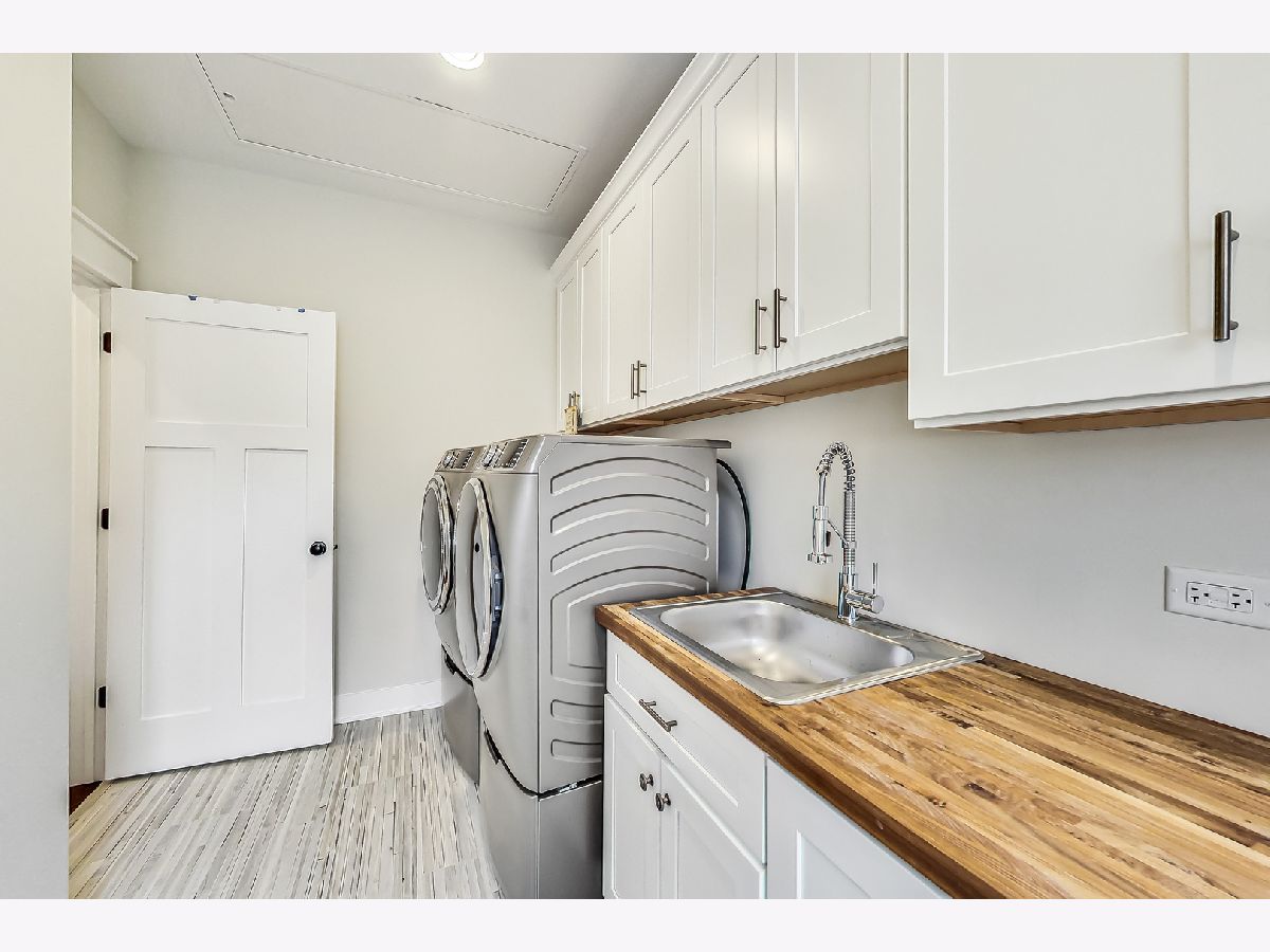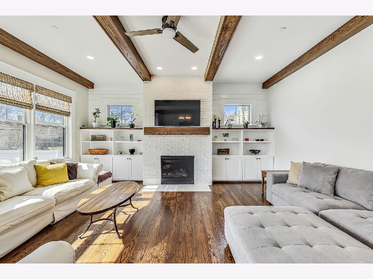 Welcome home to this stunning modern farmhouse nestled in a picturesque setting, offering the perfect blend of contemporary luxury and timeless charm. Boasting an open floor plan, this residence is thoughtfully designed to maximize space and functionality. Step inside the welcoming foyer where you are greeted by the warmth of hardwood floors flowing throughout and natural light that floods the interior creating an airy ambiance. Well laid-out main level of the home provides a fully enclosed office/den, perfect for study or work-from-home, customized with a built-in desk, shelving and storage; with a full bath conveniently located nearby, this space doubles as a guest bedroom. The inviting mudroom is well equipped with cubbies, hooks and benches for outdoor gear, bookbags and shoes; plus a full sink, cabinet storage, additional w/d hook-up and enclosed closet situated off of your attached, 2.5 car garage. Warmth exudes from the combined living, dining and kitchen area of the home. Expansive living and dining area are abound with windows and natural light; the living room boasts a gorgeous wood-beam ceiling design, cozy gas fireplace with custom surround built-ins and custom window treatments, perfect for relaxing at home or entertaining. Gorgeous kitchen is a chef's delight boasting a plethora of counter space, including a spacious island, ample cabinetry, custom wood shelving that blends design and style, quartz countertops, high-end Frigidaire professional-quality fridge, Kitchen-Aid Oven and microwave, 6-burner Blue Star range and butler pantry equipped with a beverage fridge and separate walk-in pantry; as well as a pot-filler, range hood and contemporary pendant lighting to create a gourmet experience. Upstairs you'll find four generously sized bedrooms, each offering comfort and privacy. Three full baths ensure convenience on busy mornings, while the laundry room on this level adds to the homes practicality, fully equipped with cabinetry and countertop makes a great folding area. The private and expansive primary suite provides a sanctuary with the luxurious spa-like bath boasting a separate soaking tub, large shower, dual-vanity with built-in storage and enclosed water closet; plus a massive walk-in closet. Secondary bedrooms each have access to full bath and offer ample closet space. Full, unfinished basement presents endless possibilities offering 12+ ft ceilings, whether you envision a home gym, recreation area or additional living, this flexible space can be customized to suite your lifestyle. Plus, it already has roughed in plumbing for a bathroom and wet bar. This home has many high-tech features; including zoned heating/cooling, whole-house sprinkler system, wired fire alarms, MyQ garage remote, Ecobee thermostat, LED can lights, dimmers throughout and buried wires direct to the home for cable and electric. Enjoy the outdoors with a fully-fenced, huge yard ready to be transformed to your outdoor oasis ideas! Fantastic school district and location, walking distance within 15 minutes to downtown Des Plaines.