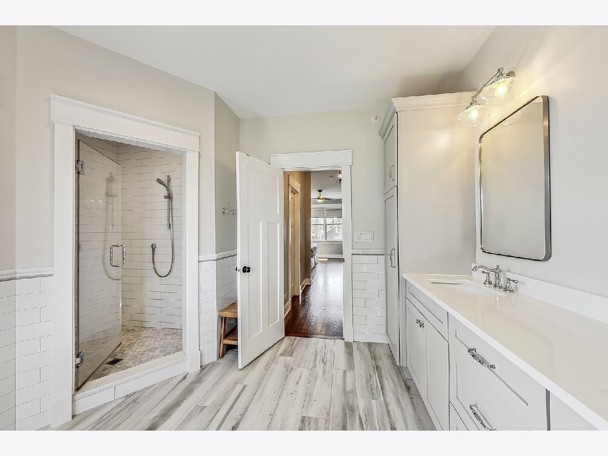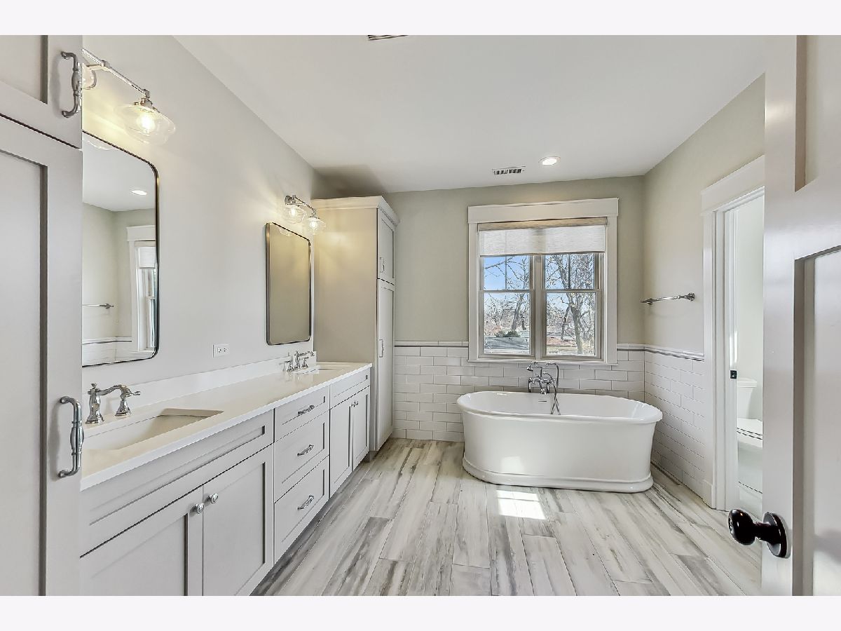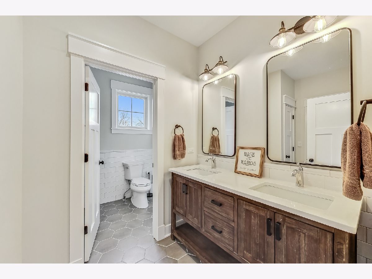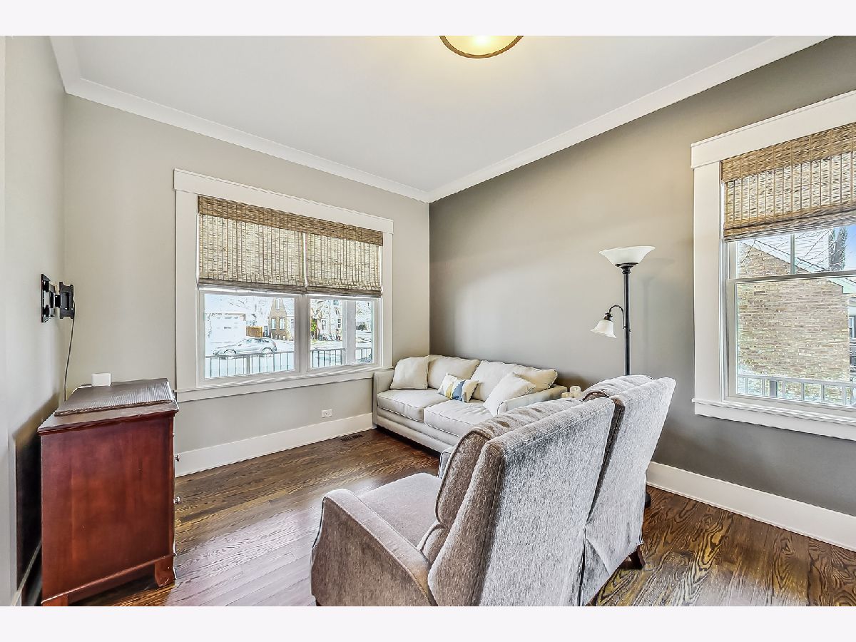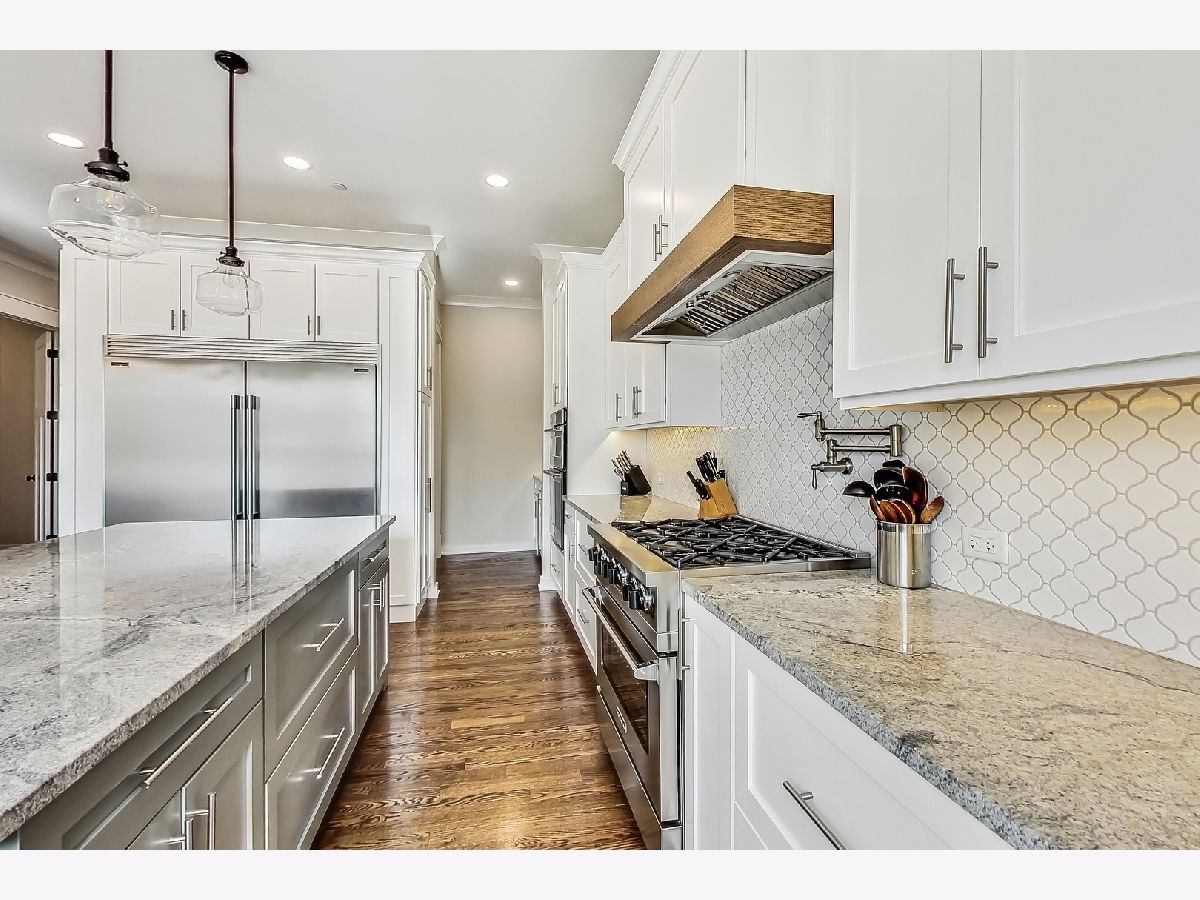 Welcome home to this stunning modern farmhouse nestled in a picturesque setting, offering the perfect blend of contemporary luxury and timeless charm. Boasting an open floor plan, this residence is thoughtfully designed to maximize space and functionality. Step inside the welcoming foyer where you are greeted by the warmth of hardwood floors flowing throughout and natural light that floods the interior creating an airy ambiance. Well laid-out main level of the home provides a fully enclosed office/den, perfect for study or work-from-home, customized with a built-in desk, shelving and storage; with a full bath conveniently located nearby, this space doubles as a guest bedroom. The inviting mudroom is well equipped with cubbies, hooks and benches for outdoor gear, bookbags and shoes; plus a full sink, cabinet storage, additional w/d hook-up and enclosed closet situated off of your attached, 2.5 car garage. Warmth exudes from the combined living, dining and kitchen area of the home. Expansive living and dining area are abound with windows and natural light; the living room boasts a gorgeous wood-beam ceiling design, cozy gas fireplace with custom surround built-ins and custom window treatments, perfect for relaxing at home or entertaining. Gorgeous kitchen is a chef's delight boasting a plethora of counter space, including a spacious island, ample cabinetry, custom wood shelving that blends design and style, quartz countertops, high-end Frigidaire professional-quality fridge, Kitchen-Aid Oven and microwave, 6-burner Blue Star range and butler pantry equipped with a beverage fridge and separate walk-in pantry; as well as a pot-filler, range hood and contemporary pendant lighting to create a gourmet experience. Upstairs you'll find four generously sized bedrooms, each offering comfort and privacy. Three full baths ensure convenience on busy mornings, while the laundry room on this level adds to the homes practicality, fully equipped with cabinetry and countertop makes a great folding area. The private and expansive primary suite provides a sanctuary with the luxurious spa-like bath boasting a separate soaking tub, large shower, dual-vanity with built-in storage and enclosed water closet; plus a massive walk-in closet. Secondary bedrooms each have access to full bath and offer ample closet space. Full, unfinished basement presents endless possibilities offering 12+ ft ceilings, whether you envision a home gym, recreation area or additional living, this flexible space can be customized to suite your lifestyle. Plus, it already has roughed in plumbing for a bathroom and wet bar. This home has many high-tech features; including zoned heating/cooling, whole-house sprinkler system, wired fire alarms, MyQ garage remote, Ecobee thermostat, LED can lights, dimmers throughout and buried wires direct to the home for cable and electric. Enjoy the outdoors with a fully-fenced, huge yard ready to be transformed to your outdoor oasis ideas! Fantastic school district and location, walking distance within 15 minutes to downtown Des Plaines.