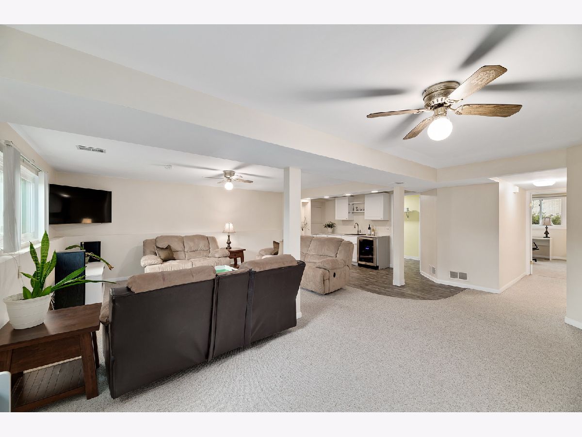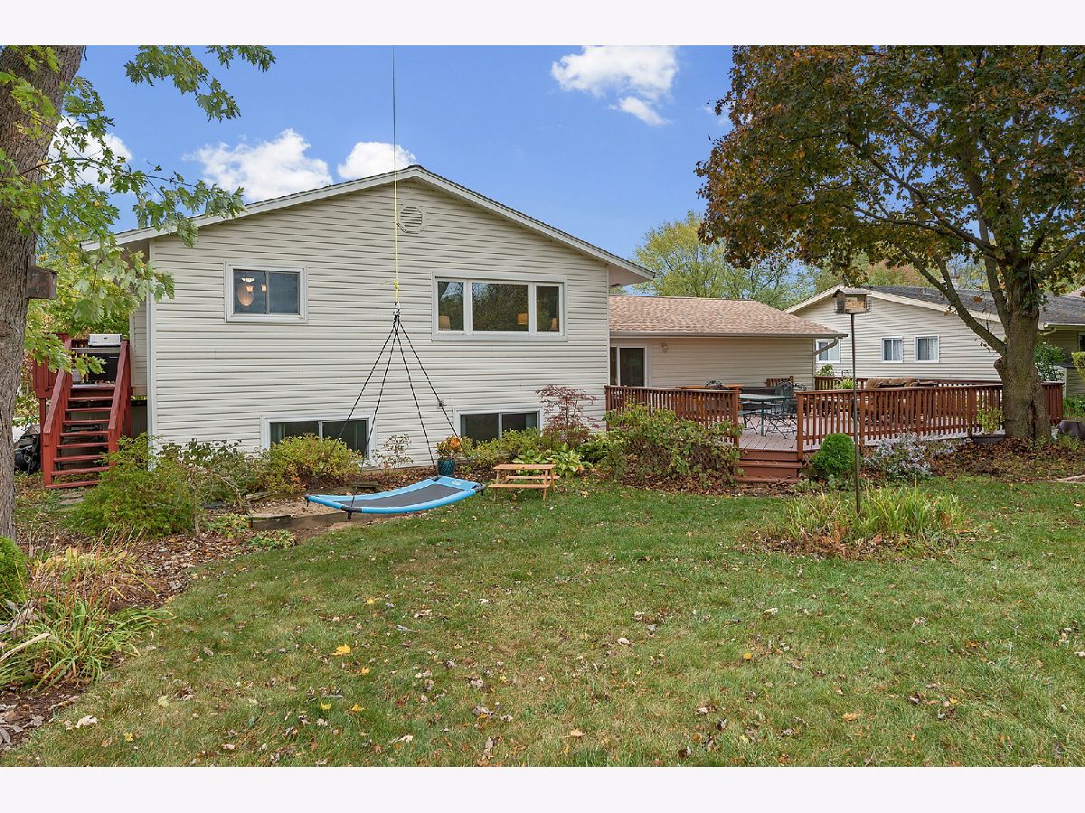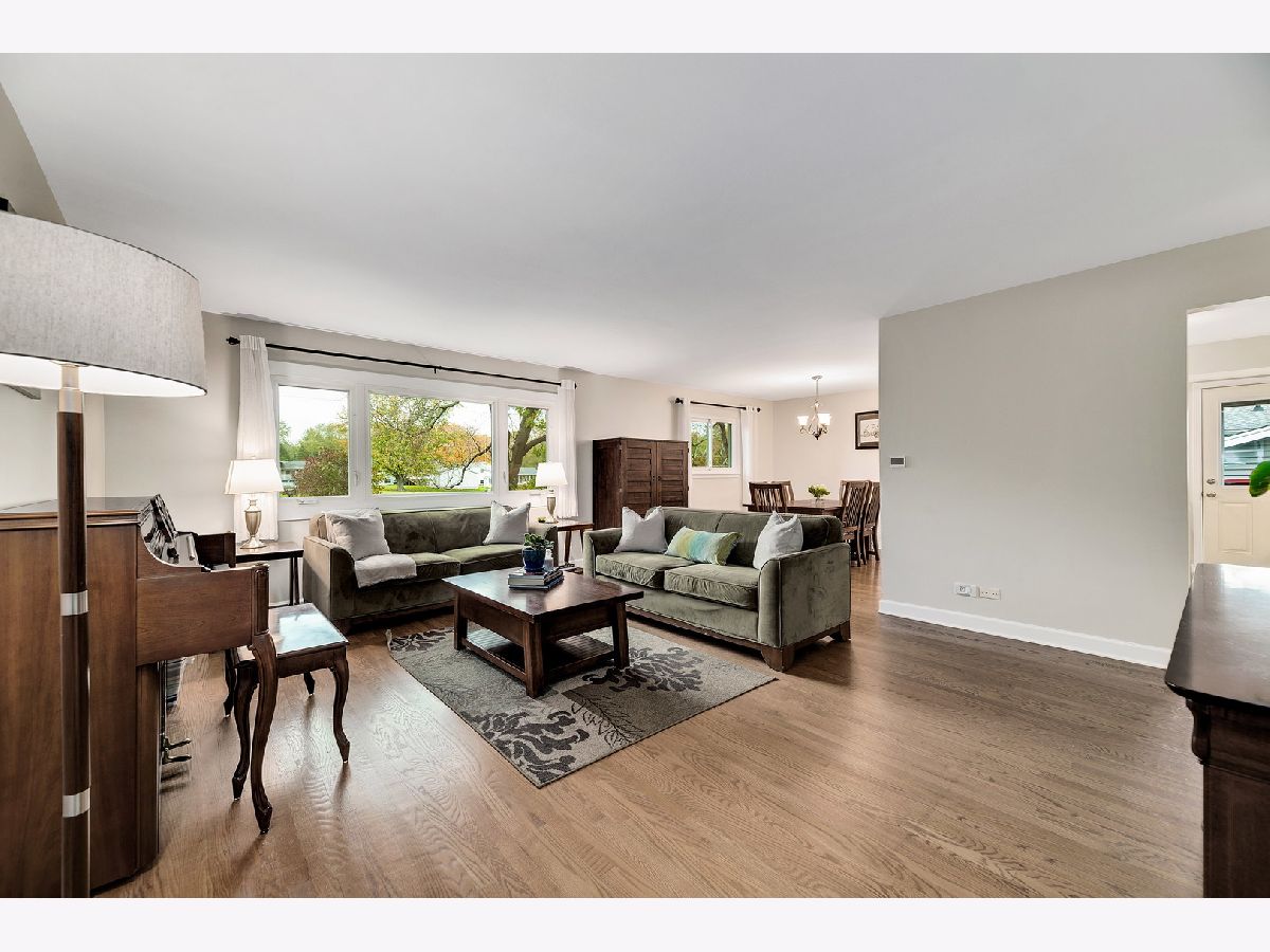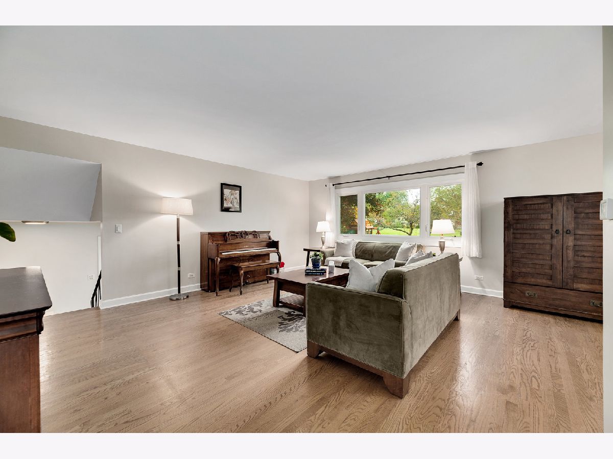 Sun-drenched mid century split level with open floor plan and tons of updates throughout. New oak hardwood floors in foyer, living and dining rooms and two of the three main level bedrooms. Dramatic double entry doors open into the welcoming foyer with open staircase to upper and lower levels, direct garage access and sliding glass doors to entertainment-sized deck. Living room features a picture windows overlooking the expansive backyard and the Southern DuPage county regional bike trail and walking path beyond. Updated kitchen features Craftsman style solid wood cabinets with soft close doors and drawers, quartz counter-tops, custom backsplash, stainless steel appliances, exterior door to grilling deck and raised granite breakfast bar / serving counter. Beautifully updated main bath with tub/shower and new vanity. Three spacious main level bedrooms including master suite with private bath and walk-in closet with custom organizer. Spacious lower level family room perfect for entertaining features new wet bar (2017) with wide plank wood look vinyl flooring, new cabinets, countertops and dual zone wine fridge. Fourth bedroom/office, 3rd full bath, updated laundry room and storage/work room complete this home's living space. The two car attached garage, paver brick front walk and covered front porch, professional landscaping and private backyard with mature trees and flowering perennials further enhance this home's appeal. New roof 2019, water heater 2017 and HVAC 2020. Walking distance to at least 5 playgrounds and 1 block from Hobson Corner Splash Pad, tennis courts, and pickleball courts. Nothing left to do but move in and enjoy!