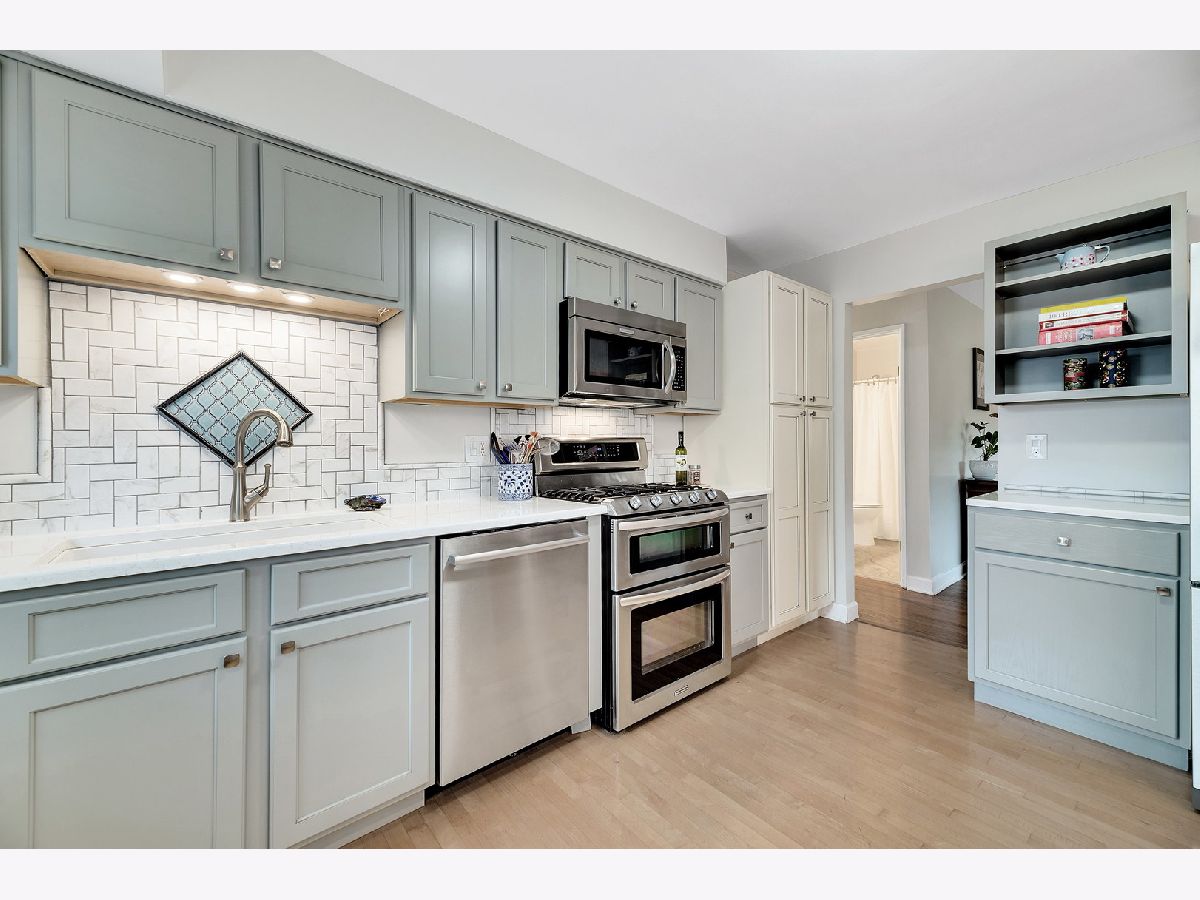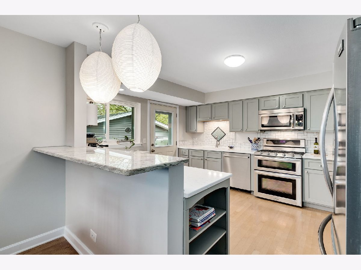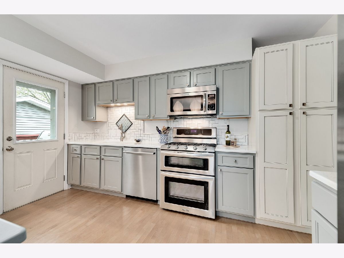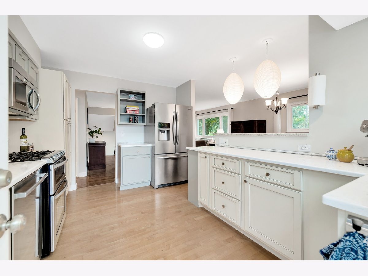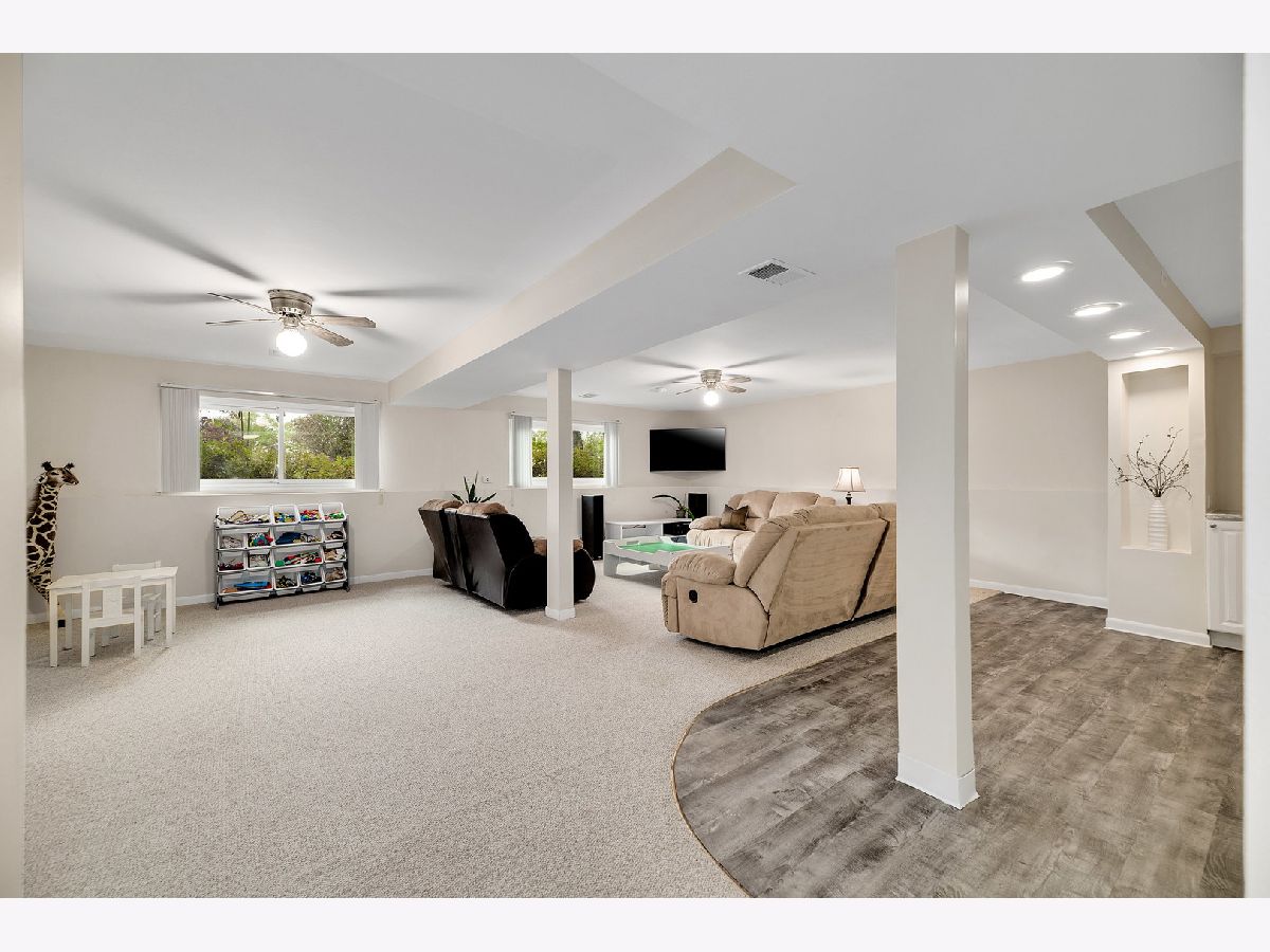 Sun-drenched mid century split level with open floor plan and tons of updates throughout. New oak hardwood floors in foyer, living and dining rooms and two of the three main level bedrooms. Dramatic double entry doors open into the welcoming foyer with open staircase to upper and lower levels, direct garage access and sliding glass doors to entertainment-sized deck. Living room features a picture windows overlooking the expansive backyard and the Southern DuPage county regional bike trail and walking path beyond. Updated kitchen features Craftsman style solid wood cabinets with soft close doors and drawers, quartz counter-tops, custom backsplash, stainless steel appliances, exterior door to grilling deck and raised granite breakfast bar / serving counter. Beautifully updated main bath with tub/shower and new vanity. Three spacious main level bedrooms including master suite with private bath and walk-in closet with custom organizer. Spacious lower level family room perfect for entertaining features new wet bar (2017) with wide plank wood look vinyl flooring, new cabinets, countertops and dual zone wine fridge. Fourth bedroom/office, 3rd full bath, updated laundry room and storage/work room complete this home's living space. The two car attached garage, paver brick front walk and covered front porch, professional landscaping and private backyard with mature trees and flowering perennials further enhance this home's appeal. New roof 2019, water heater 2017 and HVAC 2020. Walking distance to at least 5 playgrounds and 1 block from Hobson Corner Splash Pad, tennis courts, and pickleball courts. Nothing left to do but move in and enjoy!