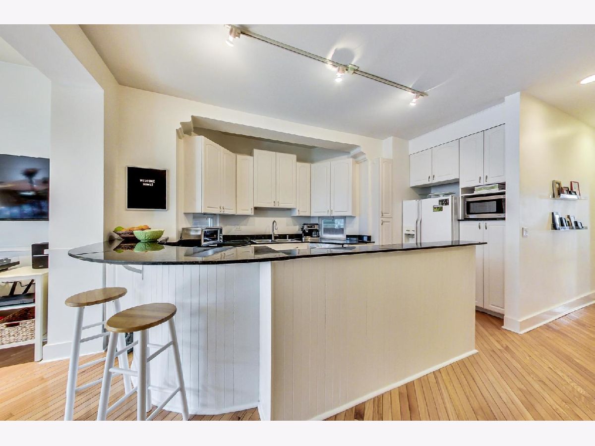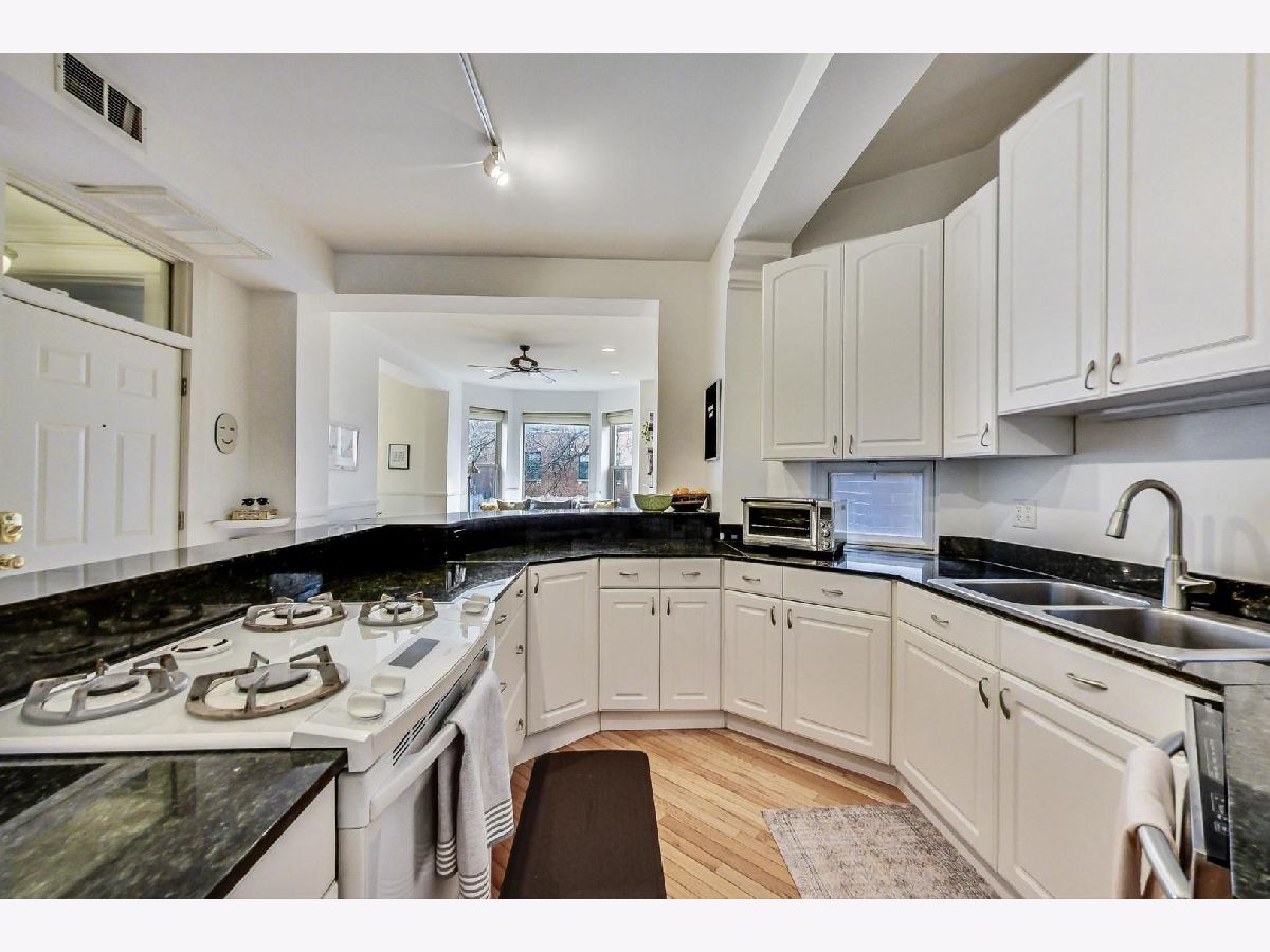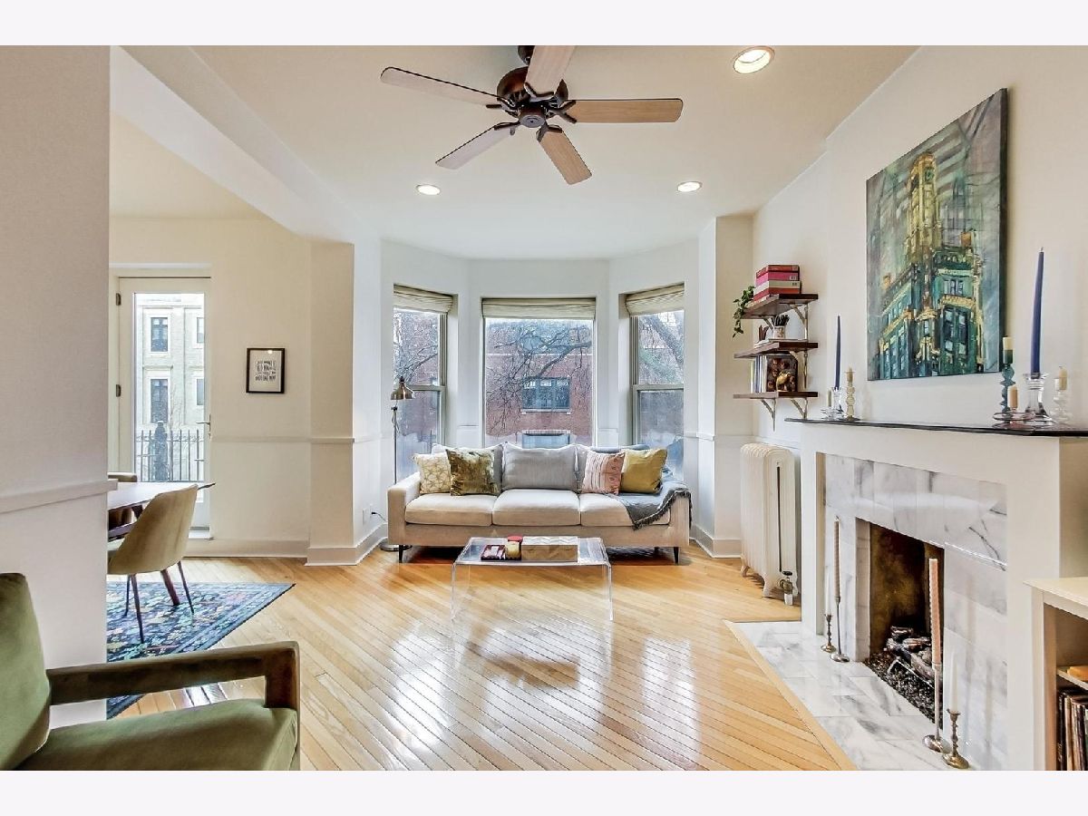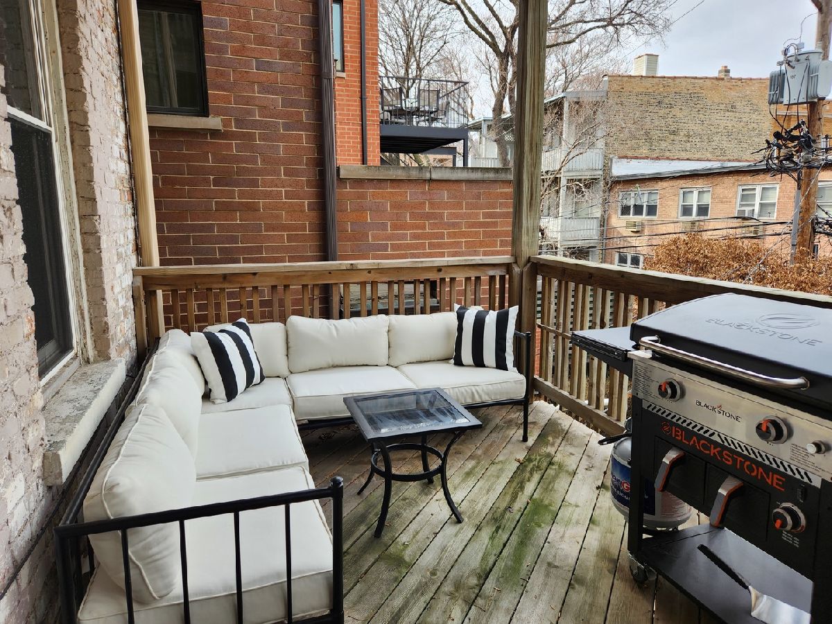 Gorgeous, light-filled 2 bed/2 bath in stately Lakeview greystone . So many wonderful features. Enormous entertaining kitchen - tons of prep space, gracious storage, granite counters and breakfast bar. South-facing living room with huge bay window, hardwood floors, 10'ceilings and fireplace. Cozy dining room with custom chandelier and direct access to front balcony. Spacious primary suite with updated bath, sitting area and great closets. Large rear deck overlooks serene backyard, in-unit washer/dryer and additional storage. Truly ideal Lakeview location - Walk to Broadway retail, grocery, transportation, Lake Michigan. Nettlehorst School District. Assessments include heat. Easy street parking or rental parking nearby.