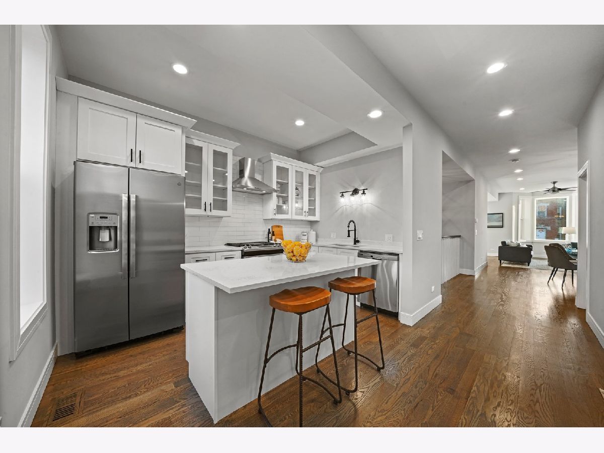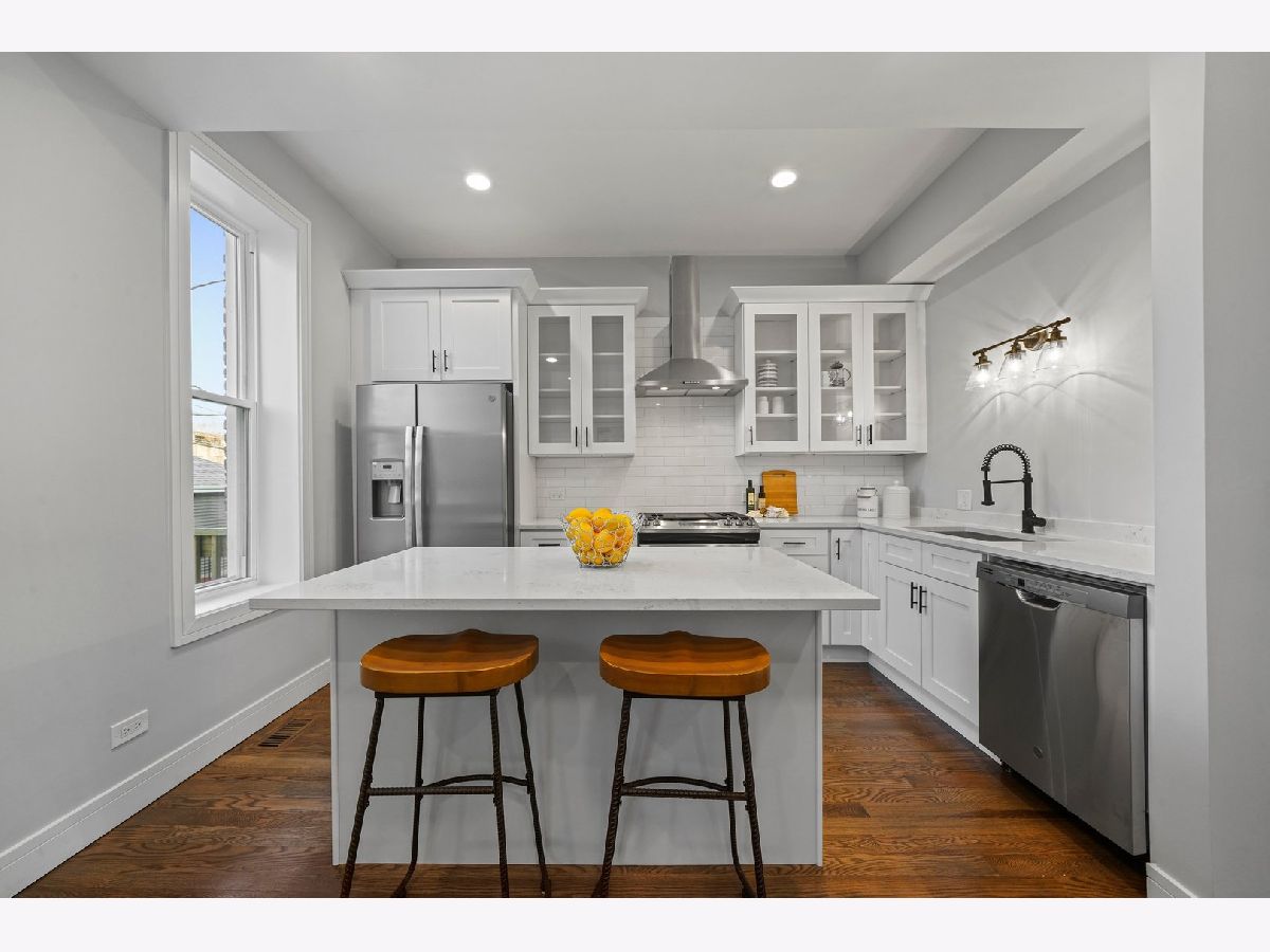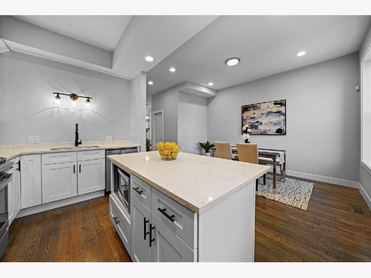PRICE IMPROVEMENT! This 4 bedroom, 2 full/2 half bath single-family home is in Woodlawn Pointe - the backyard of the upcoming Obama Presidential center. Tons of new development on the block, and even more planned. The main entrance is elevated above street level and opens up to flowing open concept living spaces with inviting atmospheres. The eat-in kitchen features modern shaker cabinets and high-end quartz counters. Bar seating on the spacious island is perfect for gathering with friends and loved ones to entertain. Also featured on the first floor is a "Zoom Room" - a quaint office space for those of us working from home, tackling homework or sharing everyday moments with loved ones. Upstairs, three bedrooms offer recessed lighting and upgraded baseboards. Two baths offer crisp tiling with wisps of smokey gray, with the master bath featuring a spacious shower and dual vanities with black accented fixtures. The basement level features a 4th bedroom as well as an additional living space bringing in tons of natural light. Similarly rehabbed homes in Woodlawn are selling for MUCH more; don't delay - get your "piece of the pie" today!