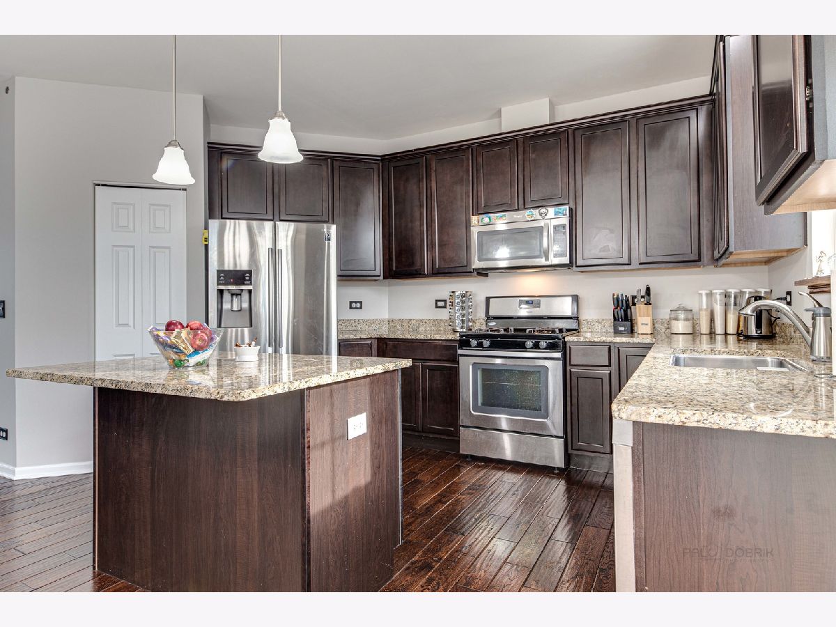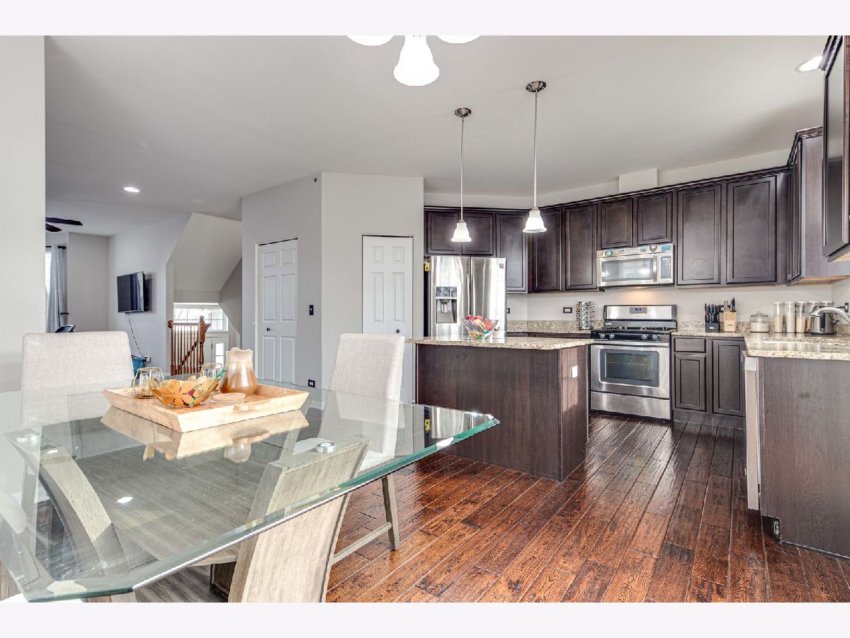 Wow The most desirable location in Hanover Park! Marvelously updated Townhouse end unit with tons of light. Close to schools, the train, shops, groceries, coffee shop, etc. 2 Bedroom and 2.5 baths tri-level dream home with Luxury hardwood floors, beautiful kitchen with granite counter top and plush cozy carpeting in the bedrooms. 1st floor living room, gourmet kitchen with island, pantry and balcony off the eating area. Newer stainless steel appliances. Upstairs master bedroom suite, with full luxury bath and walk-in closets, makes this your perfect home!!!! Utility room with washer dryer on the second level. Enjoy the park like view in front, basement set up as a rec room or man cave, plenty of room for fun And, a spacious 2 car garage.