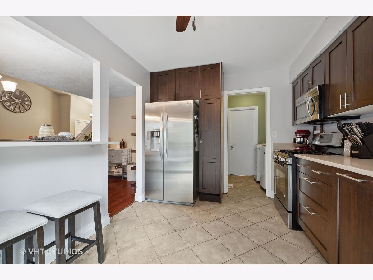 Stunning Kensington townhome with a welcoming front entrance - situated on a private cul de sac location. Spend time on your spacious deck overlooking a wooded area and serene creek. Two spacious master bedrooms - both with a walk in closet, vaulted ceiling, linen closet, and full bath. There is an additional room in the basement that could be a workout room, office of 3rd bedroom. You will love this remodeled kitchen: Cherrywood flooring in dining room kitchen, quartz counters, newer cabinets and stainless steel appliances. The kitchen has an open concept feel to the living area. Convenient first floor powder room remodeled. Full finished basement has a fireplace with gas starter. Convenient first floor laundry area also has a large pantry closet. Keep your cars warm this winter in your attached two-car garage. This is a great location! Close to school, shopping, dining and expressways - Move in and enjoy! Garage door spring 2022, water heater 2021, sump pump 2020 - Home warranty included