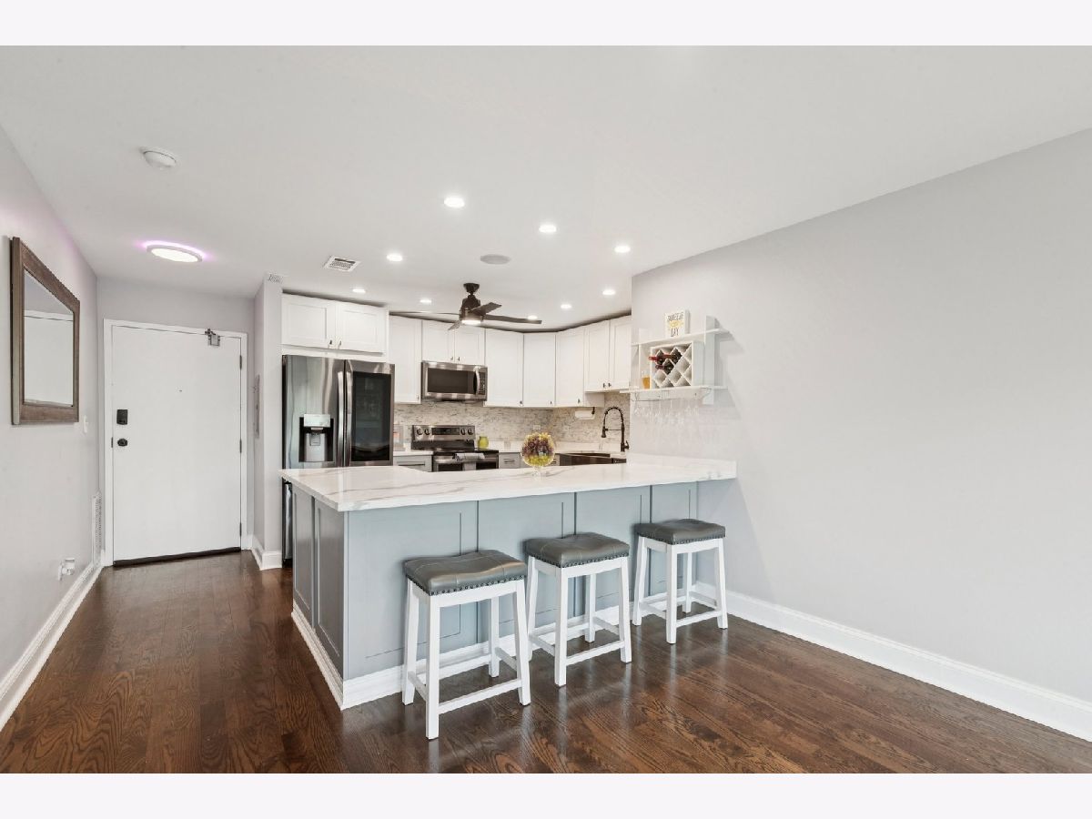 Discover this meticulously updated and maintained 2-bedroom, 2-bath condo, offering an exceptional living experience.The kitchen has been completely reimagined with new cabinets, counters, stainless steel appliances, and incredible attention to detail. Recently refinished hardwood floors flow throughout the space. Both bathrooms are fully renovated with new flooring, tile, light fixtures,vessel sinks and more. The primary bedroom features the added luxury of a walk-in closet. Laundry and storage are conveniently located on the same floor.The heated garage space includes a cabinet, currently serving as a workbench. Additional parking available. Ideally situated, this condo is just minutes from the Blue Line, Jefferson Park trains, and Metra. A forest view is so rare in a city. Enjoy this most convenient city space with its view of the Caldwell Forest Preserve from your new balcony.