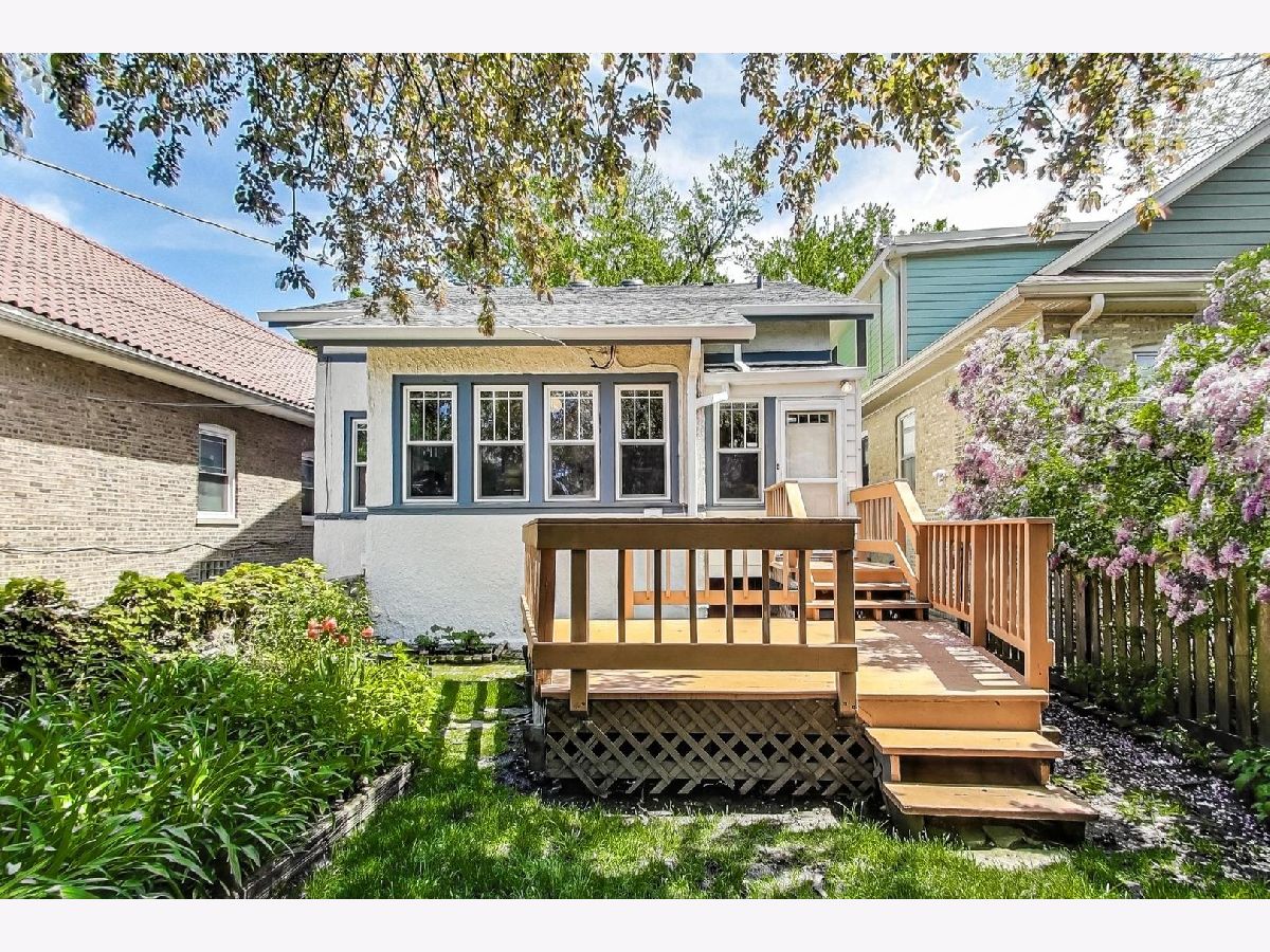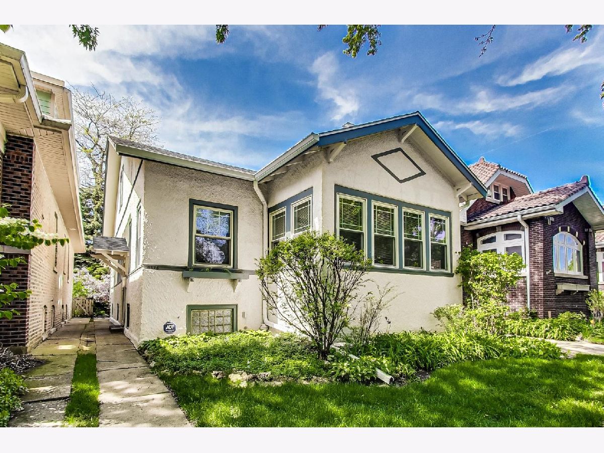 Handsome stucco West Ridge two-story home on 33' wide lot with mature trees! This wonderful home has 4 bedrooms and two full bathrooms. The first level features a living room with an original wood-burning fireplace with built-in bookshelves, a spacious three-season porch, a formal dining room with beautiful wainscoting, two bedrooms, a full bath and a kitchen with a large eating area. The first floor has hardwood flooring throughout with the exception of the kitchen. Off the kitchen is a large deck and a lovely backyard that features mature trees and perennial plantings. The second floor has two bedrooms and the second full bathroom. The second floor also boasts an enormous storage area. The full basement is waiting for your ideas! Improvements to the home include: all operational windows and main level exterior doors have been replaced and glass block windows were added to the basement, the chimney was rebuilt and the liner was extended in 2019, the roof was replaced in 2021, the exterior of both the house and garage was painted in 2022, the rear wood fence was replaced in 2022, the hot water heater was replaced in 2022, the dishwasher was replaced in 2023 and U.S. Waterproofing repaired foundation cracks in 2024 that includes a transferable warranty. Also, the majority of the first floor was freshly painted along with both bathrooms. There is a one car garage and additional driveway parking. Blocks from public transportation, fruit markets and dining. Walkable to the Mosaic School of the Fine Arts, a fine and performing arts magnet cluster school. Easy access to Warren Park, Indian Boundary Park, Robert A. Black Golf Course and the Northtown Branch of the Chicago Public Library.