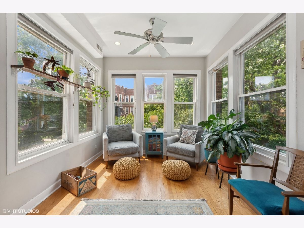 Welcome to this beautiful sun-filled vintage 3 bed/2 bath condo located in wonderful Rogers Park. This charming home is approximately 1600 square feet, featuring a gorgeous sunroom, perfect for indulging in a good book surrounded by indoor plants and your furry companion. Step inside and be greeted by a cozy living room with a gas fireplace and hardwood floors throughout. The dining room offers ample space for a large table and more. Newer stainless steel fridge, microwave, and dishwasher. New quartz kitchen countertops as well. A spacious balcony off the kitchen provides an ideal spot for entertaining or simply relaxing. This home also features a new in-unit washer/dryer, a new furnace, air conditioner, and water heater. Additionally, the property includes exterior parking, a large storage unit, and access to a well-run self-managed HOA with approximately $20,000 in reserves. Rentals are not allowed. Enjoy the convenience and peace of mind that come with a newer central air HVAC system. Located on a quiet, tree-lined street, close to shops, restaurants, parks, and all the neighborhood has to offer. Don't miss the opportunity to explore this amazing space. Be sure to check out the 360 virtual tour to fully appreciate all this home has to offer. Schedule your tour today.