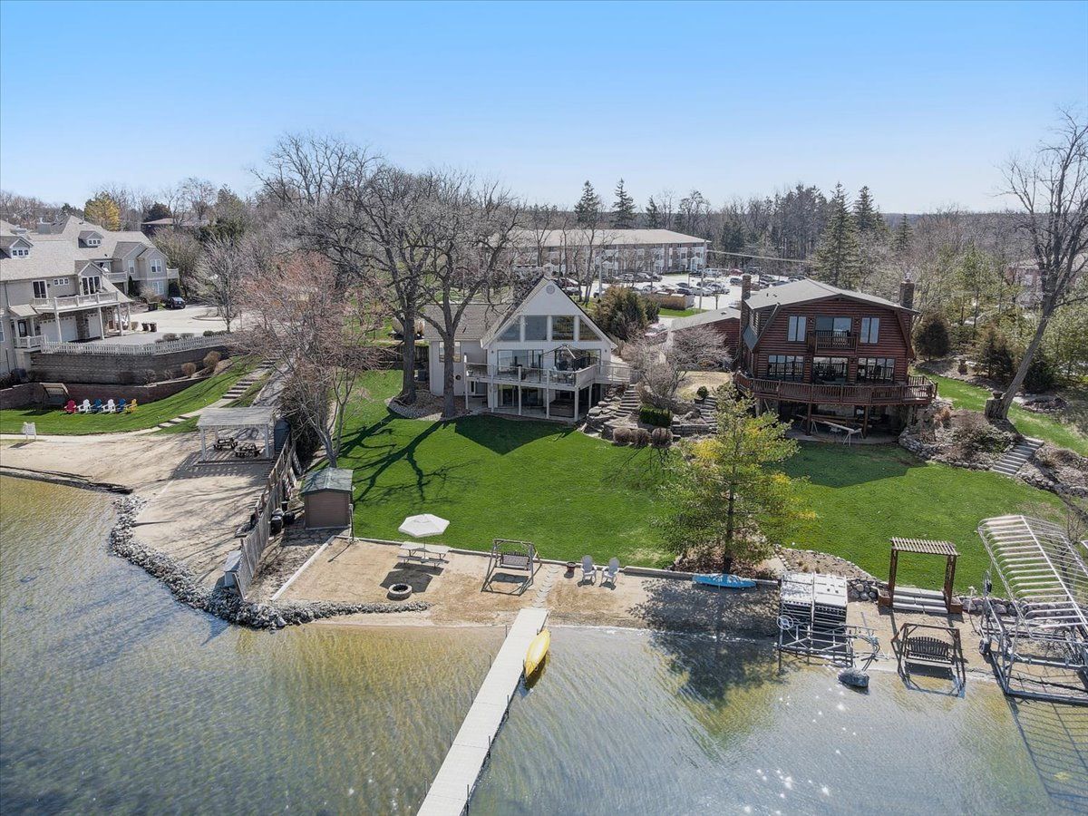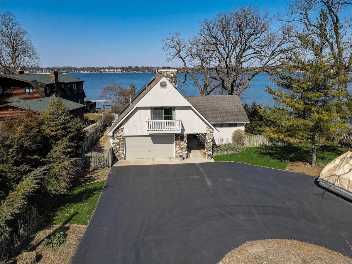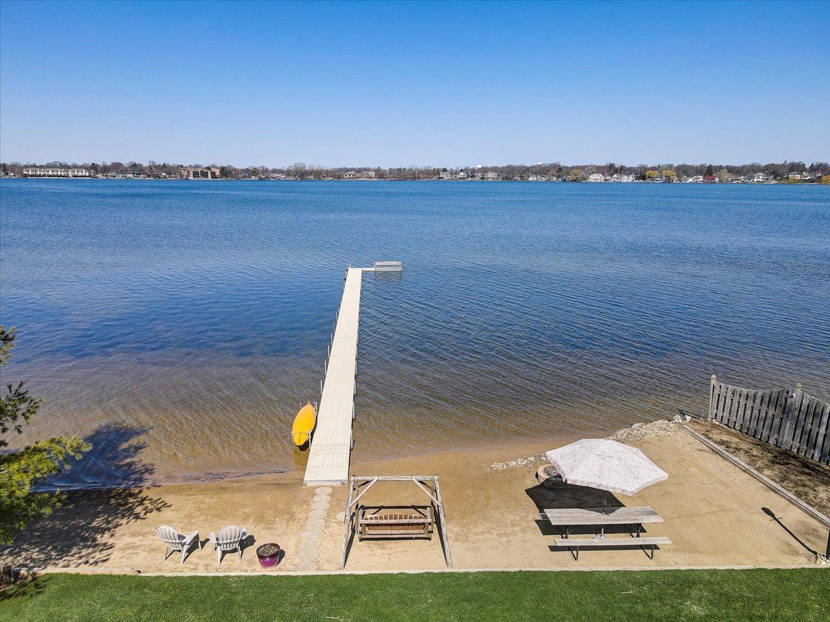 Spectacular Custom Bangs Lake Home! This one of a kind home has 78' lakeshore, 18 section ( 144') L shape pier with sunset bench, a private sand beach, & the most spectacular sunset views. Quality throughout this 2-story with walk out finished basement, volume ceilings, open floor plan, wrap around deck with IPE hardwood & glass rails , California drift stone ventless fireplaces, private master suite, newer bull frog hot tub, heated oversized garage, 220 line in garage for EV car charging, solar panels(owned ) , professional landscaped, dog run, wet bar, toy shed near pier, easy assess to laundry/bath from lake, and separate parking pad for boat trailer. Newer HVAC systems, Anderson windows to view the lake from every level. This home won't last long.