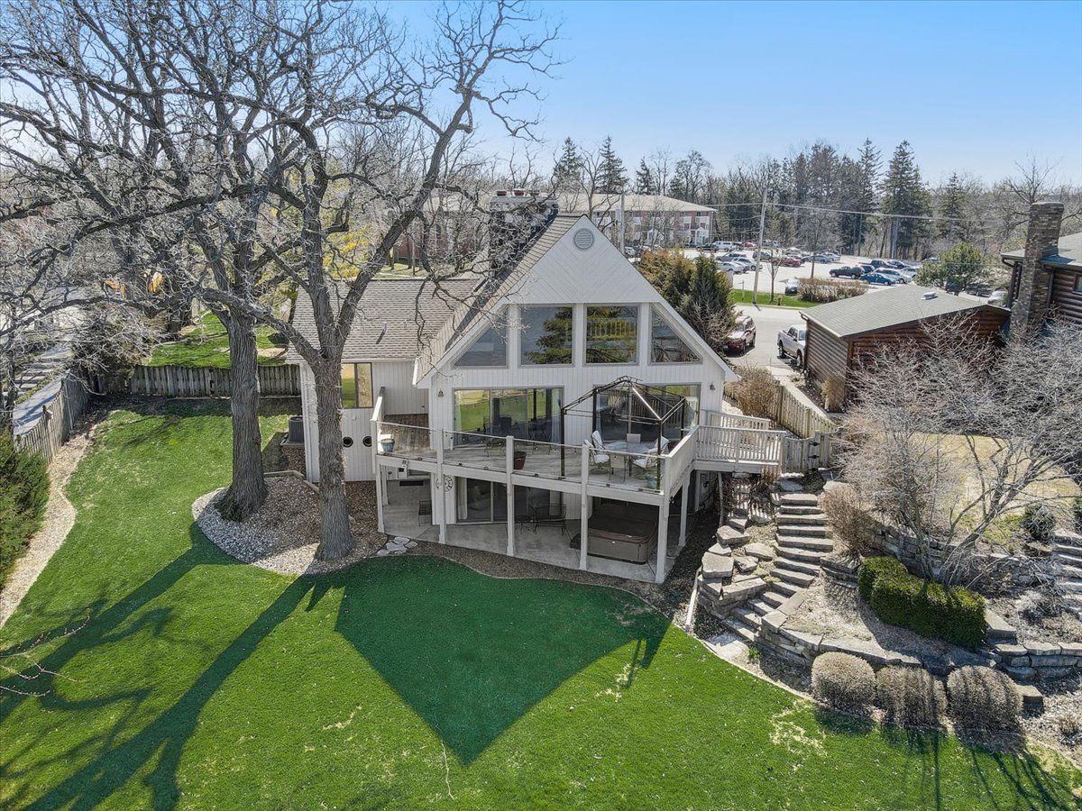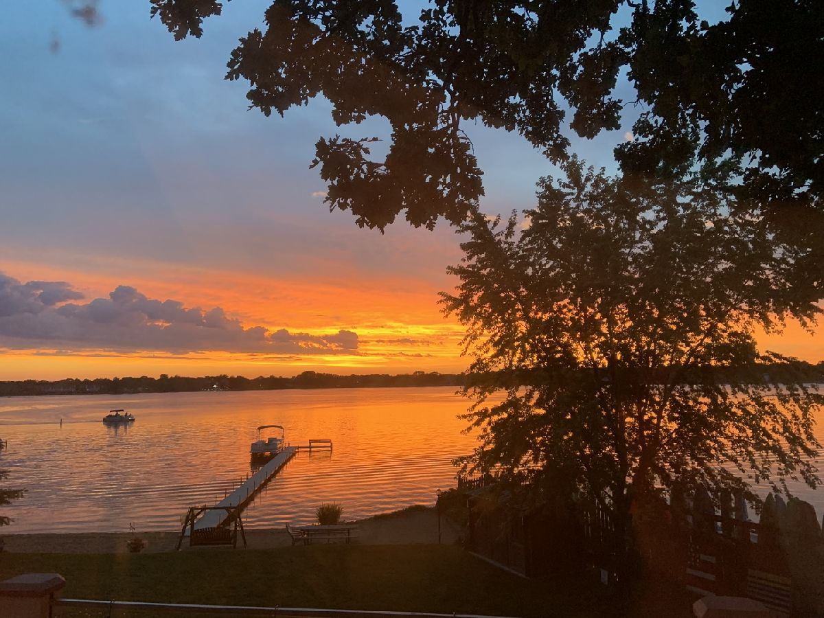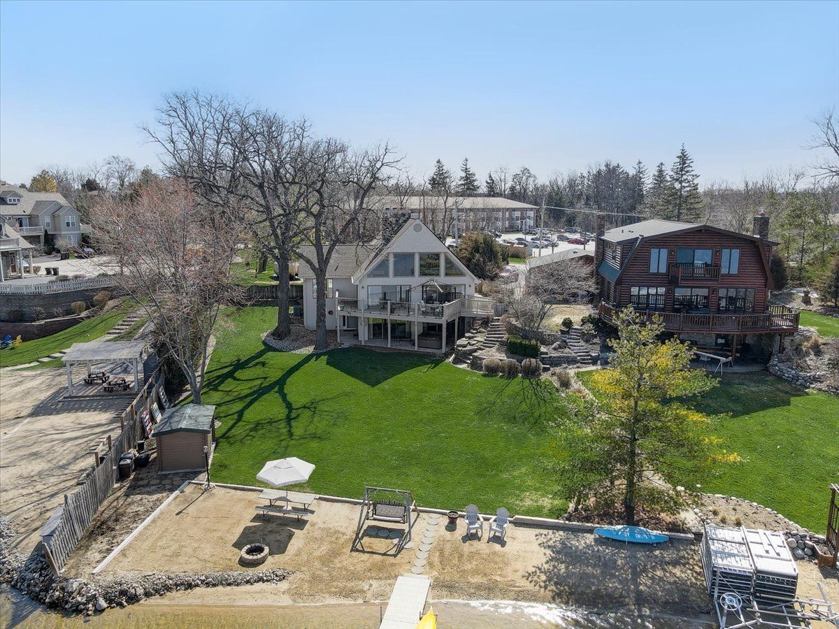 Spectacular Custom Bangs Lake Home! This one of a kind home has 78' lakeshore, 18 section ( 144') L shape pier with sunset bench, a private sand beach, & the most spectacular sunset views. Quality throughout this 2-story with walk out finished basement, volume ceilings, open floor plan, wrap around deck with IPE hardwood & glass rails , California drift stone ventless fireplaces, private master suite, newer bull frog hot tub, heated oversized garage, 220 line in garage for EV car charging, solar panels(owned ) , professional landscaped, dog run, wet bar, toy shed near pier, easy assess to laundry/bath from lake, and separate parking pad for boat trailer. Newer HVAC systems, Anderson windows to view the lake from every level. This home won't last long.