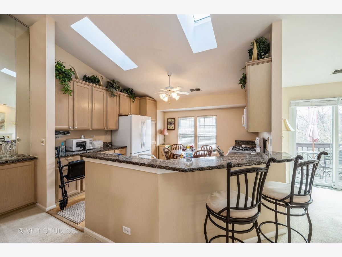 LOVELY NANTUCKET END UNIT. This 2 bed, 2 1/2 bath overlooks scenic wetlands. Large deck and patio for entertaining or enjoying the quiet wooded area and water view. Large kitchen with some newer updates. Custom wood cabinetry; granite countertops and lovely laminate wood flooring. Large dining area for entertaining. Enjoy the cathedral ceilings and skylights. Illuminated living room...open floor plan with majestic stone fireplace with gas logs. TWO MASTER SUITES, walk-in closets. Large lower level family room that goes out to covered patio....2 car garage. Close to shopping and expressways! Make it your own! Don't let this one get away!!