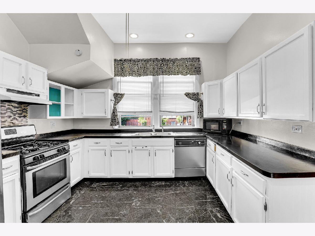 West Chicago Austin Area Mansion. This 11 bedroom, 3.5 bathroom estate sits on a fenced in double lot. Walk into the beautiful large living room with 12 ft ceiling that features original solid hardwood floors. A gorgeous fireplace welcomes you with double doors leading to a sepate dining room. Updated kitchen with white cabinets and beautiful black tile flooring. Separate sitting area or den on the main level with a half bathroom. The 2nd level features 4 generous sized bedrooms with a massive sized primary bedroom. The attic awaits you with an in-law living with 3 bedrooms, a full bathroom, and kitchen. The basement can be additional income with 2-3 bedrooms, a full bathroom, and a kitchen. Beautiful front and back deck, patio, and yard. This lovely property has so much potential and is begin sold as is.