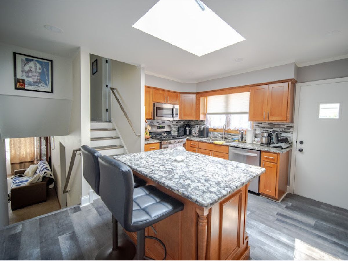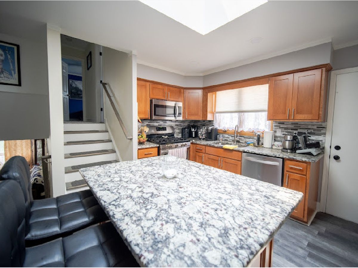 This stunning brick split-level home is a true gem! The main level features a welcoming living room, a dining room, and a newer, modern, fully-loaded kitchen complete with granite countertops and stainless steel appliances. On the second level, you'll find the master bedroom with ample closet space, two additional bedrooms, also with ample closet space, and a brand new full bath. The lower level offers a spacious family room with wood burning fireplace, perfect for entertaining and a convenient laundry room. The home boasts brand new laminate flooring throughout, new hardwood stairs, and all new trims, doors, and lighting fixtures. The charming, fenced yard includes brick stone patios both in the front and back, two new sheds, and a two-car garage with a new door. Additionally, there is a new driveway with extra parking spaces and a beautiful backyard with a garden, providing plenty of room for entertaining. You won't be disappointed with this one!