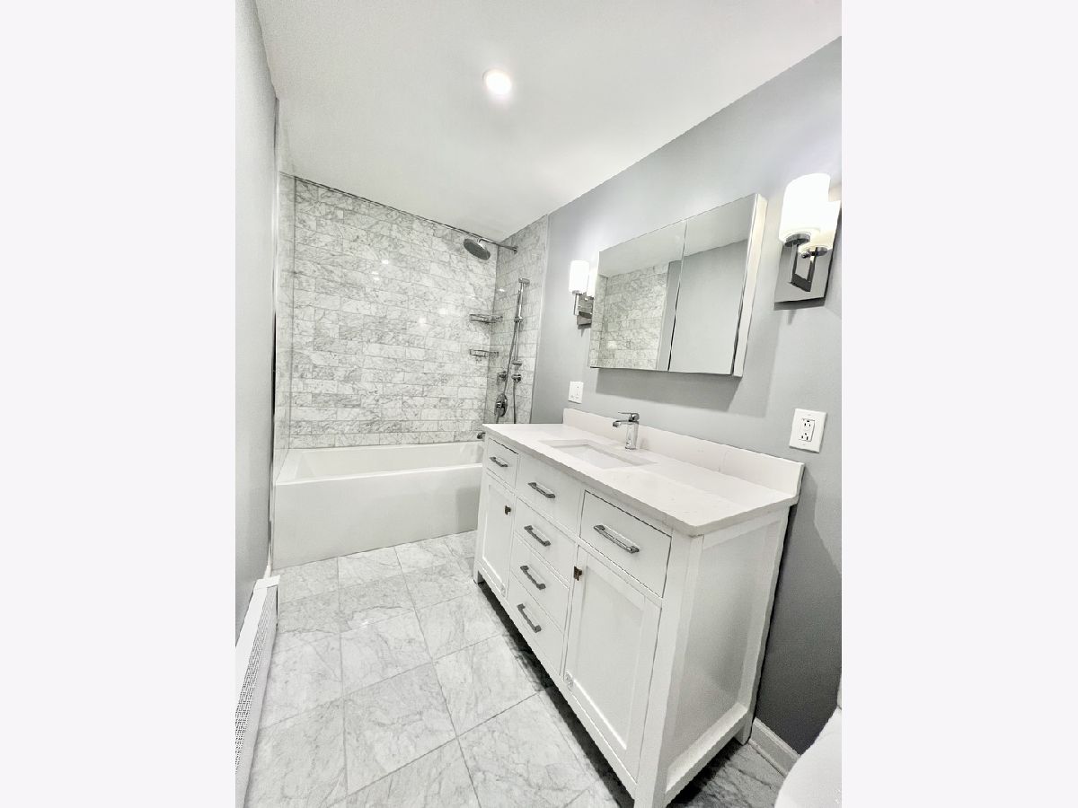 Take advantage of the low mortgage rates and don't miss the opportunity to own this bright and sunny 2nd floor unit in the desirable Norwood Park neighborhood! The property is freshly painted throughout and has 2 bedrooms,1 bathroom with plenty of storage space.The kitchen features stainless steel appliances, new quartz countertops, new flooring, and ample cabinet space. Both bedrooms are excellent sized with plenty of closet space and room for a king sized bed. The bathroom has been completely renovated, and it features a designer's vanity and lights, marble tile throughout, luxurious tub, and high-end finishes. The living room has been updated with can lights and opens out to the balcony overlooking the newly landscaped courtyard. Dining room is combined with living room. The low assessment includes heat, gas, parking, and common maintenance. This unit has an assigned parking space (#27) in the rear of the building. The building is well maintained with recent updates to the landscaping, rear entry doors, and balconies. Building's laundry room is located on main level near the unit's additional storage space (#26). Great location with easy access to public transportation, expressways and Edison Park. This home has so much to offer, it is not to be missed!