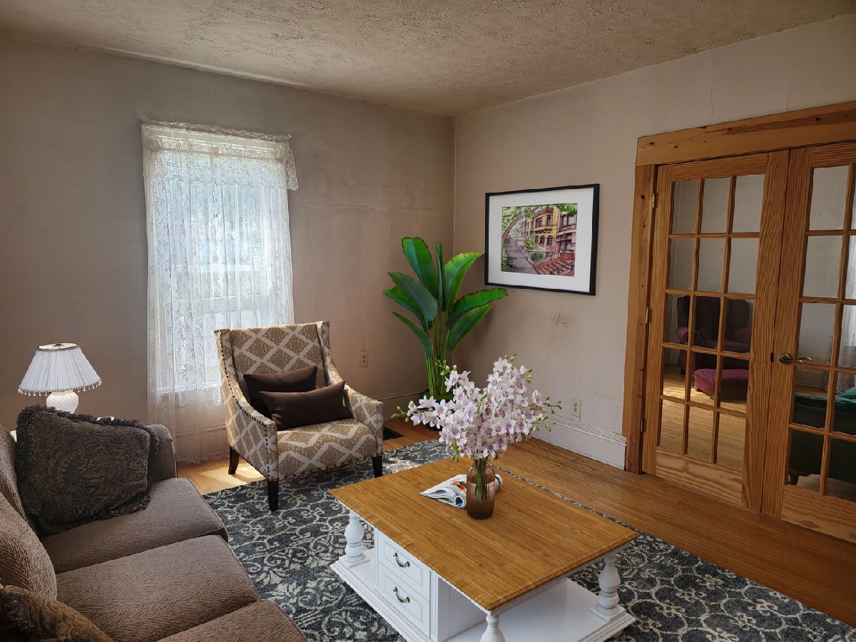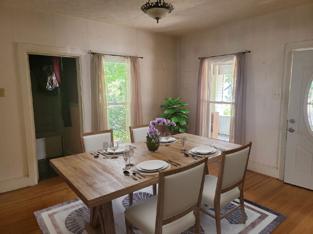 Corner lot and great opportunity! Relax on the over 16' covered front porch. Beautiful hardwood floors throughout the entire home except bathrooms and one of the 4 bedrooms. Main floor features living room, dining room, bedroom, full bath, kitchen with dining area. Upstairs offers 3 bedrooms, one of them has a private half bath. Gas forced air and central air. Washer and Dryer included.