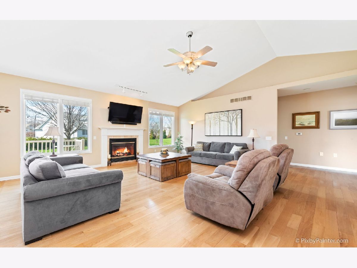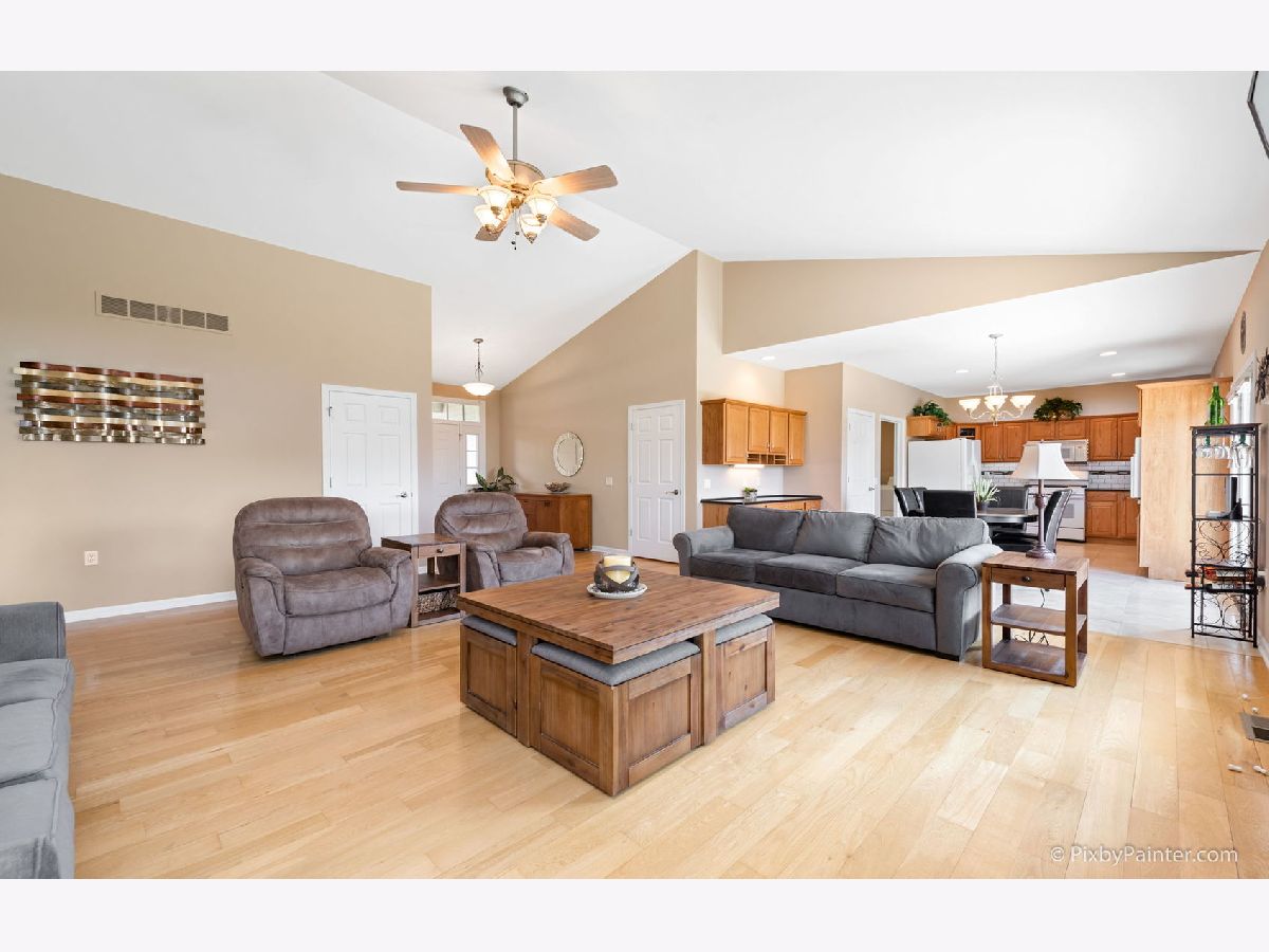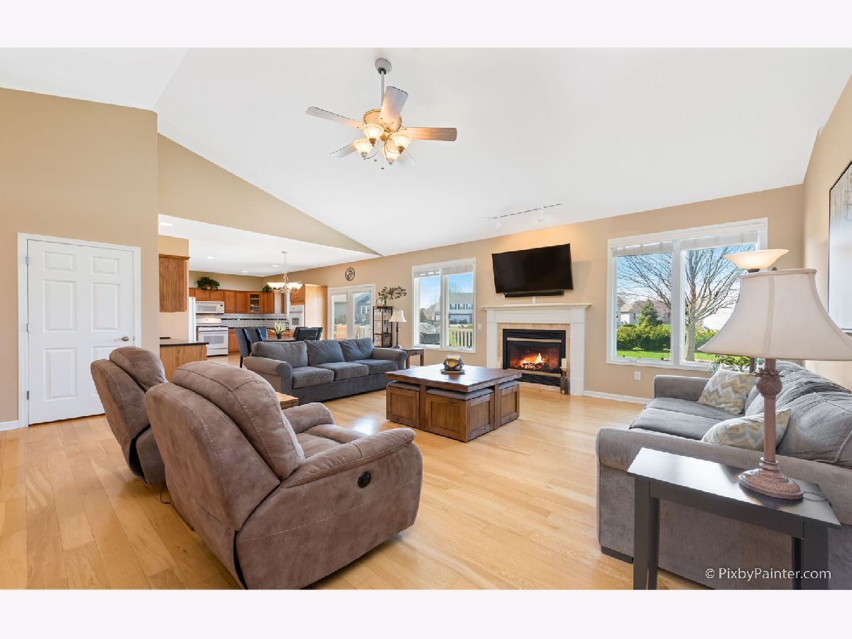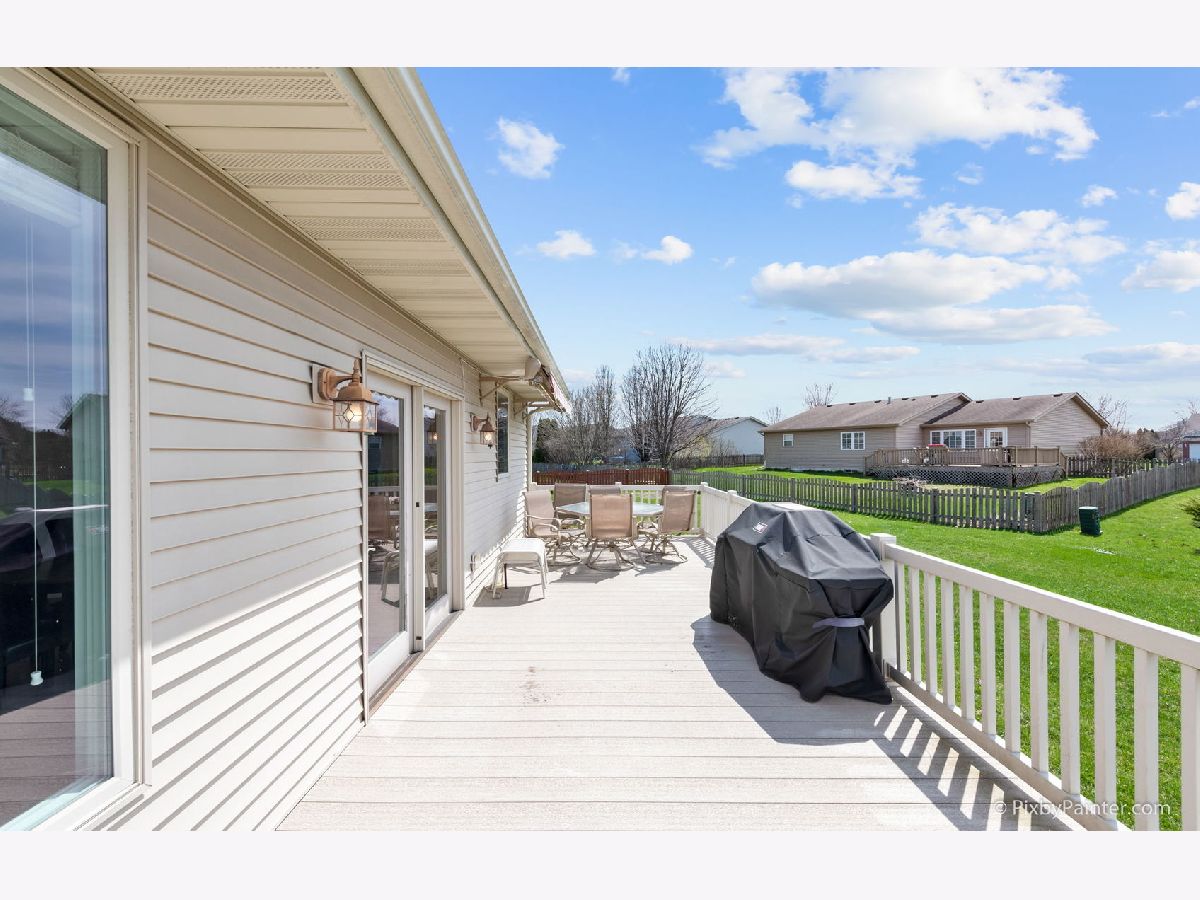 Here it is! This beautiful custom built ranch has 3 beds, 2 baths, RARE 3.5 car (heated) garage, and over 1,700 sq ft! Light and bright open-concept living area has neutral paint, cathedral ceilings, cozy gas fireplace and gorgeous hardwood floors that carry throughout the entire home! Updated kitchen boasts ample cabinetry, granite countertops, custom backsplash, built in desk area, and huge dining space. Gigantic master bedroom has HW floors and en suite bathroom with walk-in shower, separate dual vanities, and walk-in closet. Additional two bedrooms are down the hall and have easy access to second, updated full bath - perfect for guests! Large basement (with bathroom rough-in) is a clean slate and ready for your finishing touches! Main level laundry room is spacious and conveniently located off the garage. Enjoy your outdoor space with low-maintenance trex deck and remote control awning! Over-sized lot (0.3 acres) backs up to park area with huge green space. Walk to Dekalb High School. Just minutes to NIU, shopping, dining and I-88! TV in great room and electric fireplace in guest bedroom both stay. Nothing to do but move right into this low maintenance home! AGENTS AND/OR PROSPECTIVE BUYERS EXPOSED TO COVID 19 OR WITH A COUGH OR FEVER ARE NOT TO ENTER THE HOME UNTIL THEY RECEIVE MEDICAL CLEARANCE.