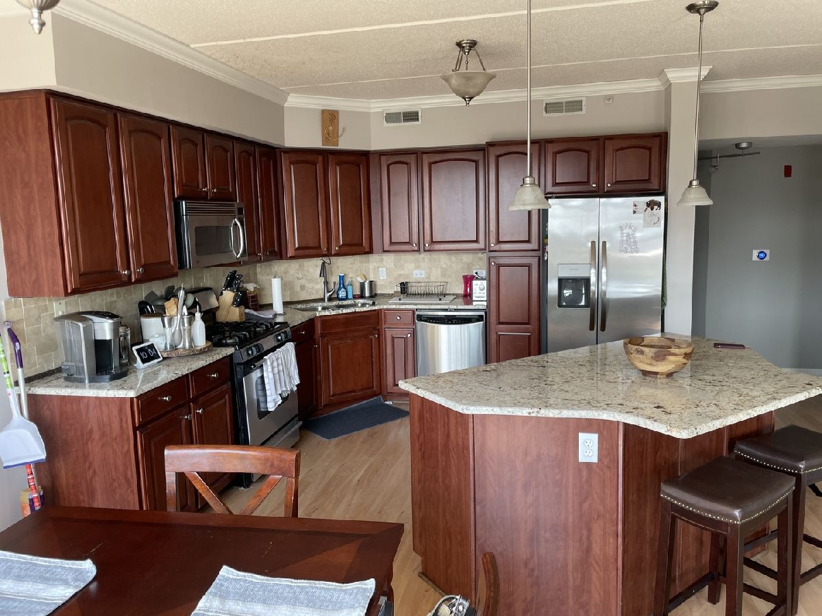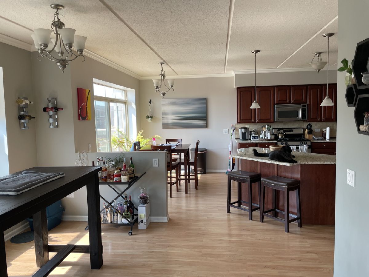 Beautiful and bright top floor, corner unit. The natural light and views of Chicago really make this place feel like home. Large balcony with east facing views brings in a stunning sunrise. Recently updated kitchen, with brand new refrigerator. Large second bedroom and an even larger master suite. Master bath has a bathtub and a walk in shower, with a His&Her vanity. Full size washer and dryer in unit. Heated garage parking and storage included! Come and see this wonderful and rare unit before it's gone! The unit is currently rented and the current tenant will leave the premises 60 days after contract signing or sooner.