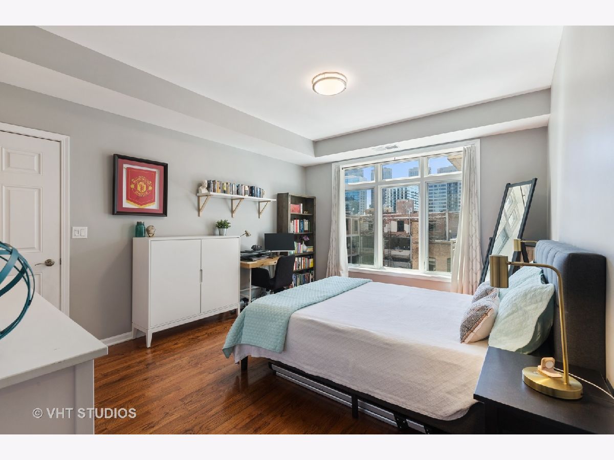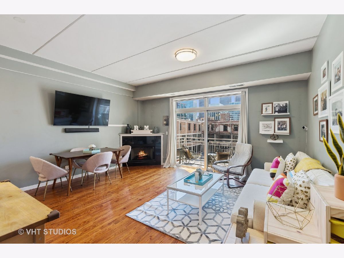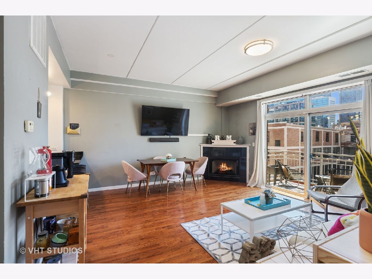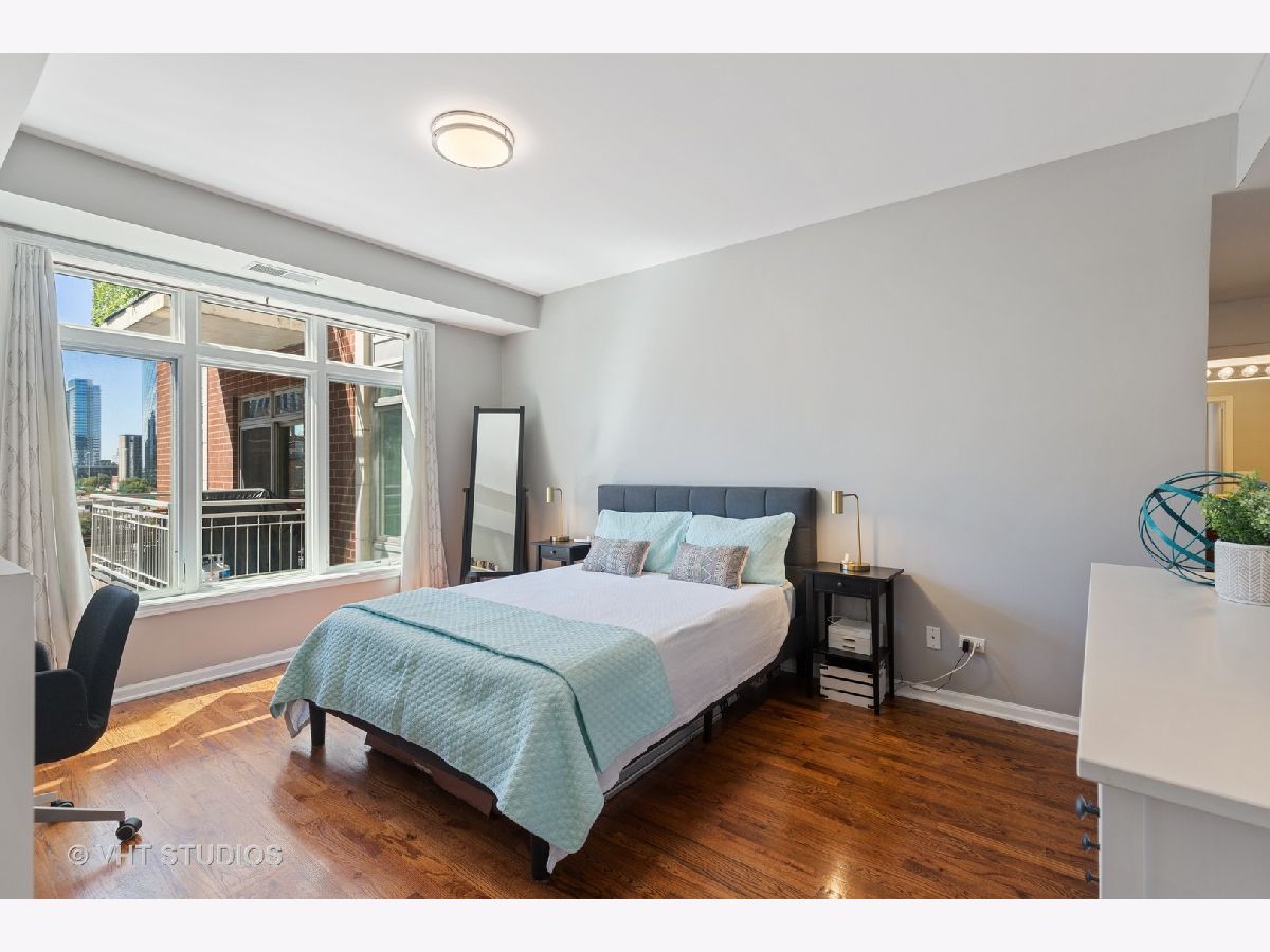 Boutique elevator building in the heart of booming Fulton Market surrounded by all of modern-day amenities & transportation. Turn-key unit with sunny south facing exposure and downtown views. Open extra-wide floorplan has living room w/gas fireplace that leads out to balcony and open to pretty white kitchen with new fridge and dishwasher. Spacious master suite with huge walk-in-closet & attached stone bath with double bowl vanity and walk-in shower. Guest bedroom (perfect as a den with a daybed & desk) is enclosed with French doors & attached full bathroom w/pedestal sink and tub/shower. Hardwood floors throughout, laundry in-unit & storage. Pet Friendly. Assessment includes TV cable & internet. Rockstar location, crawling distance to all the Fulton & Randolph street restaurants, shopping, grocery stores (Whole Foods & Mariano's), parks PLUS quick access to highway, Metra & EL (pink, green, blue line).