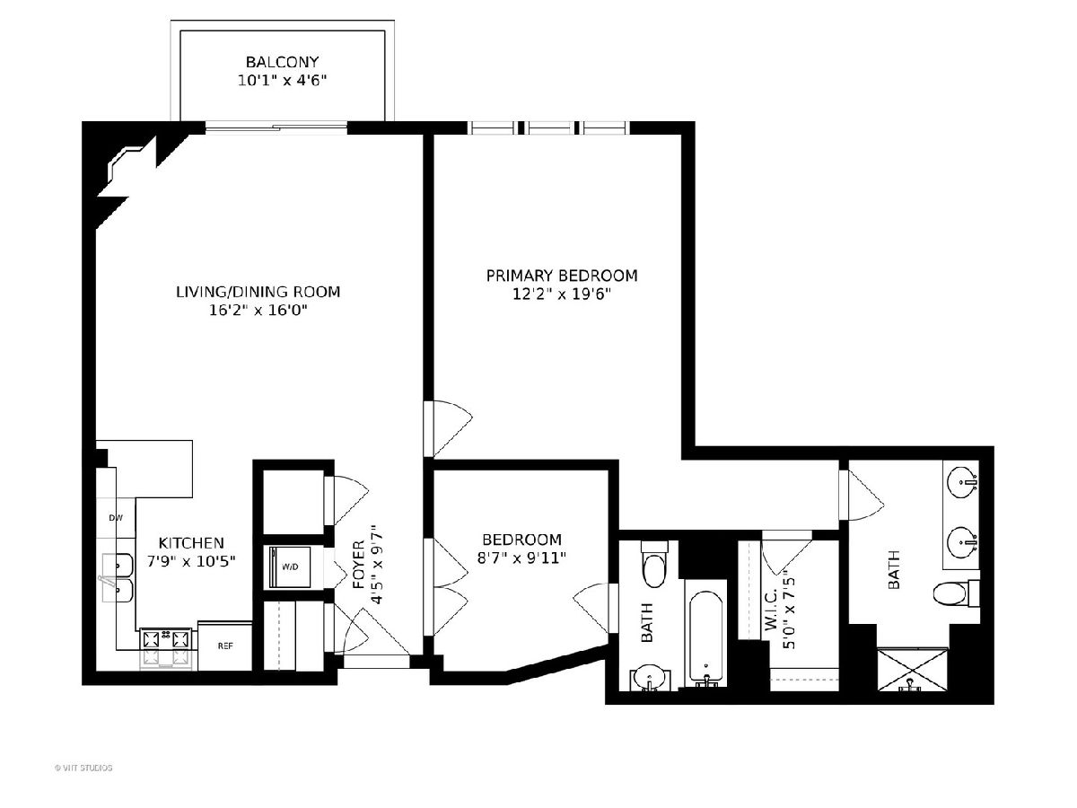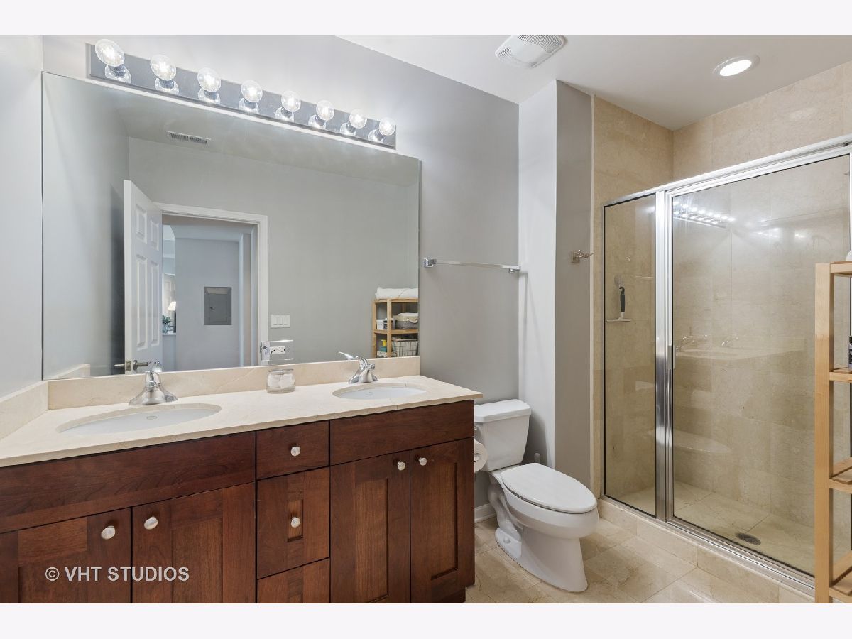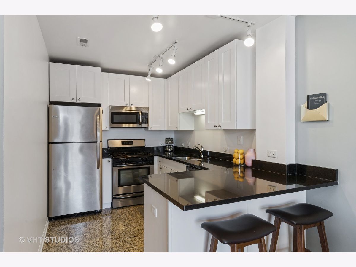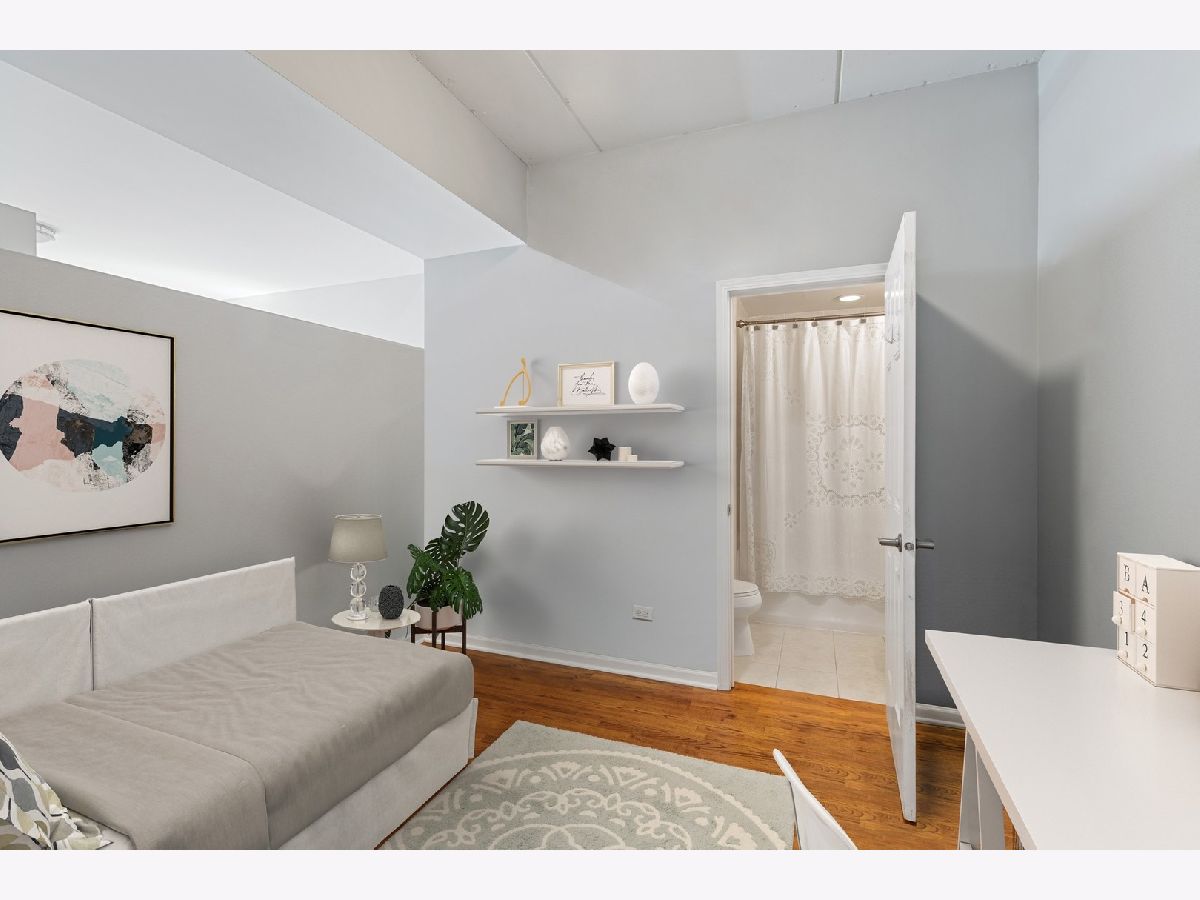 Boutique elevator building in the heart of booming Fulton Market surrounded by all of modern-day amenities & transportation. Turn-key unit with sunny south facing exposure and downtown views. Open extra-wide floorplan has living room w/gas fireplace that leads out to balcony and open to pretty white kitchen with new fridge and dishwasher. Spacious master suite with huge walk-in-closet & attached stone bath with double bowl vanity and walk-in shower. Guest bedroom (perfect as a den with a daybed & desk) is enclosed with French doors & attached full bathroom w/pedestal sink and tub/shower. Hardwood floors throughout, laundry in-unit & storage. Pet Friendly. Assessment includes TV cable & internet. Rockstar location, crawling distance to all the Fulton & Randolph street restaurants, shopping, grocery stores (Whole Foods & Mariano's), parks PLUS quick access to highway, Metra & EL (pink, green, blue line).