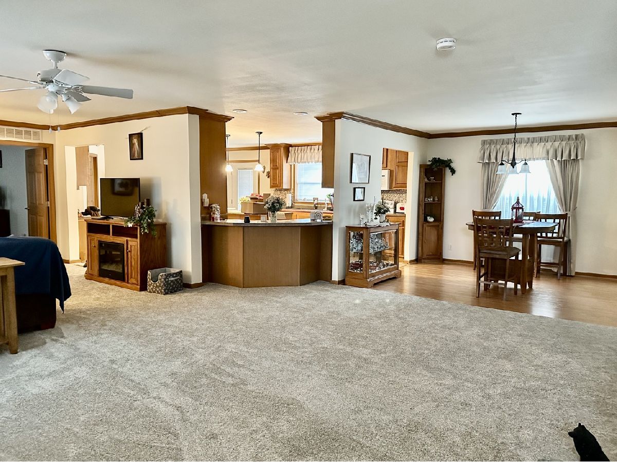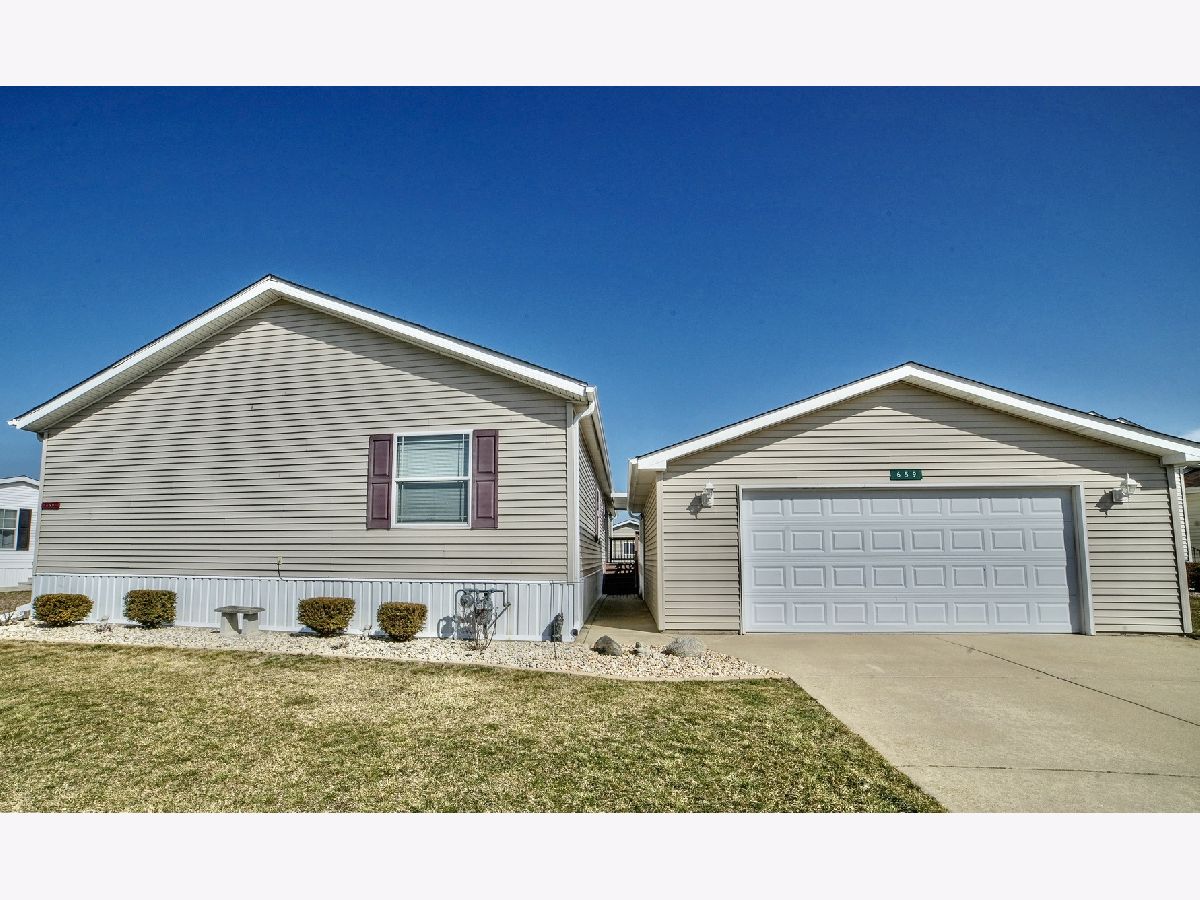 Spacious 3 bedroom, 2 bathroom home in highly desired 55+ Oak Ridge Mobile Home Park. Huge kitchen with pantry and island is open to the oversized family room and dining room. Master bedroom with double doors to the newly renovated master bath complete with a walk in closet. Over 2000 square feet in this spotless, split bedroom floor plan with tons of natural light, drywall, and crown molding. Roof and downspouts new 2021, master bathroom 2022, living room and bedroom carpet 2023, paint and custom drapes 2020, new door locks, front door, screen door, kitchen sink, faucet, and garbage disposal. Park offers a golf cart trail leading to downtown Manteno and a clubhouse for their residents to use free of charge. Please note living room is now carpeted. Contingent on Seller finding suitable housing.
