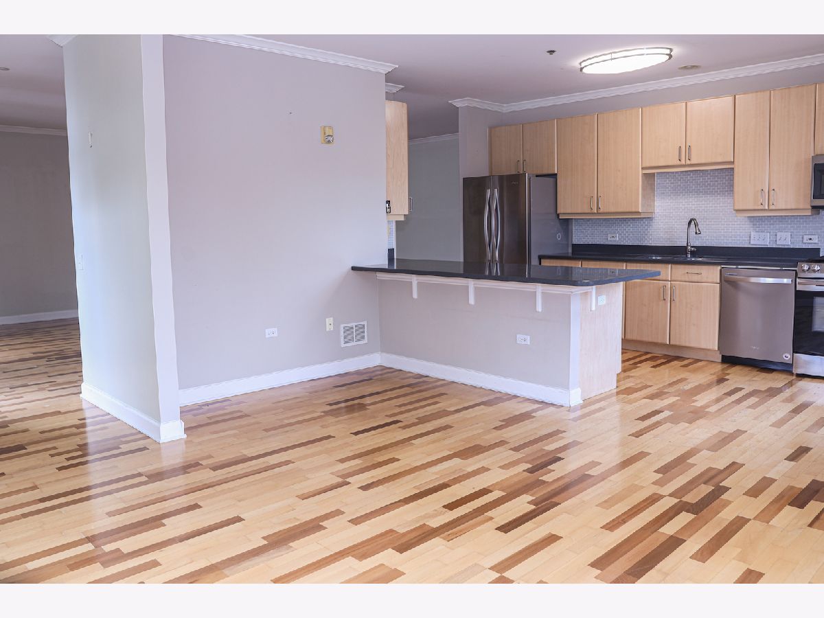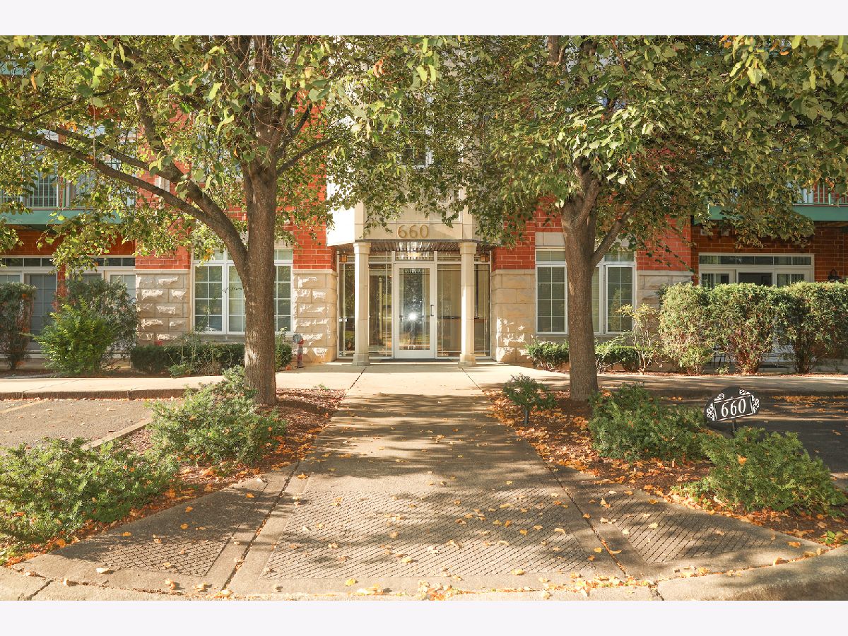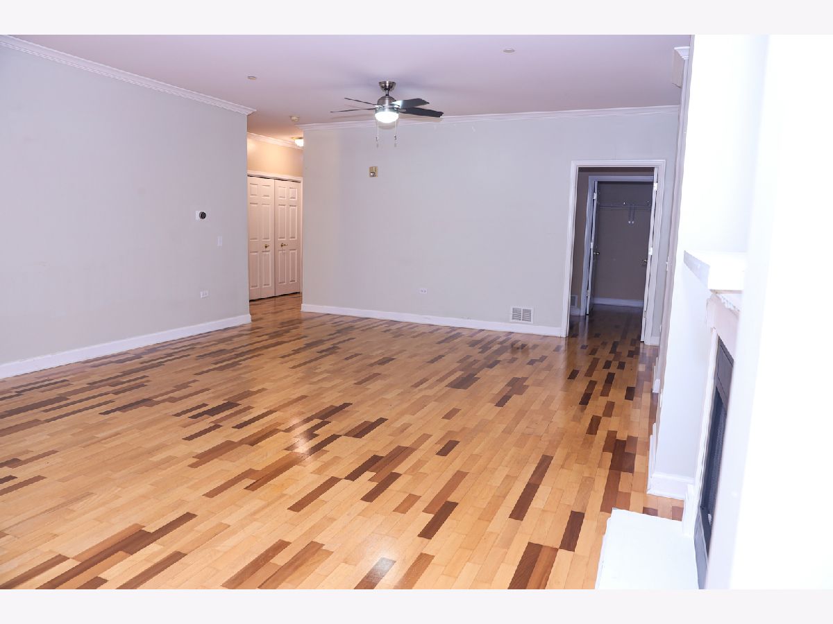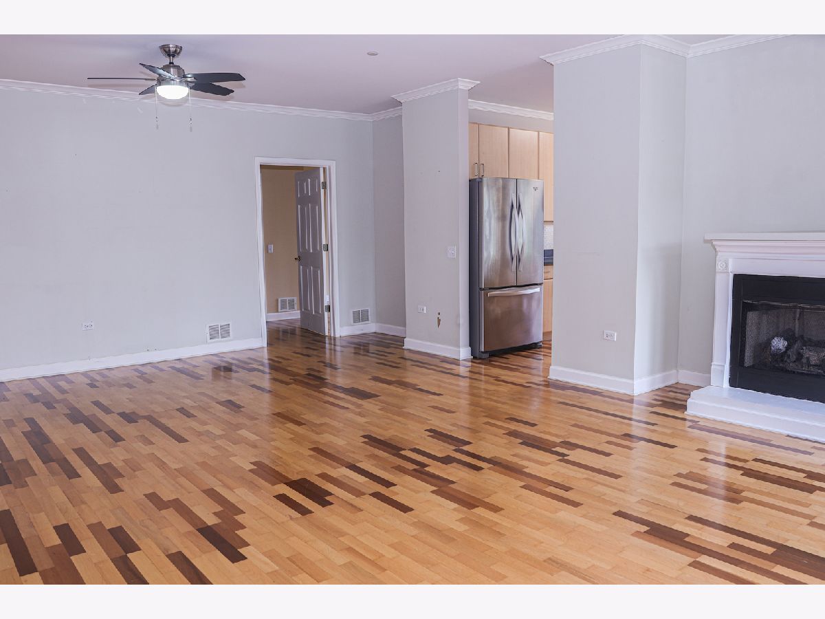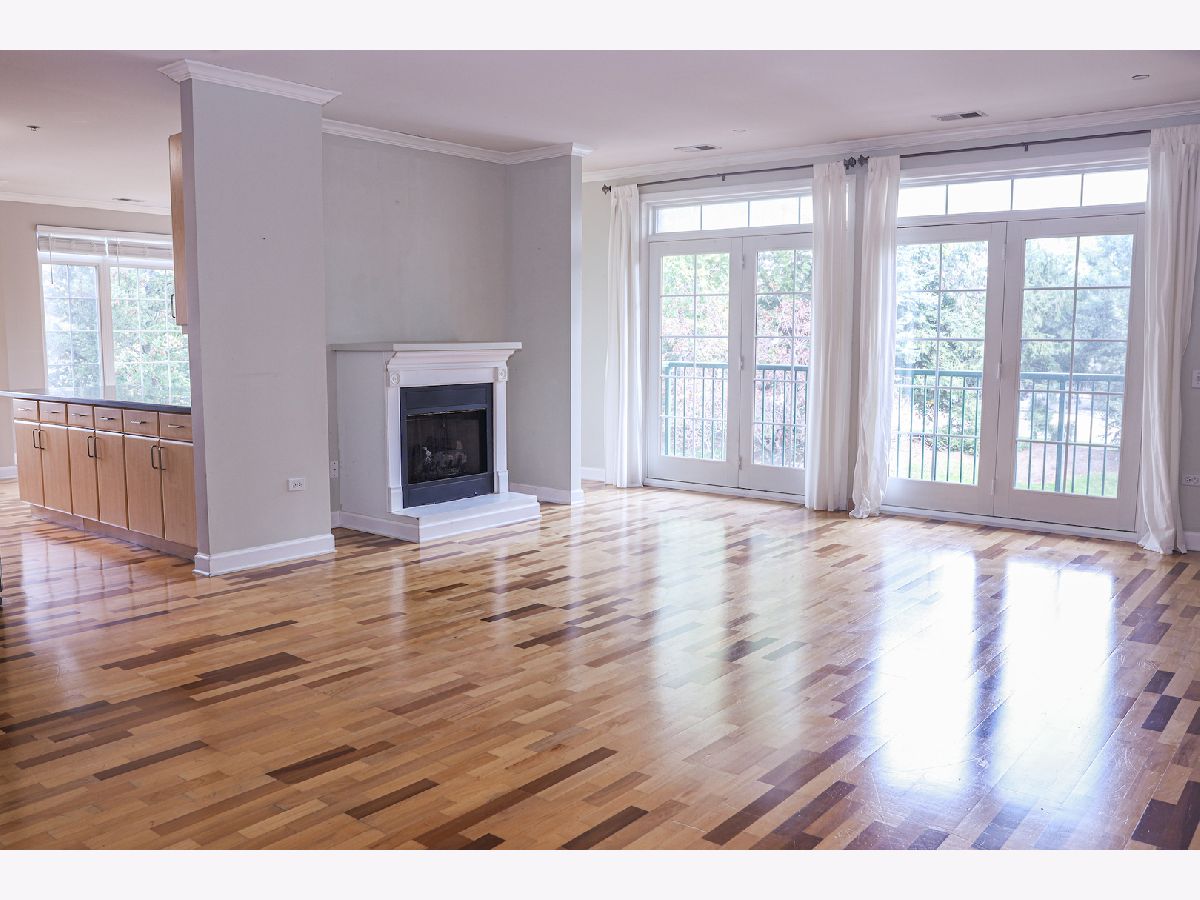Come see this rarely available CORNER UNIT in desirable Park Point. Being one of the larger, split-bedroom, open floorplan units with spacious outdoor balcony, prepare to call this expansive residence your home. Custom engineered hardwood floors and beautiful crown molding are featured throughout. The kitchen is an entertainer's dream, boasting a large and convenient breakfast bar, all newer stainless steel appliances, custom maple cabinets, and lots of counter and storage space. Enjoy the seamless flow into the family room with loads of windows that bathe the room in natural light. Enjoy the naturally lit great room (living room) courtesy of two charming balcony doors, or simply relax by the gas fireplace that captures the essence of cozy - just in time for the holiday season! The generously sized master suite offers a spacious walk-in closet. The en-suite bath is a rejuvenating oasis featuring a double sink vanity, separate walk-in shower, and luxurious soaking tub. The second bedroom is equally spacious with its own walk-in closet. The second bathroom is conveniently adjacent to the second bedroom. The in-unit laundry room features newer Amana washer and dryer units, and ample cabinet storage space. The hallway closet is nicely fitted with easily movable shelving units, providing extra storage options. Elevator building with convenient heated underground parking spot #2 and adjacent storage locker and plenty of visitor parking. Park Point offers walking paths, gazebo, green space, and is a short walking distance to Childerly Park. Located in the prime Buffalo Grove High School district, and conveniently near Route 53, I-294, and Metra Wheeling Station. Ideally located near Wheeling Town Center - where shopping, dining and entertainment options are plentiful! This unit is offered "AS-IS". Don't miss your chance to make this home your sanctuary. Schedule a showing now!