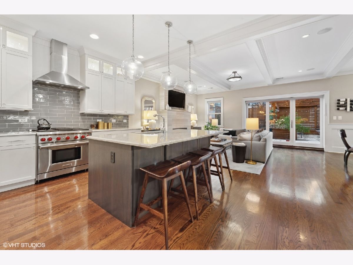 This immaculate and luxurious East Lakeview duplex is all brick and extra wide (34.5 feet!). Offering four bedrooms and three full baths, it includes an attached heated garage, and features an incredibly rare 1000 square foot, professionally landscaped, private terrace, which flows directly off the main living space. A true sanctuary in the city. This home makes a statement from the moment you set foot onto the mosaic inlay foyer. No detail was spared - rich hardwood flooring, crown molding, coffered ceilings, and wainscoting enhance the main level. Entertaining is a joy in the open-concept kitchen, living and dining room. Surround yourself with classic white cabinetry, natural stone countertops, Sub-Zero Fridge, Wolf Range, wet bar and an oversized kitchen island. Cozy up in front of the gas fireplace or retreat to one of the four bedrooms - two on the main floor and two on the lower level. The primary suite is flooded with natural sunlight from two south-facing, French latticed windows which are customized with blackout window treatments. Enjoy the organized walk-in closet and ensuite bathroom with marble tile, double sink vanity and a luxurious steam shower. Appreciate the little luxuries: snowmelt heated driveway and front stairs (never shovel again!), surround sound wiring, lower-level radiant heated tile flooring, and concrete between the floors for soundproofing. A dedicated laundry room offers a side-by-side washer/dryer, cabinet storage, and a utility sink. Set in the heart of East Lakeview, this is one of the most sought-after neighborhoods in the city - and Melrose is one of the best blocks. Nestled among the shopping, boutiques and gyms of both Broadway and Halsted, it's a pedestrian's paradise! The lakefront and Belmont Harbor are only minutes away. Commuting is as good as it gets with quick access to Lake Shore Drive, numerous bus lines and the Brown/Purple/Red Line CTA stop at Belmont. Nettlehorst Elementary is one of the top elementary schools in the city with a charming presence on the block. Just steps from your door - don't miss the delightful weekend farmers' market that brings organic farmers from all over the region. 660 West Melrose is truly an amazing location to call home!