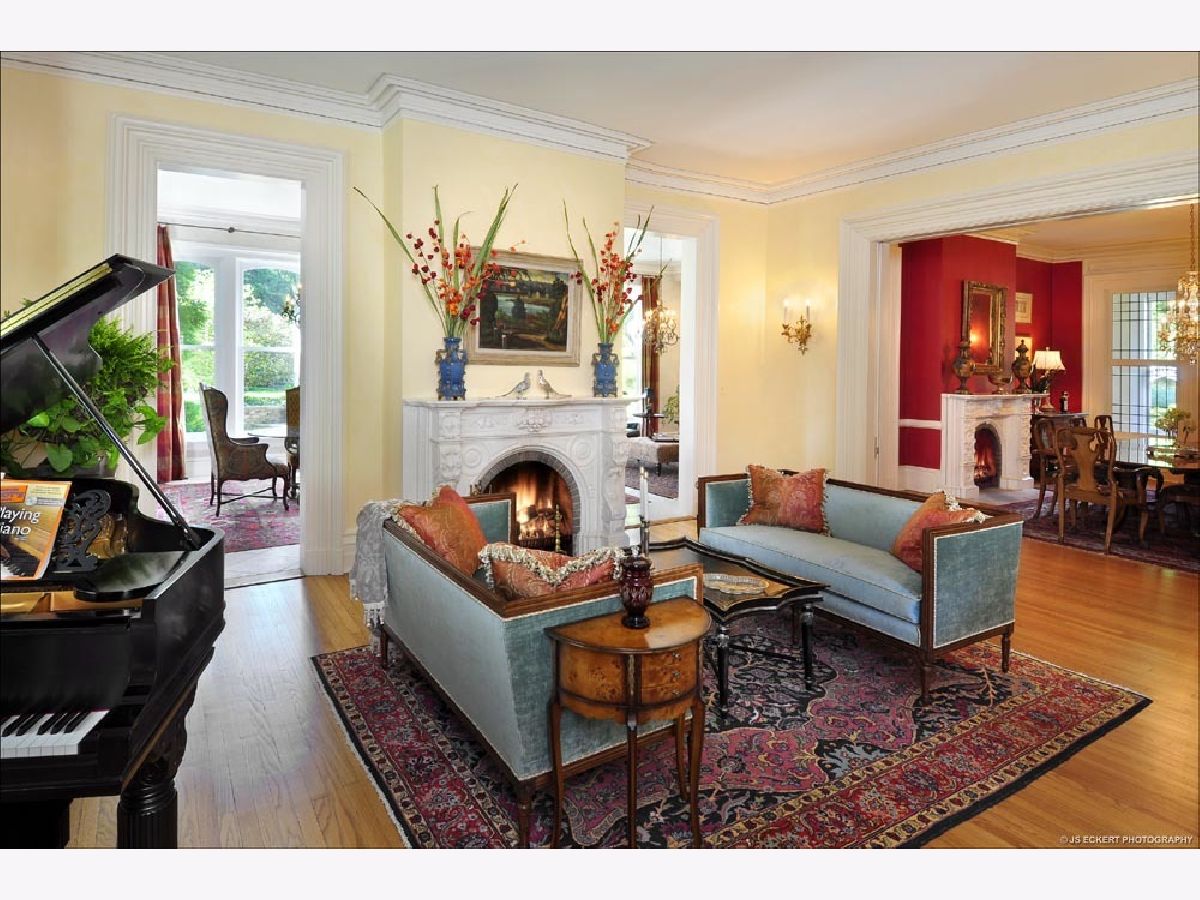 Ideally located between Lake Forest Beach and Market Square, this in-town gated oasis is the perfect combination of location, magnificent home, gorgeous grounds and stunning in-ground swimming pool. The offering includes two pin numbers which includes a sub-divided 1.4 acre parcel. Originally built for the first mayor of Lake Forest the home has been updated in the 21st century including adding new heating and cooling systems, plumbing and electrical. Past owners have followed the interior standards for the renovation of historic properties, keeping the exceptional details and gracious comfort of the original home while updating for ease of living. The plentiful windows in the high ceilinged rooms (11 foot in main rooms) allow for a bright interior with outstanding views of the expansive lawn and lovely gardens. The beautifully preserved finely crafted details include exquisite antique mantels, lovely lighting, fine millwork and rare woods including an African mahogany staircase. The family room, library, den and a finished third floor offer multiple comfortable, casual living options in addition to the more formal areas. The kitchen (with fireplace) faces south with views of the gardens, fountain and pool. Combined with a butler's pantry, catering kitchen and sitting area this is the heart of the home. Third floor has three separate areas with a full bath.Three car heated attached garage. Wine tasting room and large wine cellars, accommodating 7200 bottles. Taxes are less than $50,000. Historic preservation easement. Extensive interior painting just completed, with many new improvements during the last year, providing a move-in condition home. View website for a full list of improvements and the home's history. Quick close is possible.