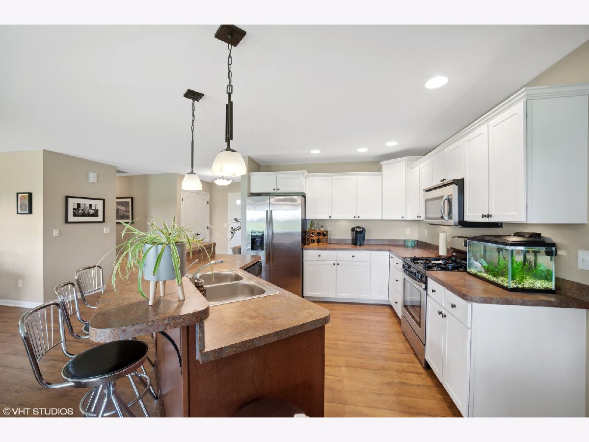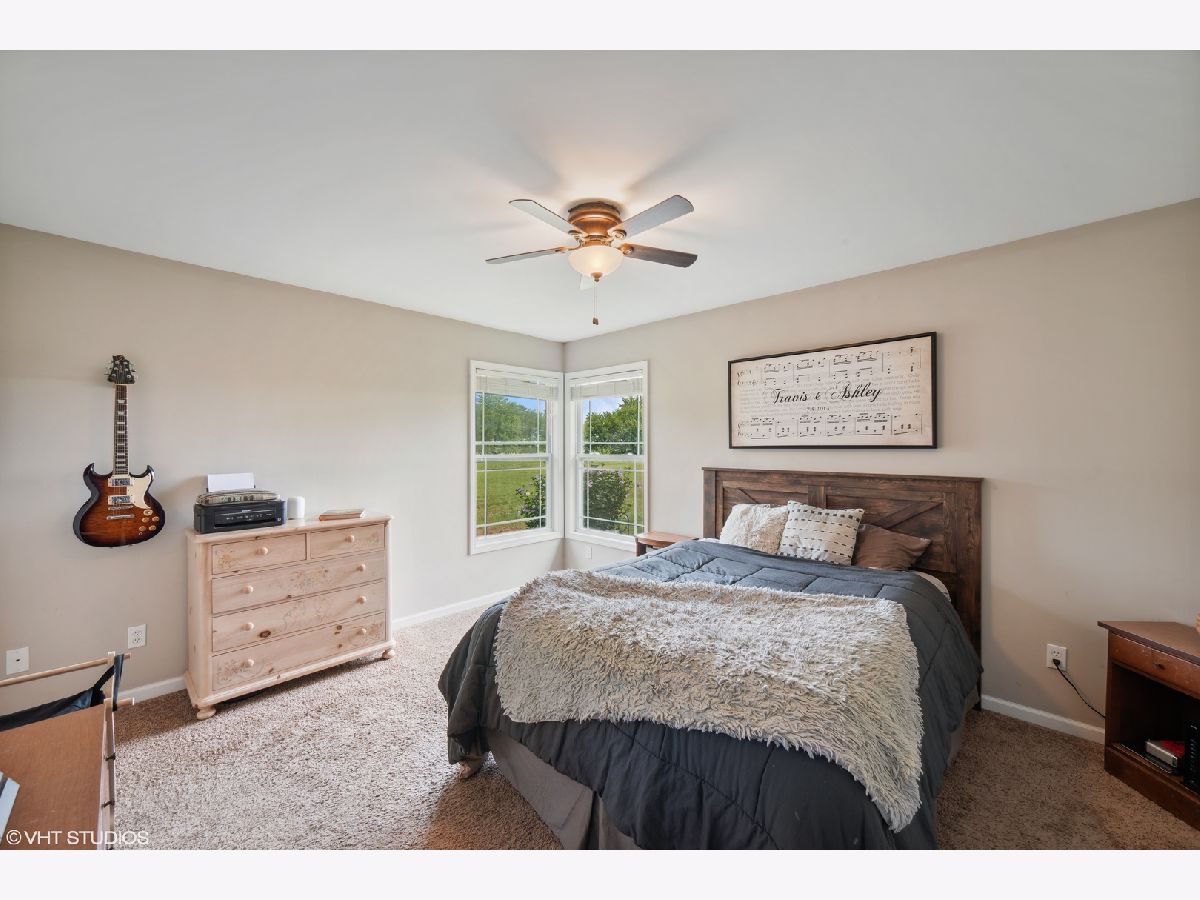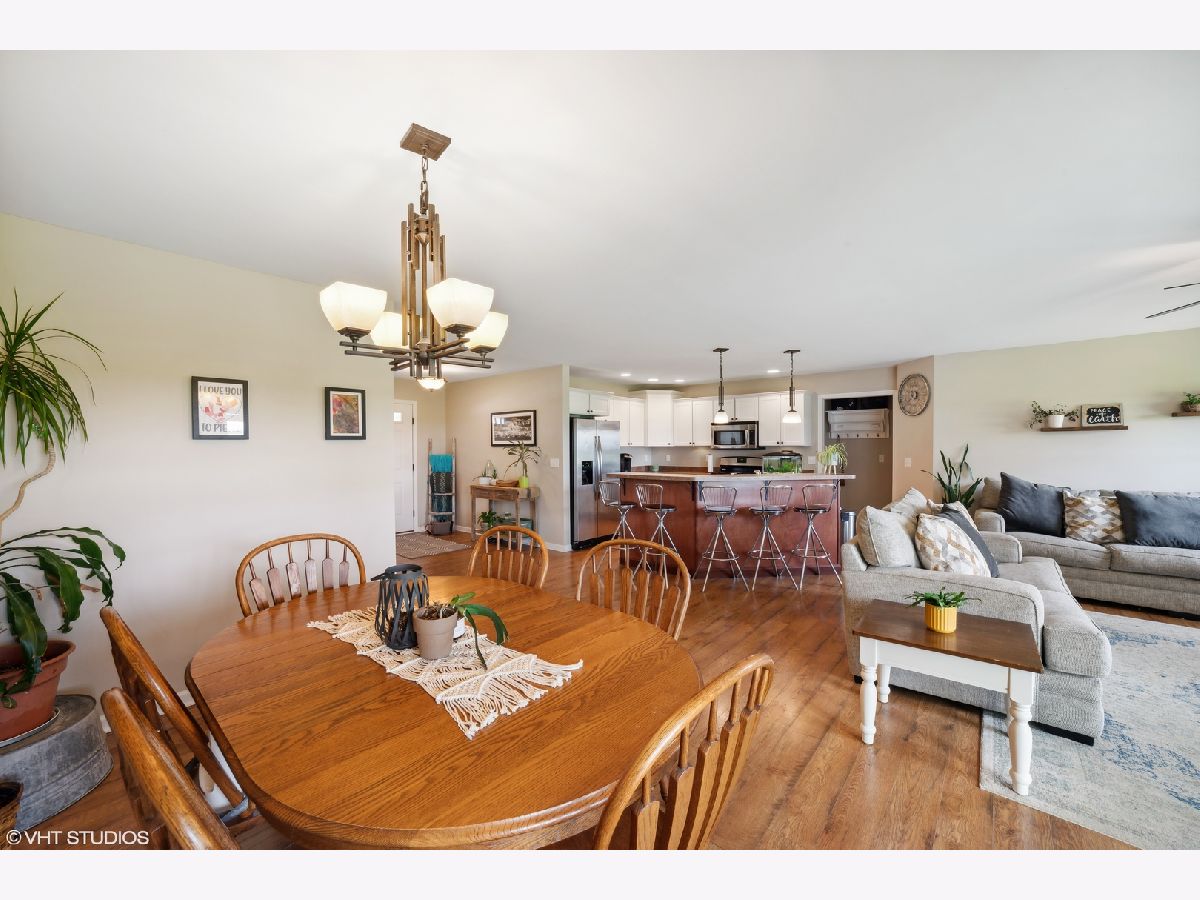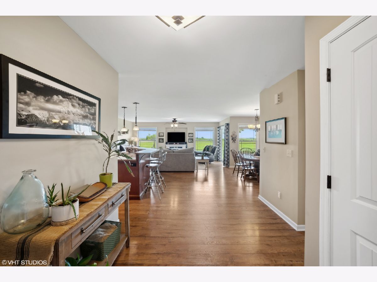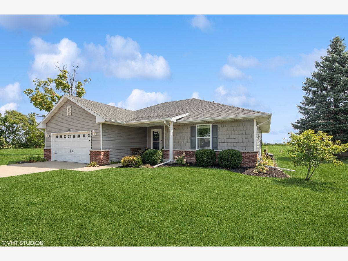 Welcome to this beautifully maintained ranch home nestled on a spacious lot with serene views of open fields. Build in 2015, and freshly painted, this home boasts an open floorplan with a large eat-in kitchen with a breakfast bar, stainless steel appliances, and expansive white cabinetry. Off the kitchen, a separate dining space, and cozy family room with sliding door access to the backyard and the covered porch converge, creating the perfect central space for families or for entertaining. The thoughtfully designed layout ensures your restful retreat, as the primary bedroom, complete with an ensuite full bathroom, sits separately from the other two bedrooms. Two additional bedrooms on the other side of the home are flanked by a spacious bathroom sporting a double vanity and a versatile shower tub combo. Beyond living spaces, you're provided with ample storage options. From the extra garage space, to the pull-down stair attic, the crawl space, and the roomy walk-in closets - every nook and cranny is optimally utilized. Situated within a cul-de-sac, within walking distance to the nearby community park, and just a 5-minute drive from vibrant downtown Manteno, you're never too far from local amenities while still enjoying the perks of the privacy the location provides. Schedule your showing today to discover this gorgeous and functional Manteno gem - it will not last long!