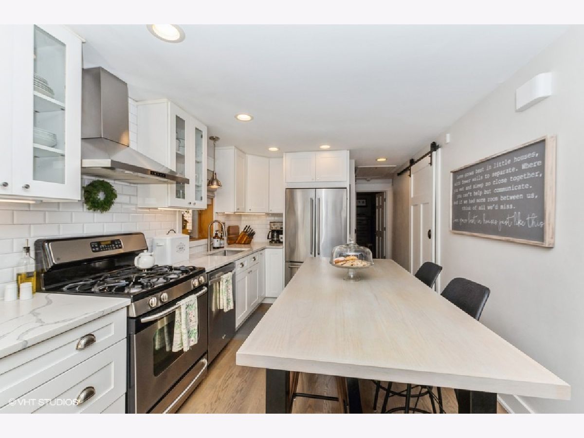 MUST SEE! You will be impressed from the moment you walk in! This beautiful home has been meticulously maintained and features 3 bedrooms and 2 full bathrooms. Plenty of updates including newer roof, high efficiency furnace, wrought iron handrail, landscaping, new eat-in kitchen featuring quartz countertops, stainless steel appliances, and pantry with barn-style door. Kitchen opens to large outdoor deck with glass sliding doors and rolling shutters. Hardwood floors throughout. Newly remodeled bathroom on main level. Fully finished basement with a large wet bar, laundry area that has plenty of storage, basement bathroom has a 2 person jacuzzi tub. Backyard features a privacy cedar fence, large composite deck, gorgeous landscaping, stamped concrete, and side drive next to garage with sliding gate. Stone lofted 2.5 car garage with plenty of storage. This house is located north of the train tracks.