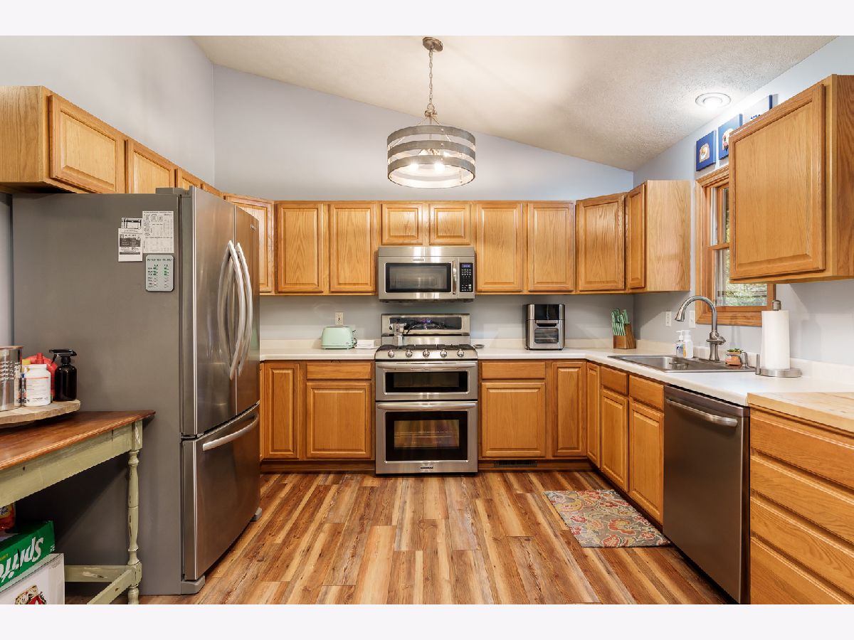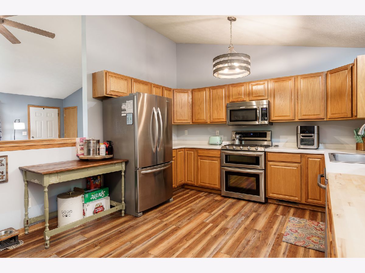 Welcome Home! This is the home you have been waiting for. This well cared for Updated Ranch has approximately 1660 Sq Ft of Living Space. The ranch features an open floor plan with vaulted ceiling in the Living Room with newer LVP flooring. The Kitchen has an abundance of cabinets as well as newer stainless steel appliances and counter space. The Primary Bedroom and the 2nd Bedroom are good size. There is an updated Bathroom as well! The Large Basement is finished with a Rec Room, 2nd Bathroom and a Large Laundry/ Storage/Utility Room. Heated and insulated 2.5 Car Garage and extra deep. Home has Beautiful Deck with a step down area as well as a nicely landscaped fenced (2022) yard and shed on .34 acre lot backing up to 8 acres of woods. All appliances stay except the washer and dryer. Furnace/AC 2018, Water Heater ( 2018), Water Softner (2017) and LVP Flooring (2018). This wonderful house is convenient to Rock Cut State Park, Perryville Bike Trails, I-90 and Shopping. Low 8.02 Tax Rate. This home is a must see !