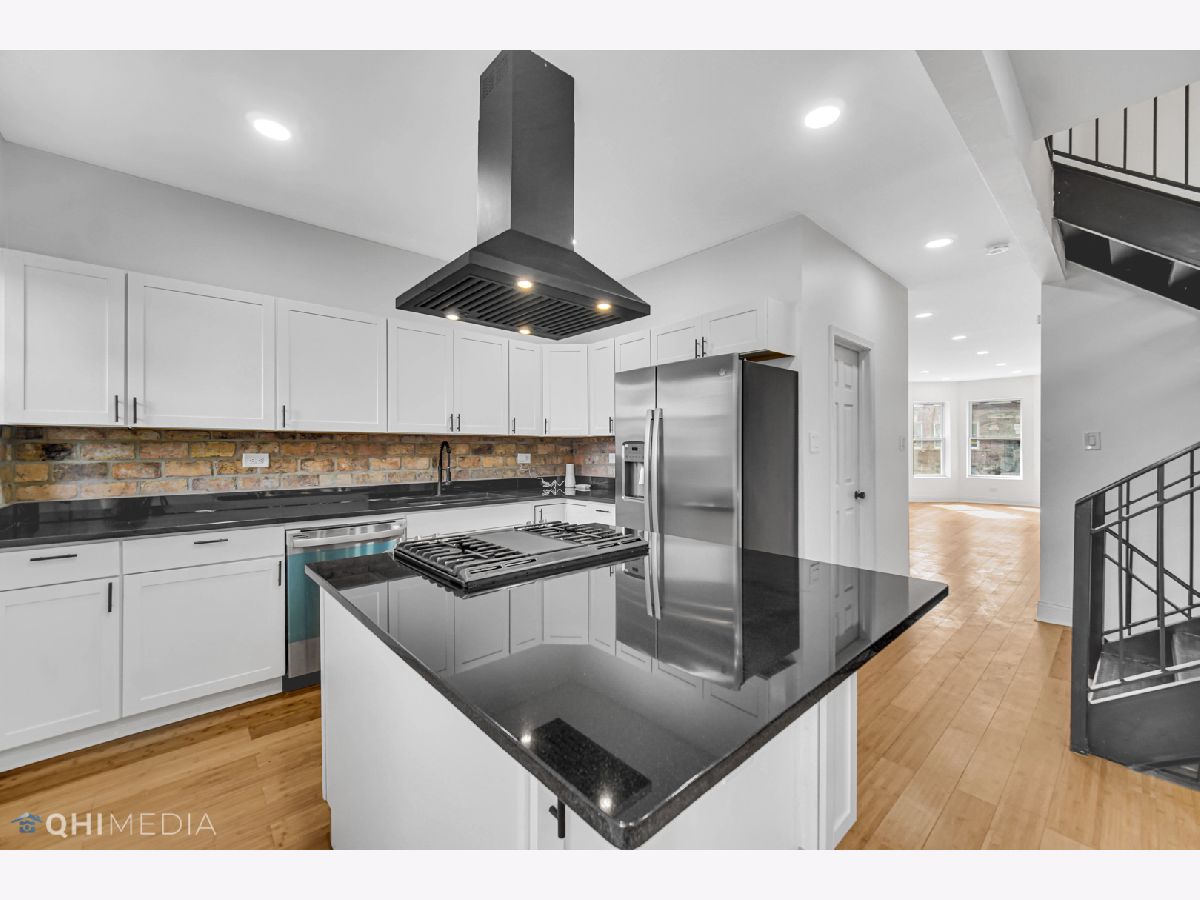 Another tastefully remodeled and designed home by Dwan Designs. Complete rehabbed brick bungalow w/ stylish finishes and a functional layout. 4 bedrooms (above level) plus 1 bedroom below in the fully finished basement. 3 FULL Bathrooms and a 1/2 bath.The interior features welcome you to an open concept living area w/ recessed lighting throughout, exposed brick, new kitchen with all white-cabinetry, SS appliances, granite countertops and an island. bamboo flooring throughout, Master bedroom with an ensuite bath, skylight and vaulted ceilings. The fully Finished walkout basement is a great addition to the common living space, and features a kitchenette w/ brand new washer and dryer set. More great features include New roof, all new windows, New hot water heater, new furnace, central air, fenced backyard with parking slab.Located in the Woodlawn community surrounded w/ a ton of New Construction homes, minutes away from the 90/94, transportation and shopping.