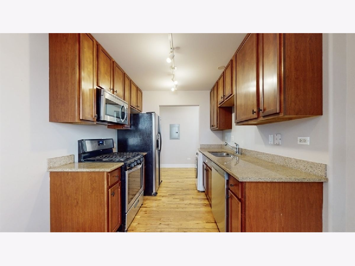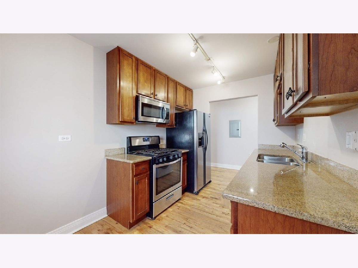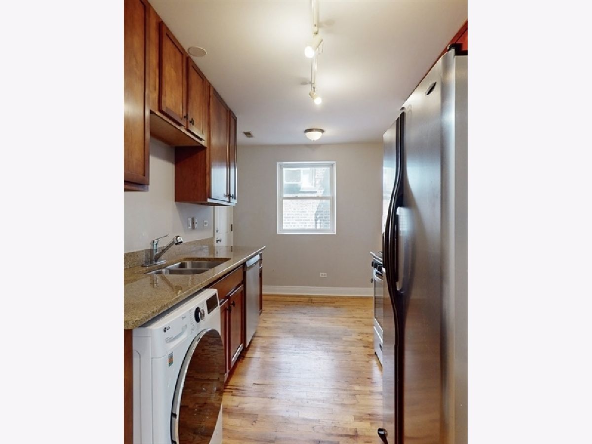 Hardwood floors throughout this charming 2 bed, 1 bath, Rogers Park condo. Beautiful baseboards, and crown molding make this condo on a quiet tree-lined street coveted! The building had a complete renovation in 2005 of a gorgeous courtyard building luxury features include 42"maple cabinets, stainless steel appliances that feature a brand new dishwasher, 2024, granite counters, Grohe faucets, Jacuzzi tub, generous closet space, Euro-washer/dryer in unit, custom light fixtures and a brick balcony with slate flooring complete this home centrally located to trains, buses, parks, bike trails, the lake and much more. Furnace new in 2019, Come See! Come Home!