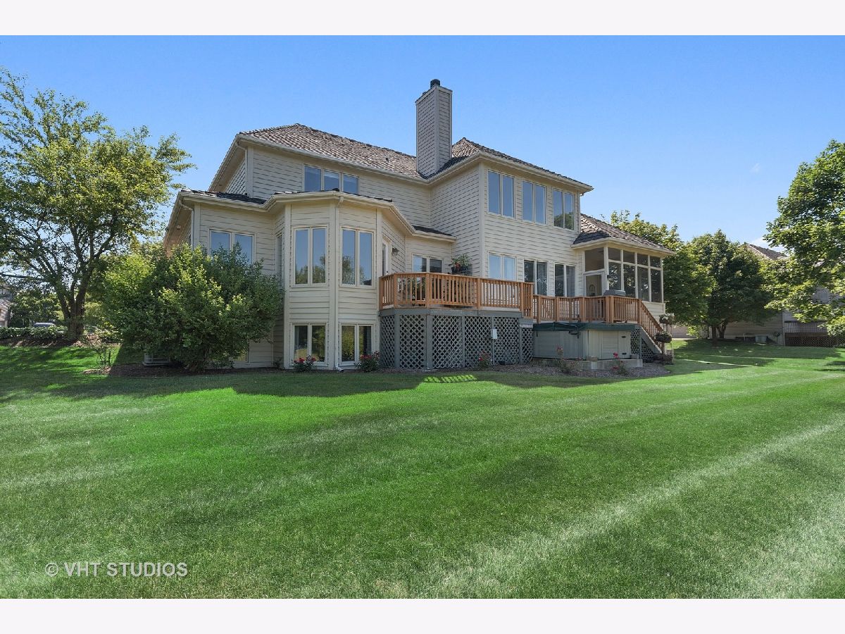 This home with gorgeous water views from your three seasons room is in Thornwood Pool Community and St. Charles School District! Features include refinished hardwood flooring, white cabinetry, iron spindles, a private office with an attached full bathroom on the main level, professional landscaping, brick and cedar exterior, and a 3-car garage. Relax in the first-floor master bedroom that has a sitting room, a fireplace, a luxurious soaking tub, and walk-in deck extended from the master bedroom - a perfect spot to soak in the view. The full, finished, English basement boasts a recreation room, a bedroom, bar, bathroom, theater room, a workout room, and a sauna. Enjoy all Thornwood has to offer with a pool, clubhouse, basketball, tennis and volleyball courts, miles of trails, and several parks. Walk to shopping, dining, and the elementary school.