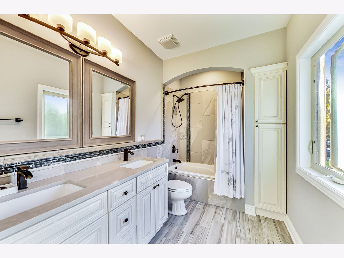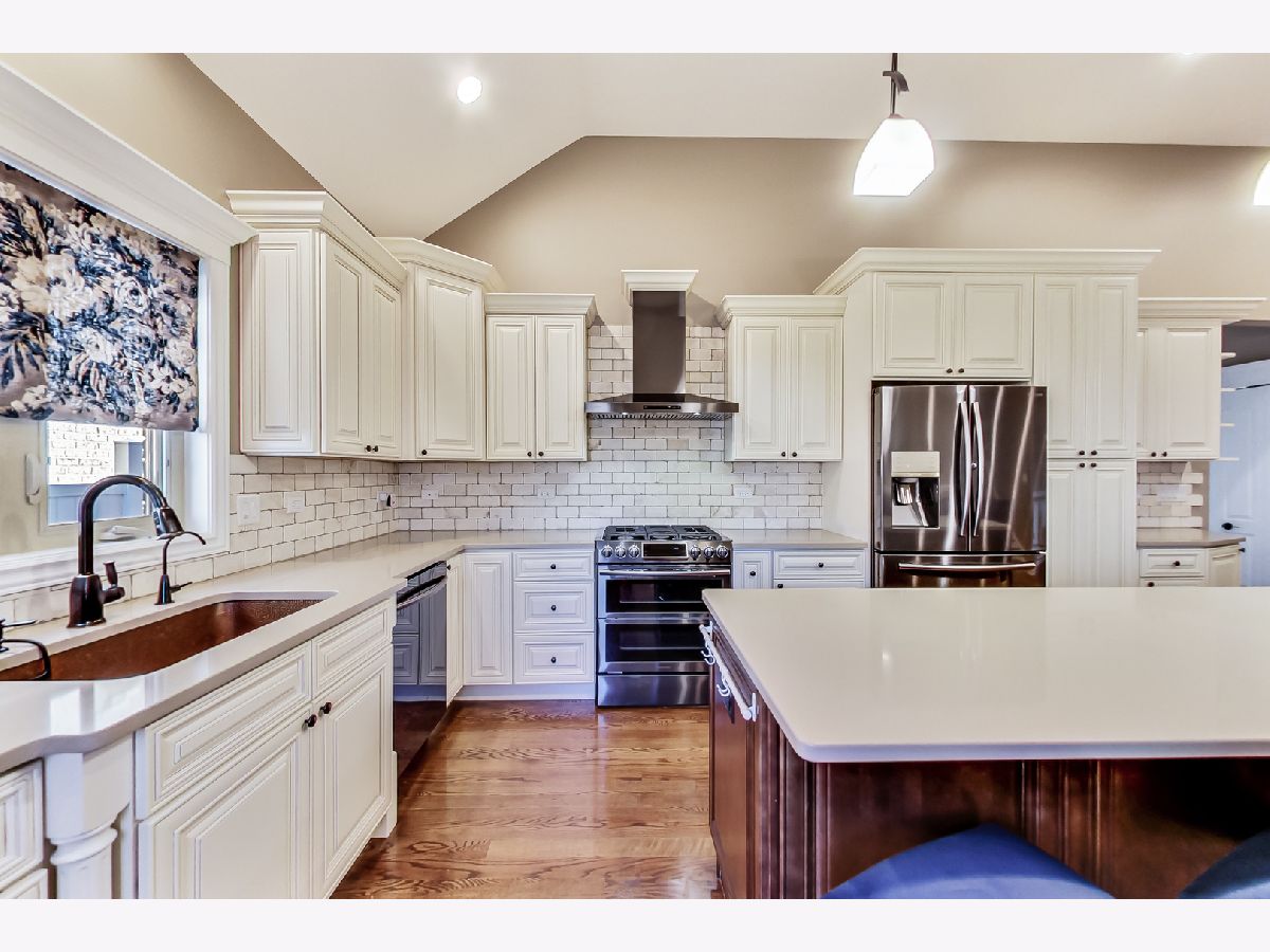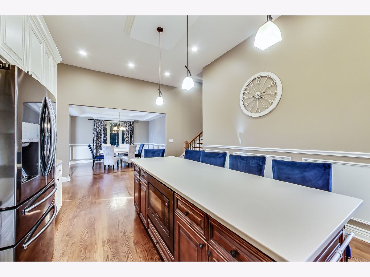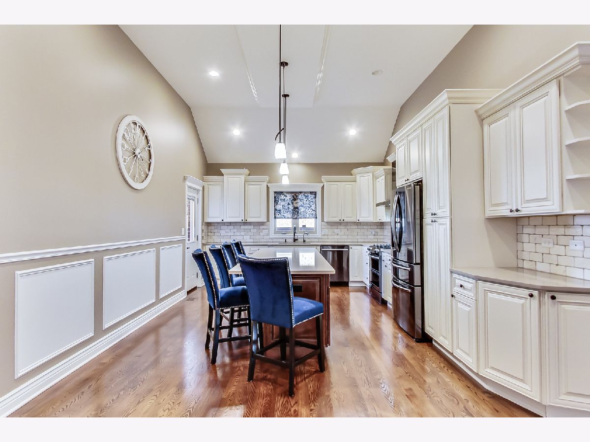 Your search ends here! Beautiful split-level built in 2017 originally for the builder himself so he spared no expense! Home features 4 bedrooms and 3 bathrooms, crown molding and hardwood floors throughout. Bedrooms including a large master bedroom with gorgeous master bath with dual vanities, walk-in closet, small terrace overlooking the backyard. Main level includes amazing kitchen with white cabinets, quartz countertops, black stainless steel appliances with Bluetooth enabled stove, huge island with built-in cabinets and built-in Microwave, living room with formal dining room. Large family room has canned lighting with cozy gas/wood burning fireplace, 4th bedroom and good sized laundry room. Exterior features include brick and cement siding and features a spacious beautiful kept fenced backyard with built-in firepit and extra wide driveway and underground sprinkler system. Other featured include energy efficient windows making utility bills very low in winter and summer. There is a 2 car attached garage with storage and is set up to be heated. So much more here with every detail thought of! Do not wait, schedule a showing today!