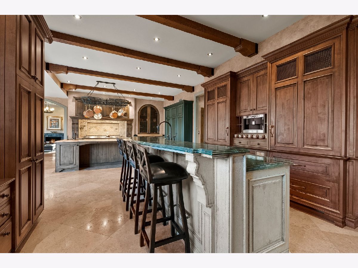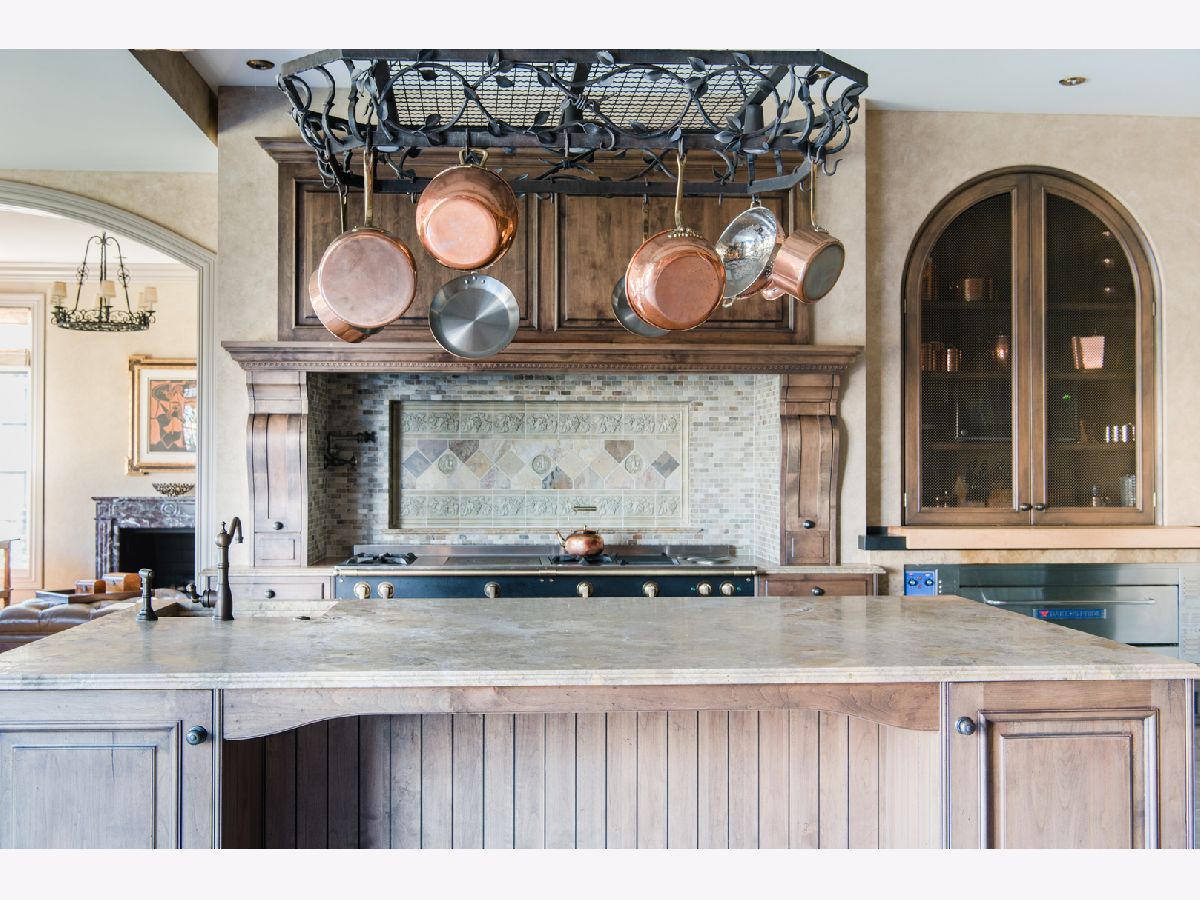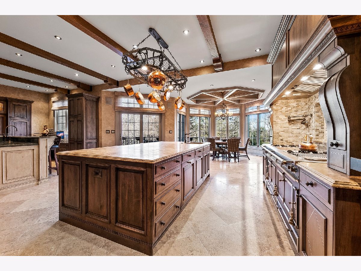 Stunning Storybook Manor in Burr Ridge nestled on a quiet cul-de-sac has been exquisitely upgraded over time with uncompromising attention to detail. A grand foyer welcomes you inside as gentle curves, columns, dramatically pitched ceilings and a sweeping staircase draw you into the home's embrace. Old World elegance and warmth emanate throughout the main living spaces. The gracious living room and formal dining room with adjoining butler's pantry/bar provide seamless flow for hosting gatherings with friends and family. Anchored by a commanding fireplace with an antique mantelpiece, the family room strikes a perfect balance between formality and comfort, managing to achieve both a sense of intimacy and volume, no matter the occasion. A magnificent entertainer's kitchen lavishly marries traditional detailing with a La Cornue range, pizza oven, two Sub-Zero refrigerators with two freezer drawers, two Miele dishwashers, Miele/Nespresso espresso/coffee station, warming drawer, lighted hanging pot rack and pot filler. A gorgeous stone prep island with two Sub-Zero refrigerator drawers will delight the chef, while guests are kept entertained at a second bar with seating. Another butler's pantry and larder rests adjacent to the kitchen. Opening up from the kitchen is a sunny breakfast nook and a lovely sitting room centered around an antique fireplace. A study with gorgeous built-ins, mudroom, and an expansive laundry room completes this level. Rich details are repeated throughout the main living areas: limestone and hardwood flooring, architectural moldings, coffered ceilings, custom wall finishes, hand-scraped/finished doors and hand-finished door hardware, architectural skylights, leaded windows, and a blend of recessed lighting with antique and modern fixtures. Upstairs, there are six generously sized bedrooms, each with its own ensuite bath. Masterfully remodeled to the highest standards, the owner's suite is a vision of European style and grandeur as custom millwork by Parenti and Raffaelli and many other bespoke touches have been tastefully applied. The bedroom feels like a world unto its own with a sitting area, two large walk-in closets and a spa-like bath that rivals the finest hotels. Two vanities, a lighted make-up table, a free-standing claw foot tub, steam shower, TV and a bar with Sub-Zero mini-fridge ensure your every need is met in total privacy. A third level joins another bedroom and walk-in closet - ideal for a playroom, second home office or flex space. A walkout lower level offers endless hours of entertainment. Flooded with natural light, this unique space unites a comfortable, thoughtfully appointed media/rec room with a 90-inch TV and AV equipment, large entertainment bar with Sub-Zero mini-fridge, Bosch dishwasher, microwave and dining area, a 1,300 bottle climate-controlled wine cellar and tasting room, exercise area, another bedroom/playroom with adjoining bath, plus plenty of opportunities for storage. The promise of exceptional outdoor entertaining exists right beyond your door, from the lower bluestone walkout patio to the main floor deck, side yard pergola overlooking the fountain with a dining area and warm glow of outdoor chandeliers. Set amid a magical and whimsical garden setting designed by award-winning Mariani Landscape, this private wonderland is yours to enjoy and share with those you cherish most. The estate is tailor-made for entertaining with a 4-car heated garage, plus a brick and paver heated driveway with a turnaround that provides additional parking for 3-4 cars. Meticulously updated and maintained by the current owners, this residence is special in every way. So many amenities and smart home enhancements will be passed onto the future owner. Among them, but countless more: an advanced water filtration system, a Lutron lighting system, wireless Elan control system for media, climate and security. Kindly exclude dining room and master bedroom entry chandeliers.