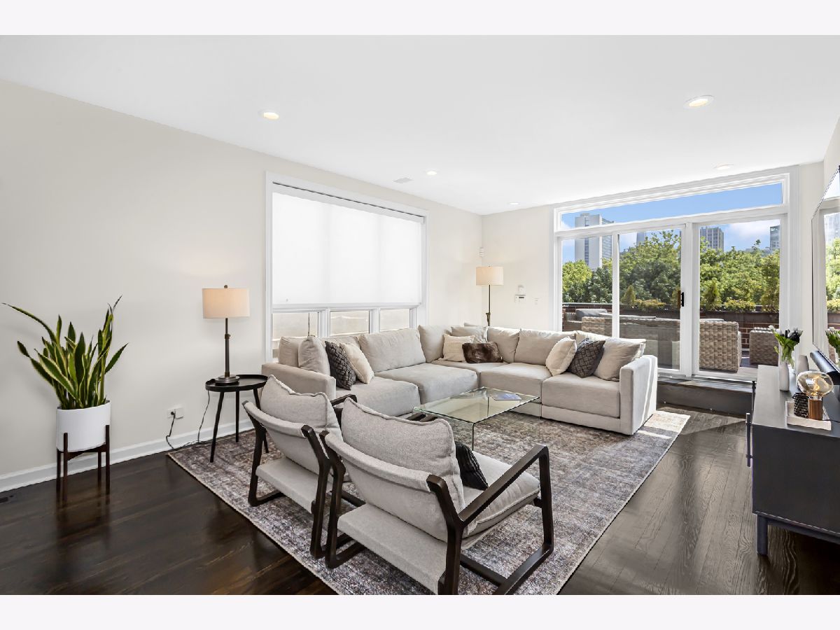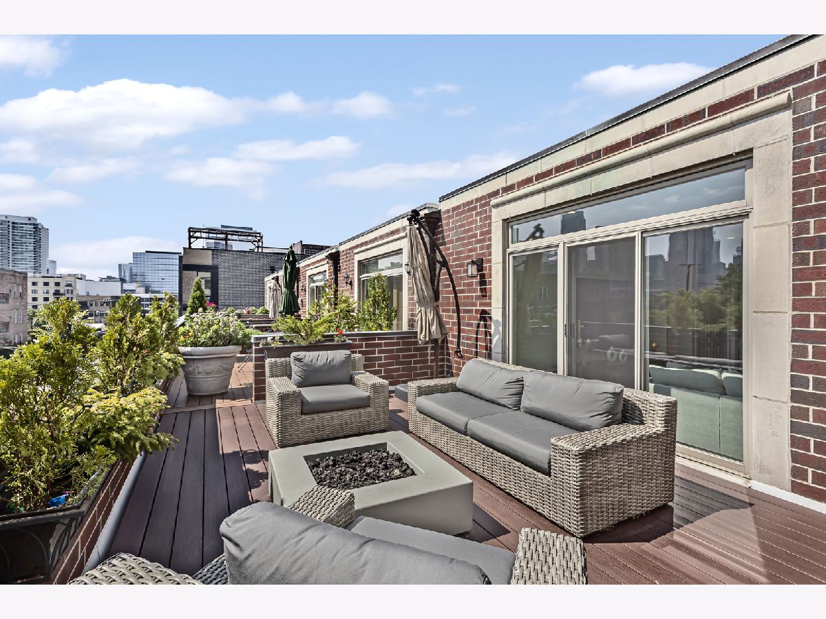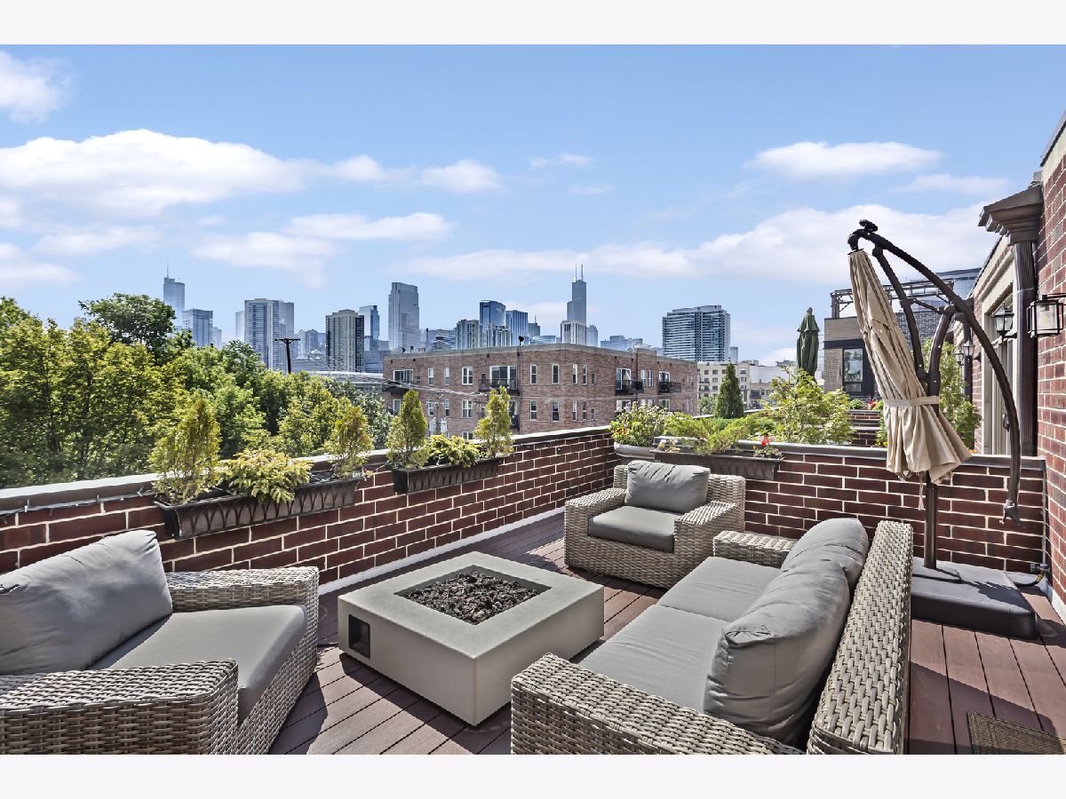 Introducing an exceptional property in the heart of River West, this end-unit row house is a true gem that offers an impressive living experience. Boasting a generous size of approximately 3400 square feet, this stunning residence features 4 bedrooms, 3.1 baths, and a multitude of desirable amenities, with NO MONTHLY ASSESSMENTS. Upon arrival, you'll be welcomed by the professionally landscaped front patio, providing a tasteful and inviting entryway. Step inside to discover a beautifully tiled foyer that leads to an en-suite bedroom on the first floor. The bedroom showcases brand new flooring and provides the convenience of privacy and comfort. Additionally, you'll find an attached 2-car garage, complete with professionally installed industrial flooring. Moving up to the main living area, you'll be delighted by the recently renovated kitchen that exudes elegance and functionality. Featuring custom Showplace cabinetry, quartz countertops, an oversized island, and top-of-the-line professional stainless-steel appliances, this kitchen is a culinary enthusiast's dream. A dry bar with a beverage center and a west-facing balcony. The open-concept design seamlessly connects the living and dining rooms, creating a fluid and inviting space. Enjoy the ambiance of the marble gas fireplace and surround sound. On the third floor, the primary bedroom awaits, complete with custom built-ins, a spacious walk-in closet, and an ensuite marble bath that has been tastefully updated. The spa like primary bathroom boasts a double quartz vanity, a separate shower, and a relaxing Jacuzzi tub for your ultimate comfort. An additional large second bedroom and a full bath on this level, along with a newer side-by-side washer/dryer, provide utmost convenience and functionality. Ascending to the top level, you'll find a third bedroom and a wet bar with a beverage center, making this floor an ideal space for various purposes. An expansive family room that leads to a fabulous 250+ sq ft rooftop deck, adorned with Trex decking, offering breathtaking city views. Throughout the property, you'll find walnut-stained hardwood floors on the top three levels, adding a touch of sophistication and warmth. The thoughtful inclusion of closet organizers ensures ample storage space, and the property's dual-zone climate control system guarantees optimal comfort year-round. Custom Hunter Douglas window shades adorn the rooms, including motorized shades in the living area and a motorized dual shade in the primary bedroom, providing you with effortless control over natural light and privacy. Roof was completed in May 2023, new Therma-Tru front door and paint throughout the home. This is the epitome of turn key ready!