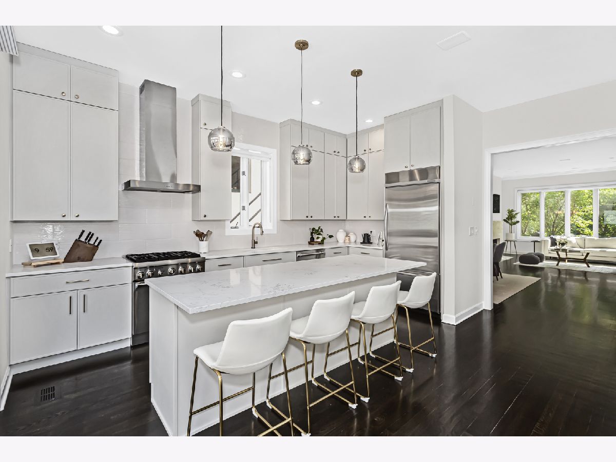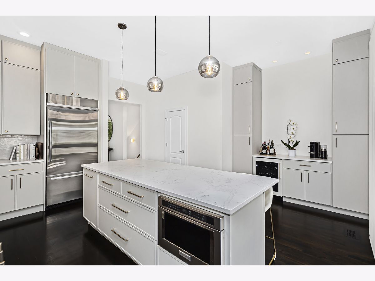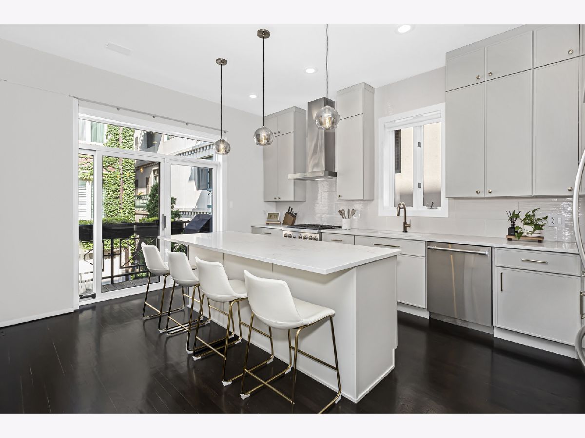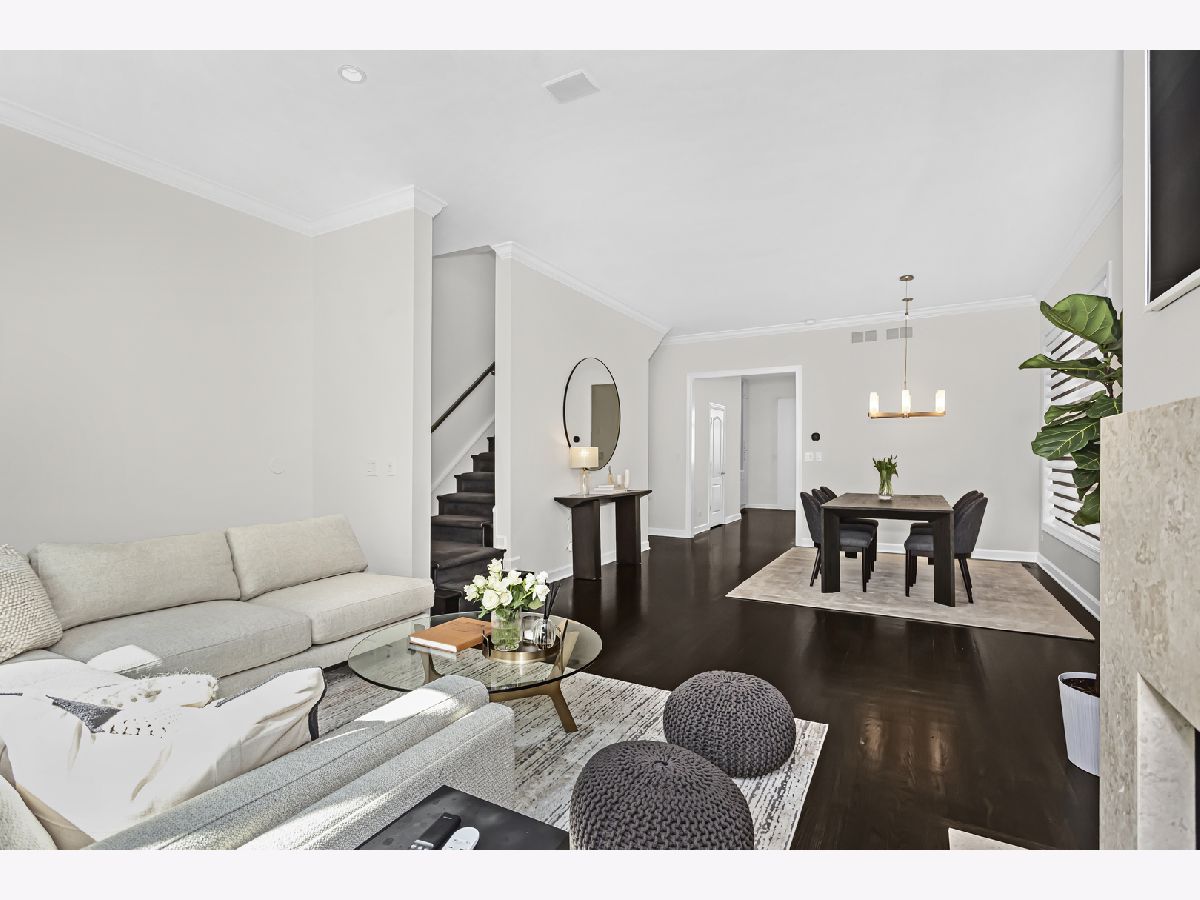 Introducing an exceptional property in the heart of River West, this end-unit row house is a true gem that offers an impressive living experience. Boasting a generous size of approximately 3400 square feet, this stunning residence features 4 bedrooms, 3.1 baths, and a multitude of desirable amenities, with NO MONTHLY ASSESSMENTS. Upon arrival, you'll be welcomed by the professionally landscaped front patio, providing a tasteful and inviting entryway. Step inside to discover a beautifully tiled foyer that leads to an en-suite bedroom on the first floor. The bedroom showcases brand new flooring and provides the convenience of privacy and comfort. Additionally, you'll find an attached 2-car garage, complete with professionally installed industrial flooring. Moving up to the main living area, you'll be delighted by the recently renovated kitchen that exudes elegance and functionality. Featuring custom Showplace cabinetry, quartz countertops, an oversized island, and top-of-the-line professional stainless-steel appliances, this kitchen is a culinary enthusiast's dream. A dry bar with a beverage center and a west-facing balcony. The open-concept design seamlessly connects the living and dining rooms, creating a fluid and inviting space. Enjoy the ambiance of the marble gas fireplace and surround sound. On the third floor, the primary bedroom awaits, complete with custom built-ins, a spacious walk-in closet, and an ensuite marble bath that has been tastefully updated. The spa like primary bathroom boasts a double quartz vanity, a separate shower, and a relaxing Jacuzzi tub for your ultimate comfort. An additional large second bedroom and a full bath on this level, along with a newer side-by-side washer/dryer, provide utmost convenience and functionality. Ascending to the top level, you'll find a third bedroom and a wet bar with a beverage center, making this floor an ideal space for various purposes. An expansive family room that leads to a fabulous 250+ sq ft rooftop deck, adorned with Trex decking, offering breathtaking city views. Throughout the property, you'll find walnut-stained hardwood floors on the top three levels, adding a touch of sophistication and warmth. The thoughtful inclusion of closet organizers ensures ample storage space, and the property's dual-zone climate control system guarantees optimal comfort year-round. Custom Hunter Douglas window shades adorn the rooms, including motorized shades in the living area and a motorized dual shade in the primary bedroom, providing you with effortless control over natural light and privacy. Roof was completed in May 2023, new Therma-Tru front door and paint throughout the home. This is the epitome of turn key ready!