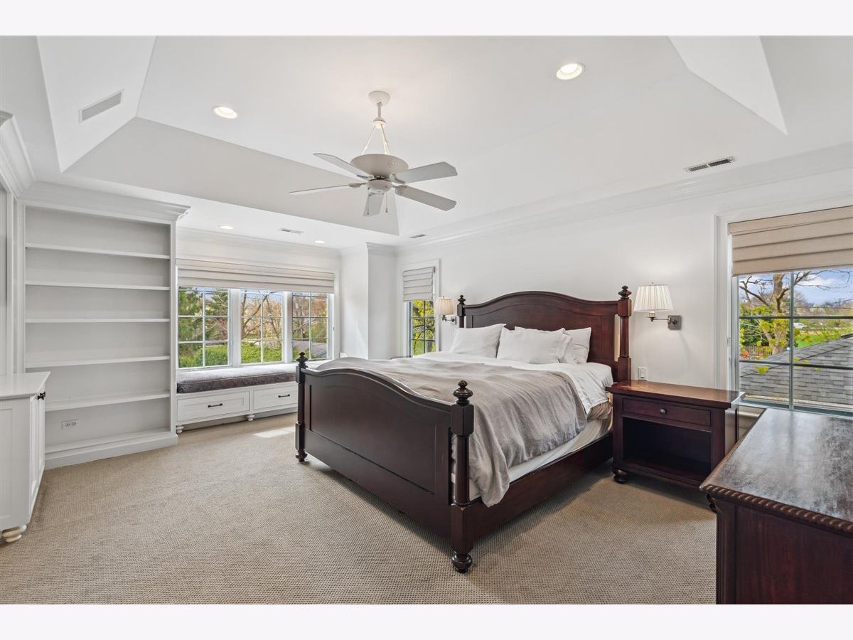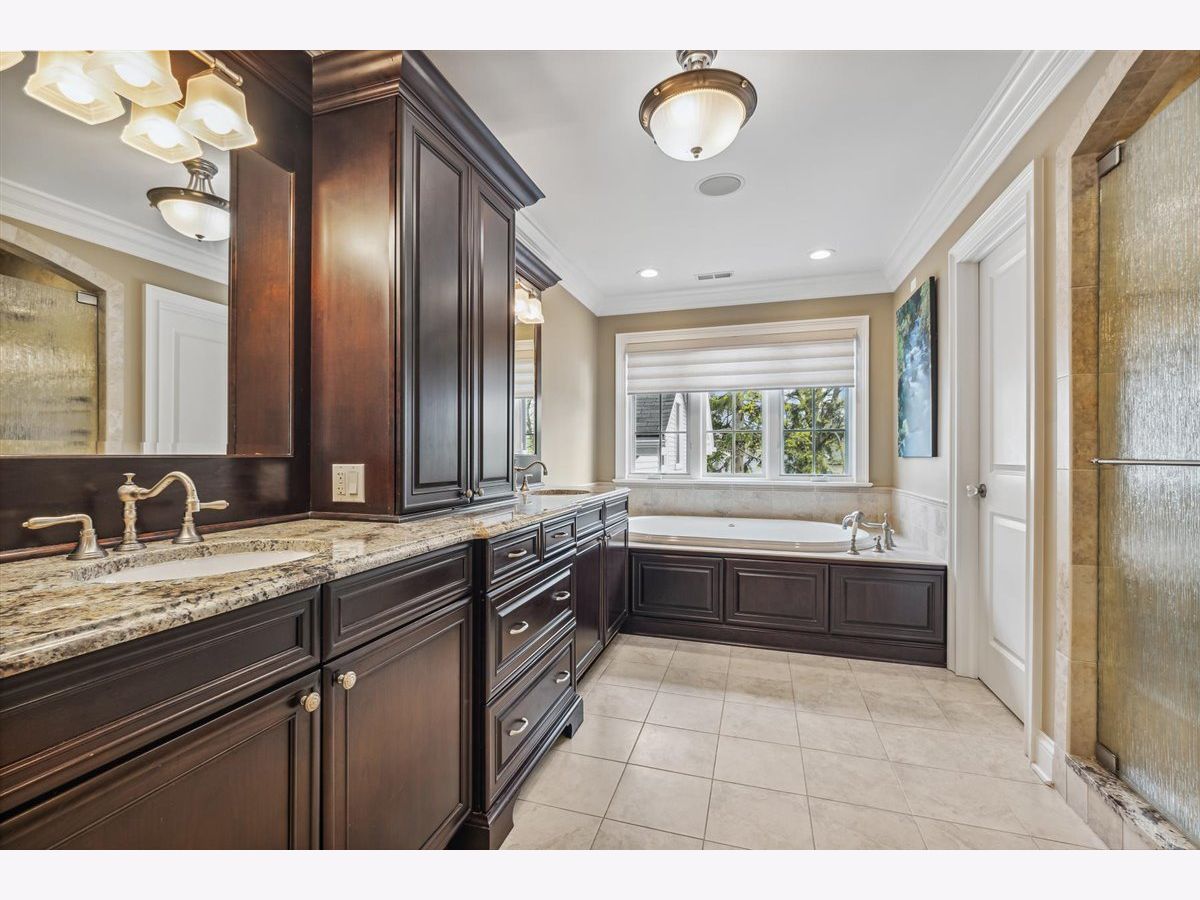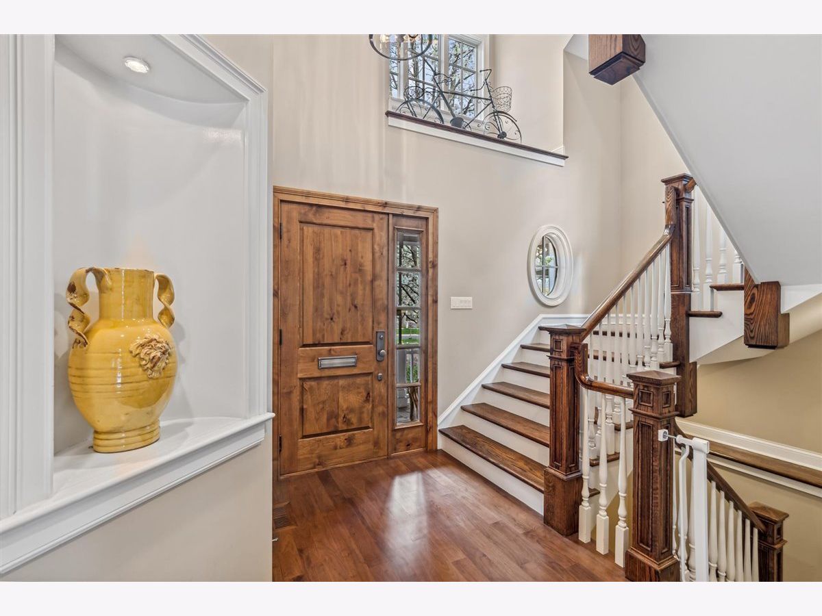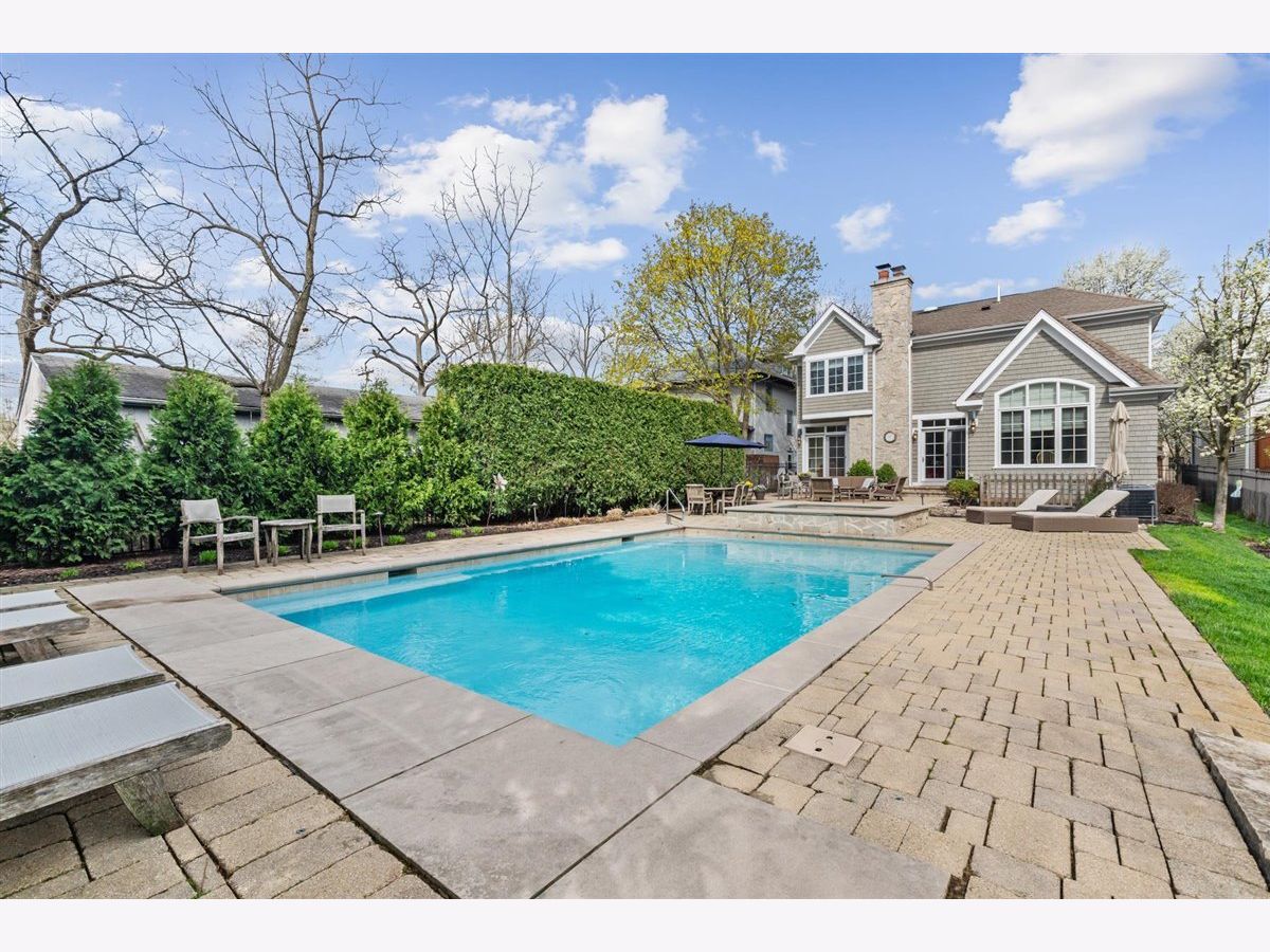 Move right in to this stunning Greystone built Nantucket inspired home. The front porch warmly welcomes you into a picture perfect home which boasts 5 bedrooms (4 upstairs, 1 in the basement) and 4.5 baths (1 full bath in the basement). As you make your way through the main level of the home, you will find a mudroom off the attached 2 car heated garage with custom cubbies and a laundry hook up as well as a home office with 2 built in desks,organized storage and coffered ceilings. The formal dining room is adorned with wainscoting and is currently being used as a music room. Step a little further into the light filled eat-in kitchen of your dreams which features an abundant amount of custom Woodmode cabinets, an island with mahogany countertop, prep sink, double ovens, granite countertops and a pantry with pull out drawers. The kitchen opens up to a magnificent great room with custom built ins, a wood burning fireplace( gas starter). From here step out into your private resort oasis complete with a gorgeous pool and hot tub (pool resurfaced in 2023). Travel upstairs to the tranquil primary suite which boasts 2 walk in closets and a luxury spa bathroom complete with heated floors, custom cabinetry, double sinks, oversized shower and separate whirlpool tub. There are 3 additional generous sized bedrooms and 2 full baths (one ensuite) that round out the upper level. Step downstairs to the lower level and find a huge bedroom, full bath, laundry room and huge rec room with built ins and loads of storage. Dual zoned for optimal comfort, the home a also features an in ground sprinkler system, security system and invisible fence. This enchanting home is steps from Lincoln Park, walk to town via the Green Bay walking/bike trail and close to Metra.