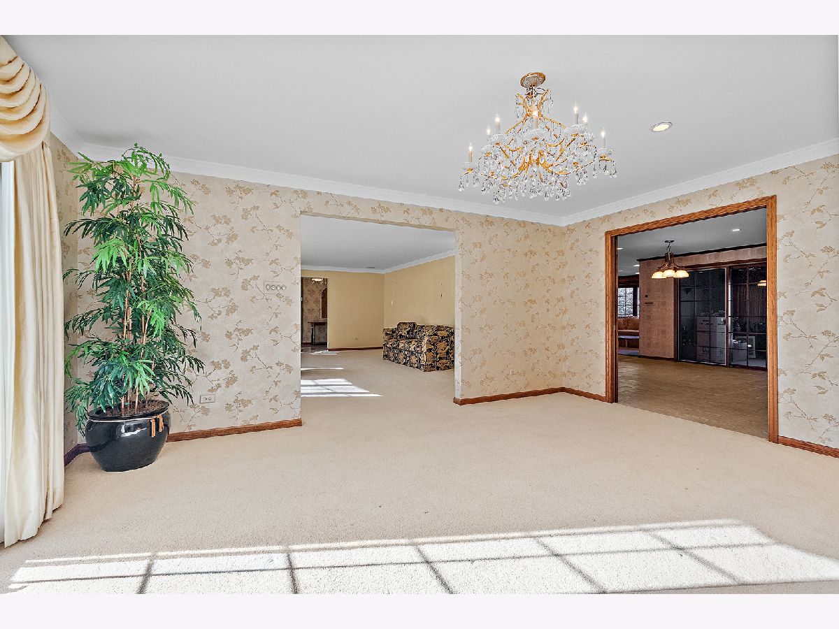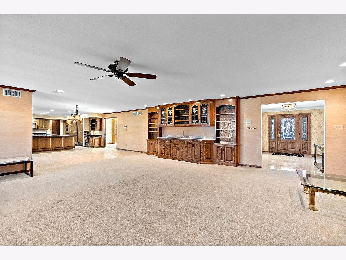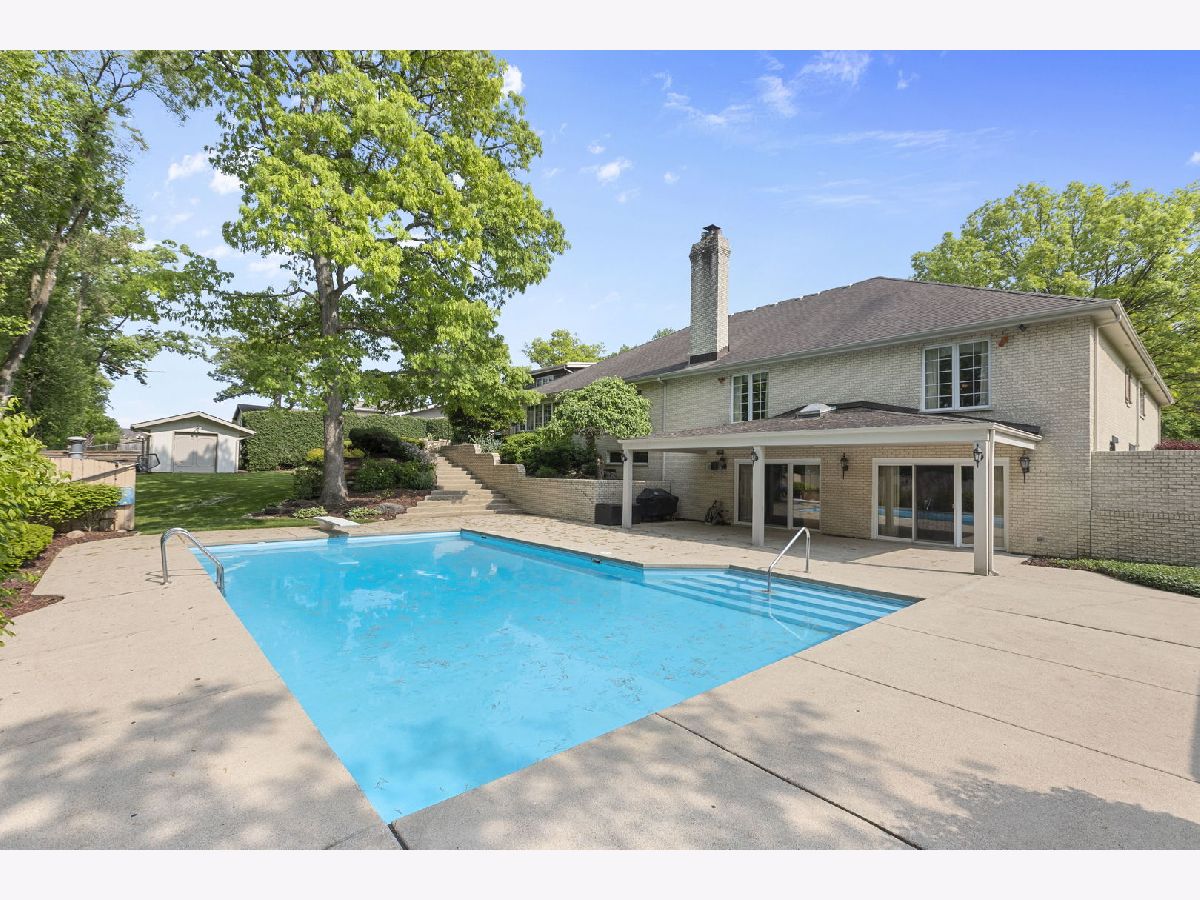 Built on a double lot, this true ranch home with finished, walk-out basement was custom built by the original owner. The layout is incredible with the master suite and additional 3 bedrooms on one side of the home and the huge, spacious living area, including formal living room with bay window, family room with corner, stone fireplace, formal dining room, and large eat in kitchen and sunroom with spacious laundry room and another half bath on the other side of the home. True ranch home! All overlooking the 20x40 built in pool and the quiet, private setting. You will love this home! The location alone is incredible on a private dead-end street across from the walking path and Arrowhead Lake (with picnic area, walking, hiking, running, biking, fishing and cross country skiing). From the moment you walk through the beautiful leaded glass door you will be impressed. The spacious foyer boasts marble flooring and the spiral staircase to the walk-out basement is just stunning. The primary bedroom is truly a private suite with its spacious bedroom area with two closets plus an additional walk-in closet and a private bath including a marble jetted tub and separate shower with marble surround. Private water closet with bidet. The second bedroom has a private full bath and bedrooms three and four share a Jack and Jill bathroom. There is also a half bath for guest use. The formal living room has a bay window to let in tons of light, crown molding, and Pella windows. The formal dining room has a stunning crystal chandelier. The main level family room is spacious with a wet bar and a solid stone fireplace that is just amazing. The kitchen is a chef's dream including Sub-Zero refrigerator, Thermador double oven and cook top, recessed lighting, plenty of counters and cabinets with pullouts. The sunroom is cozy and overlooks your backyard oasis. The laundry is on the main level and also has another half bath attached. The walk-out basement is neverending! With plenty of closets including a cedar closet, there is a huge unfinished storage area as well as a room that is currently being used as a wine cellar. There is another room with double closets that is currently being used as an exercise room but could have so many uses (Could be used as a bedroom)! The lower level second family room and wet bar with a solid stone wall and double patio doors leading to the patio and in-ground pool is incredible. There is a full bathroom with changing area for the pool. There is a game room as well that could also be used as an office. From the garage there is a staircase to finished attic space plus the bonus room that would be great at a home office. Was currently used as a 5th bedroom. The yard is your own vacation paradise including an inviting in-ground pool with three patio spaces, huge shed (Size of 1 car garage - 12x15), pool/pump house, grass/play area, and two grilling stations with electric plus piped in natural gas. You are close to all of the amenities of beautiful Palos Heights but on your own private half acre of peace and tranquility. See pictures for floor plan. 75 gallon hot water tank with recirculating pump (replaced in 2021). 400 amp electric service, central vac system, outdoor sprinkler system, 20x40 pool that is 3 feet around the pool with 10.5 foot deep in the center. Pool heater is 3 years old. 1 furnace replaced in 2023 and 2 others replaced in 2021, central air replaced in 2023. 5th bedroom shares furnace with finished attic area (no central air in attic). Keep your utility bills lower with 1 furnace and A/C unit for bedroom and hallway, 2nd furnace and A/C unit for rest of main level, 3rd furnace and A/C unit for walk-out basement, 4th furnace in garage, and 5th furnace in attic - only use what you will need! Beautiful view of forest across the street