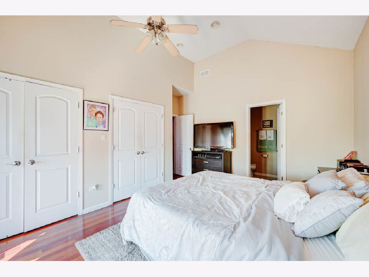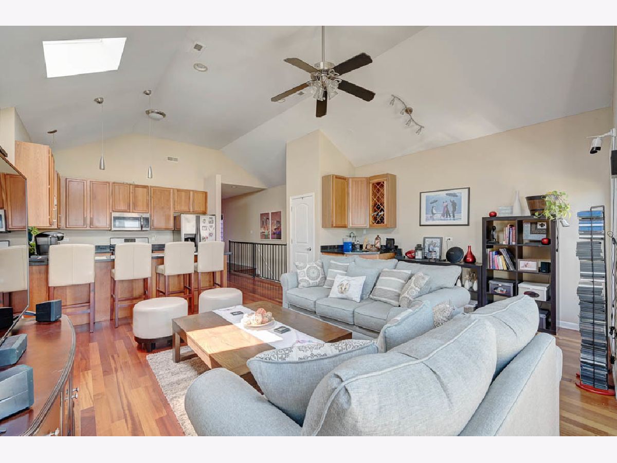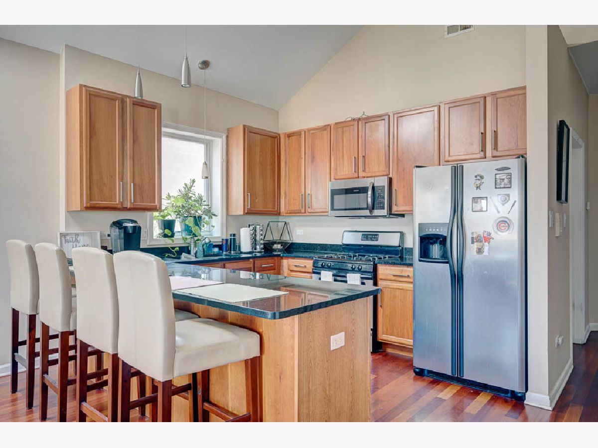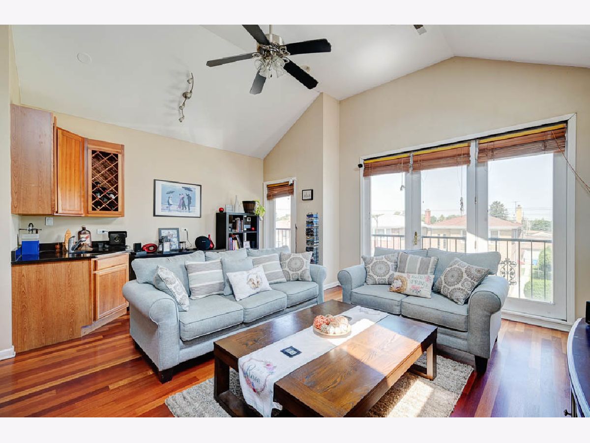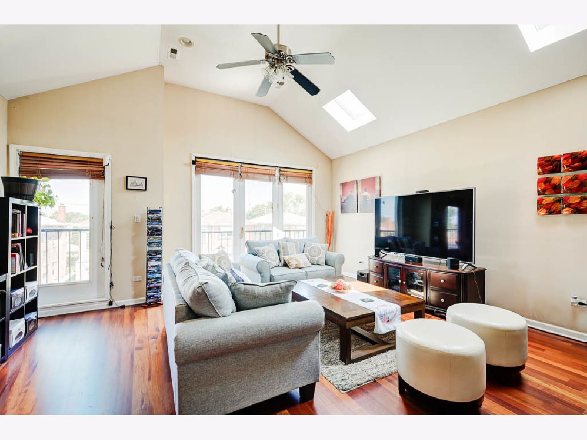 Spacious 2 Bed 2 Bath Belmont Cragin Condo with tons of natural light, sky lights, and vaulted ceilings. Entertain in open concept newer kitchen / living room with an added wet bar while catching a breeze through your north facing juliet balcony and watch the sunset on your rear deck with the space to add comfortable seating. Primary bedroom offers space for a King size furniture set, with separate access to rear deck, two vast closets, and an en-suite bathroom with whirlpool tub and stand up shower. Second bedroom also spacious to fit King size furnishings. Hardwood flooring throughout this top floor condo. 3 Miles from Irving Woods, 2 miles from Harlem & Irving Plaza, 2 miles from Shabbona Park, 2.5 miles from Portage Park.