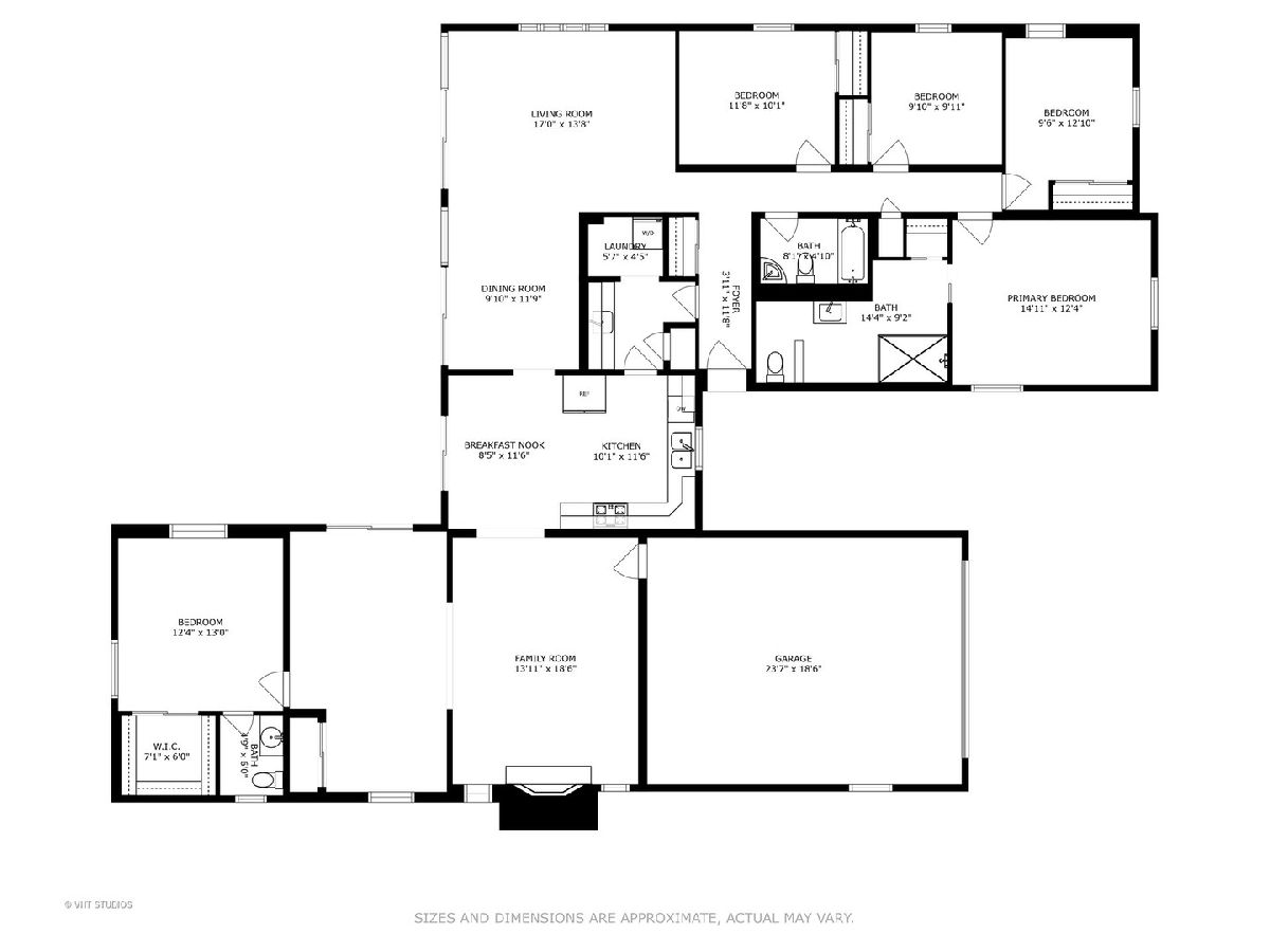 ***Multiple offers received. Offer deadline of Tuesday, June 11th at 6 p.m. Enjoy the sunshine in this one-of-a-kind sprawling ranch on a gorgeous mature corner lot featuring 5 bedrooms and 2.5 baths only 2 blocks from El Sierra Elementary School and a short walk to McCullom Park. Coveted one-floor living at its finest, this lovely home features a beautiful white kitchen with new stainless-steel appliances and granite countertops open to both the family room and dining room. The large family room features wood-beamed ceilings and a vintage steel wood-burning fireplace. Adjacent to the family room is a massive flex space featuring another bedroom, half bath and seating area that can be used as an in-law suite, teen space and more. The bedroom wing is private from the main living spaces and features a Primary Suite with a gorgeous newly-renovated (2023) primary bath in today's most desirable finishes. Three additional nicely sized bedrooms, each offering great closet space and a hallway full bath complete this private area of the home. Situated on a large corner lot, the outdoor space is lush with beautiful perennials, mature trees and loads of green space that can easily be transformed into an outdoor oasis. Opportunities are endless. High ticket updates throughout the home include new kitchen appliances (2023), double pane vinyl sliding doors in the dining/living room (2023), 2 new furnaces (2022), washer/dryer (2023), carpet (2024). Truly one-of-a-kind, this home is unique, functional and a great place to call home.