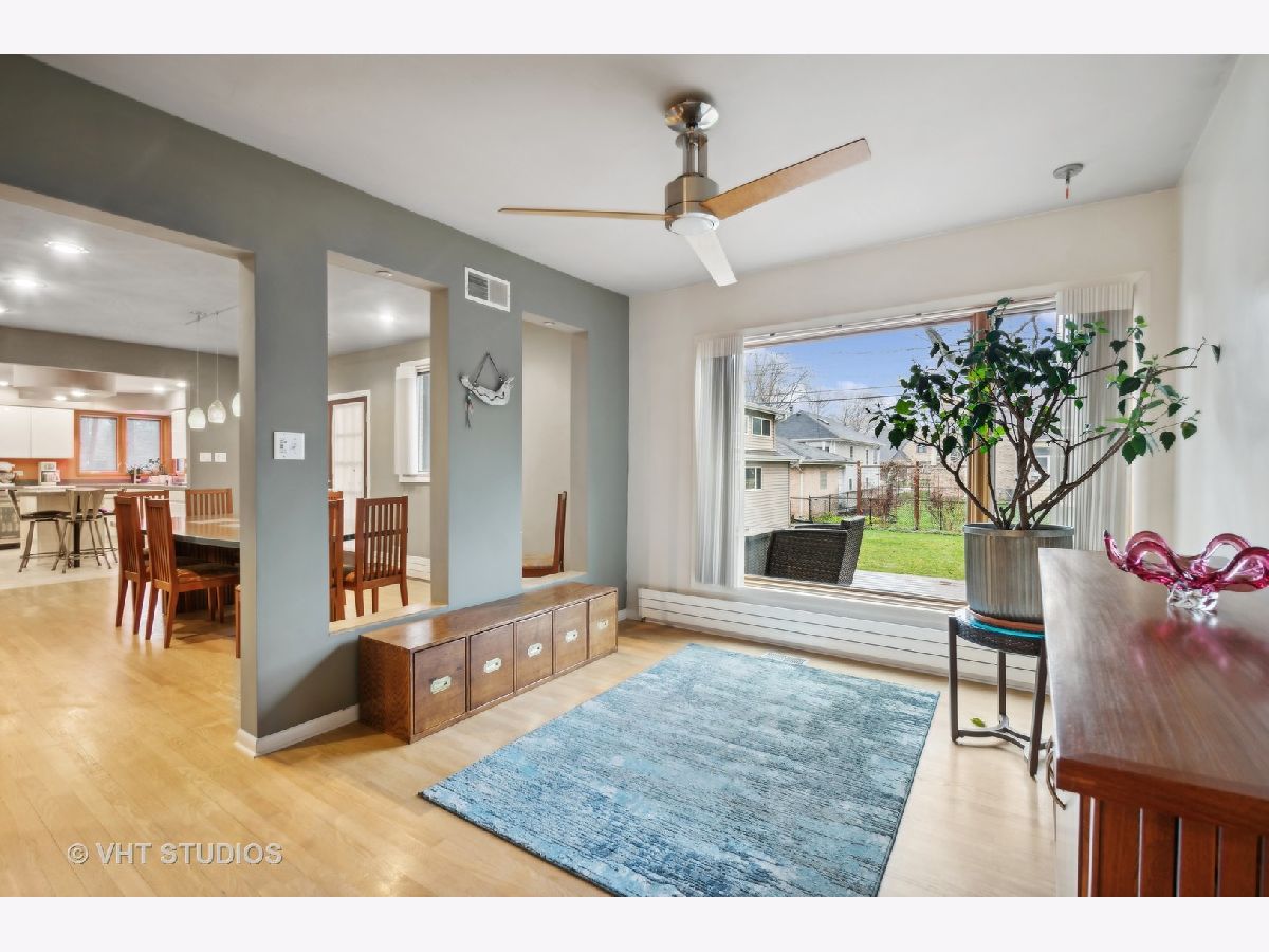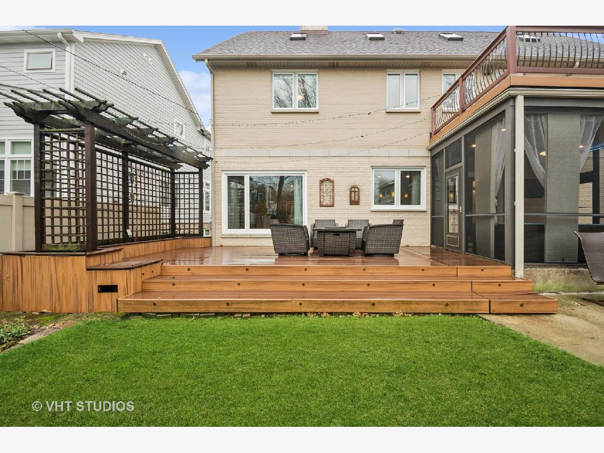 Welcome to 6644 N. Ponchartrain in the heart of Edgebrook. This stunning home features 3 levels of living space plus a partially finished basement. The light filled first floor features a primary suite with full bath, large living room with 2 sided gas fireplace (gas disconnected), powder room, separate dining area/den which opens to kitchen with island, high end stainless appliances ( Thermador Double Oven/Convection, Thermador Cook Top, Sub Zero Frig, Uline Beverage Frig), and white melamine cabinets. There is a lovely 3 season room with floor to ceiling windows off of the kitchen. The second story was rebuilt in 2006 and features 3 large additional bedrooms including a second primary suite with a beautiful full bath with heated floors and double sink. The primary bedroom features a large walk in closet and balcony overlooking the gorgeous landscaped yard. The hallway full bath has heated floors, large soaking tub and steam shower. There is a convenient laundry hook up located in hallway closet plus a separate office space. The sellers added a full 3rd story in 2006 with hardwood floors, 7 skylights with rain sensors adorn this extra large bonus space. This sky lined space is perfect for for an art/yoga/music studio, office, play room or family room. The partially finished basement has lots of storage and is open with separate area for mechanicals and laundry. The professionally landscaped yard features a newer trex deck, patio and gorgeous flowers and trees. The side drive leads to a newer 2+ car garage with attic for additional storage. Boiler heats 1st and 2nd floors, New Mitsubishi high efficiency electric heat pump (air conditioning and heat) covers first floor - only need to add a vent for the basement to be covered. Air exchanger on 3rd floor covers 2nd and 3rd floors. Home has a sump pump which controls the drain tiles around the foundation and is connected to the overhead sewer system. Excellent location - walk to highly rated Wildwood School and St. Mary of the Woods School, Metra, bus to Jefferson Park L, shopping and dining in downtown Edgebrook, Library, Post Office, forest preserve, golf course, bike trail and parks. This home will check all of your clients wants and dreams. Click on full motion video under photos for a whole house tour. Estimated annual electric: $1685, Estimated annual gas: $1774