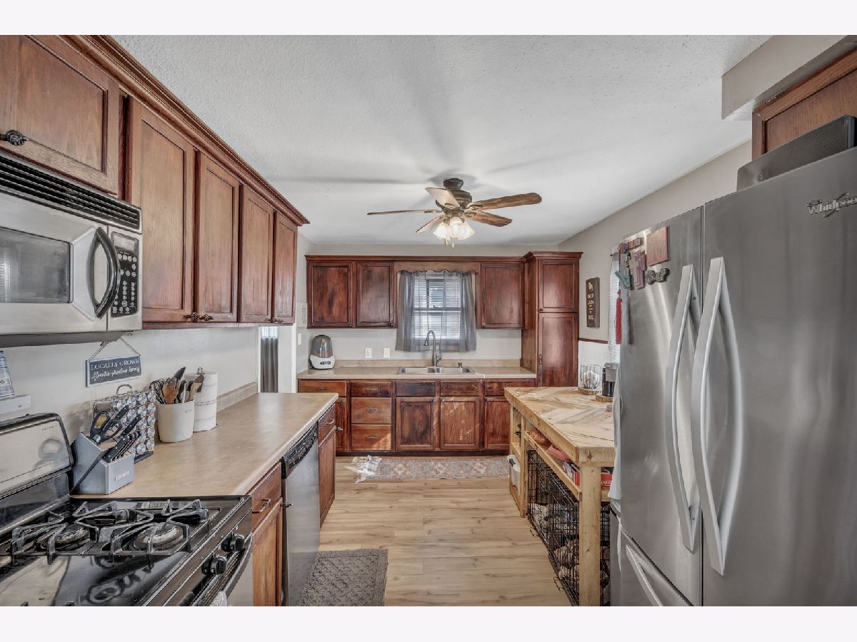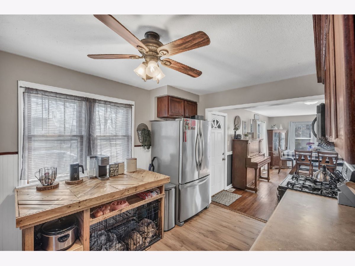 You won't want to miss seeing this updated 3 bedroom and 2 bathroom home located in Kankakee! Starting in the living room, that features beautiful refinished hardwood flooring, lots of natural lighting, and an open layout floor plan that connects right into the spacious dining room. Next is the kitchen that features new vinyl plank flooring, all stainless-steel appliances, refurbished cabinets, ample counter space, and a custom island that can stay. A great space to entertain! Also located on the main floor is a bedroom and an updated full bathroom. Upstairs is a large bedroom that features built-in cabinets, great for extra storage! Downstairs is the 3rd bedroom, that has a sizable closet, wood laminate flooring, an attached updated full bathroom with a walk-in shower! The basement also has additional space for laundry and extra storage as needed! Heading outside is large fenced in backyard with a big patio, perfect for a fire pit or grill! Pool can stay, and a there's a great detached 2-car garage. This home is a awesome find, so call today for your private showing!