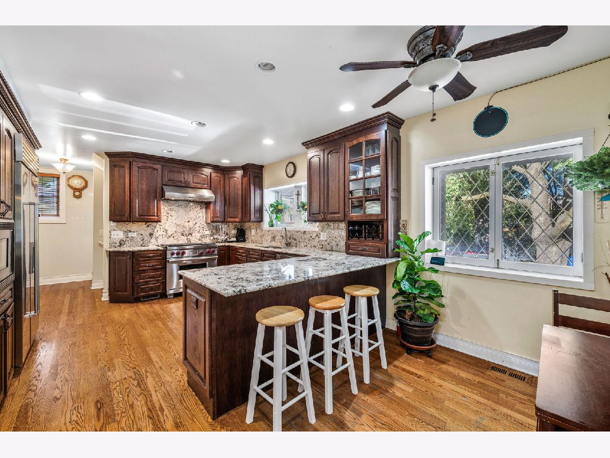 Check out this stunning 5-bedroom brick home situated on a sunny corner lot in a prime West Ridge location! A perfect fusion of traditional elegance and modern comfort, this property offers large living spaces throughout complemented by a great layout, and lush outdoor areas. The inviting living room features a gas fireplace with a statement surround, high ceilings, and large front windows, while the expansive dining room offers charming art-glass accents. The sunny, generously sized kitchen includes a separate breakfast room, ideal for casual dining. Upstairs, the enormous primary suite is a tranquil retreat with a spacious sitting area and work from home space. The finished lower level includes a full bathroom, providing ample space for recreation, hobbies, or home theater. A rare gem, the rear yard is perfect for outdoor entertaining, gardening, or simply enjoying a quiet evening under the stars. The corner lot provides extra natural light, and curb appeal that sets this home apart. Beyond that, a two-car brick garage adds both convenience and style to this elegant home. Don't miss this exceptional property.