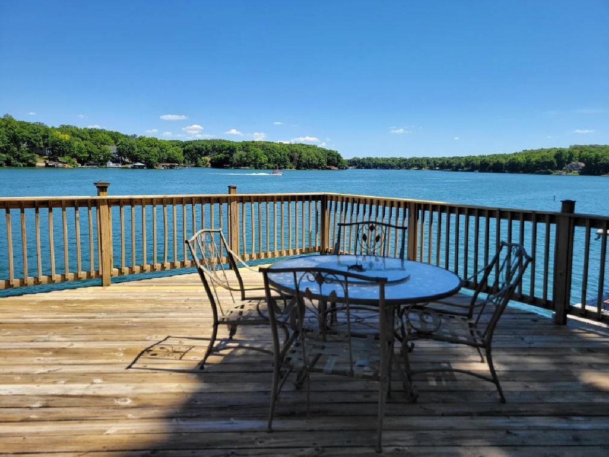 Looking for your next lake house, look no further!! This well maintained 3 bedroom 2 full bath has breathtaking views. Nestled on the east side of the lake allows you to enjoy the most gorgeous sunsets! Hardwood floors in the kitchen and the carpet in the main floor bedroom, the basement, and the stairs all new in 2024. Electric boat dock lift which fits both speed boat and pontoon boat; as well as a jet ski lift. Relax and take it all in on the sun deck which gives you great views of the dam for the fireworks! Storing all your toys is easy with the oversized 2 car garage not only does it have a work bench it is 28 feet deep!! Enjoy everything Lake Wildwood has to offer 2 lakes great for fishing and boating, 2 beaches, pool, marina, multiple playgrounds with pavilions great for a picnic, and so much more. All offers subject to Lake Wildwood rules and covenants; rights of first refusal.